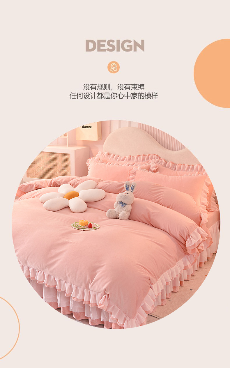 (总)后庭寝室 2025新款牛奶绒花边床裙四件套-浪漫花语系列,浪漫花语-暖黄,浪漫花语-公主玉,浪漫花语-梦幻紫,浪漫花语-暖粉玉,浪漫花语-少女粉,浪漫花语-天空蓝