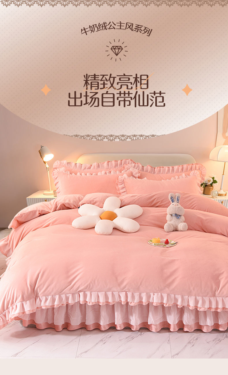(总)后庭寝室 2025新款牛奶绒床裙四件套倾城,倾城-公主玉,倾城-梦幻紫,倾城-暖粉玉,倾城-暖黄,倾城-少女粉,倾城-天空蓝