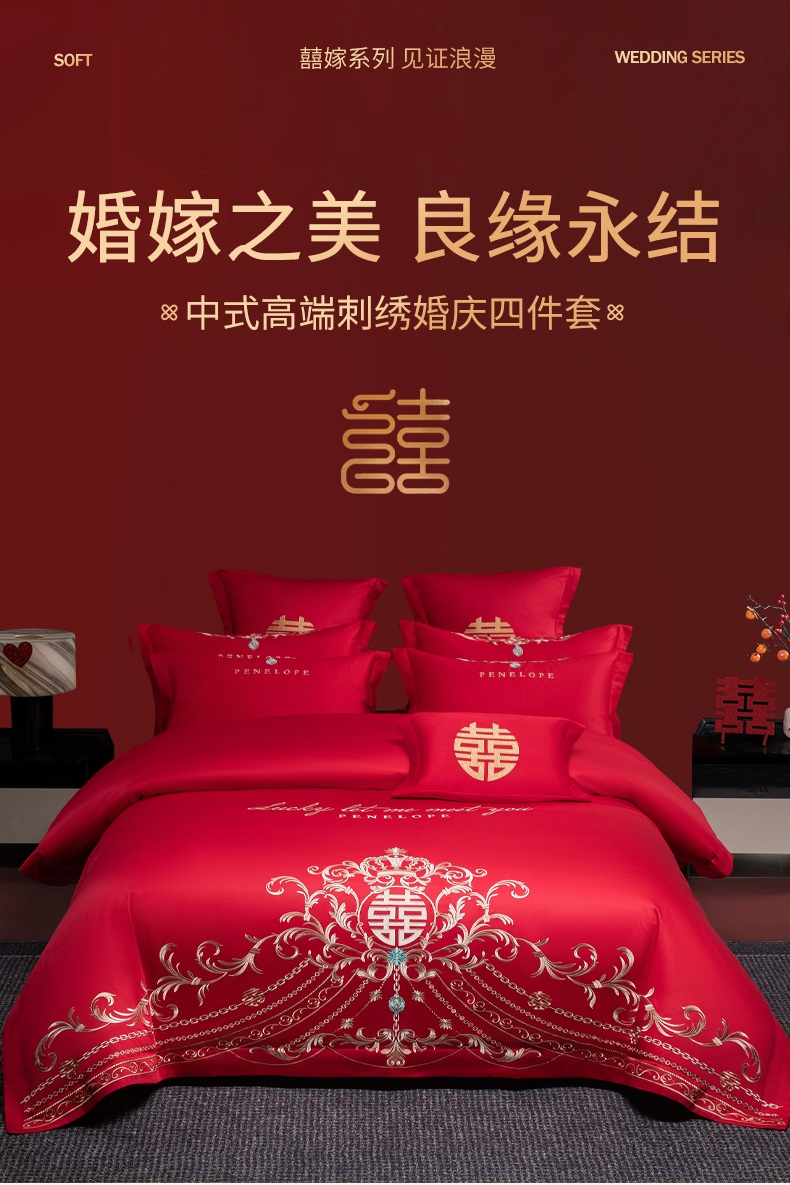 (总)欧乐蒂 2025新款全棉刺绣婚庆四件套,佳偶天成,龙凤和美,龙姿凤彩,玫瑰恋人,倾城之恋,双囍临门,甜蜜爱情,囍结良缘