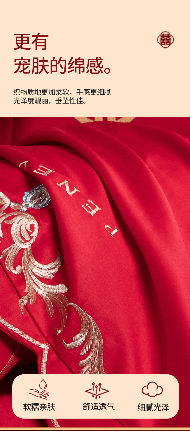 (总)欧乐蒂 2025冬季新品亲肤棉提花刺绣婚庆四件套,龙凤双喜,喜事花开