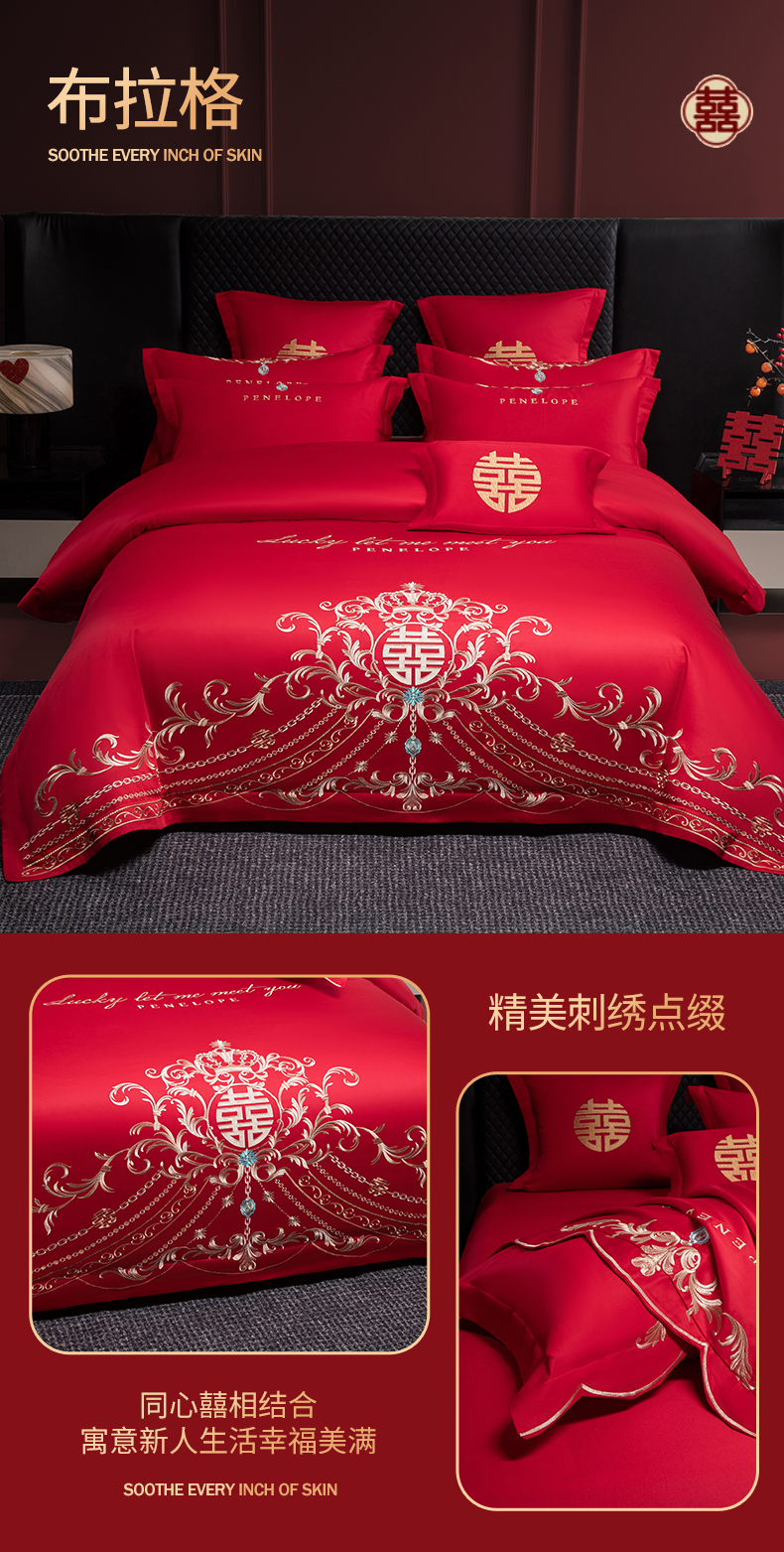 商品名称:欧乐蒂 2025新款中式高端刺绣婚庆四件套 布拉格