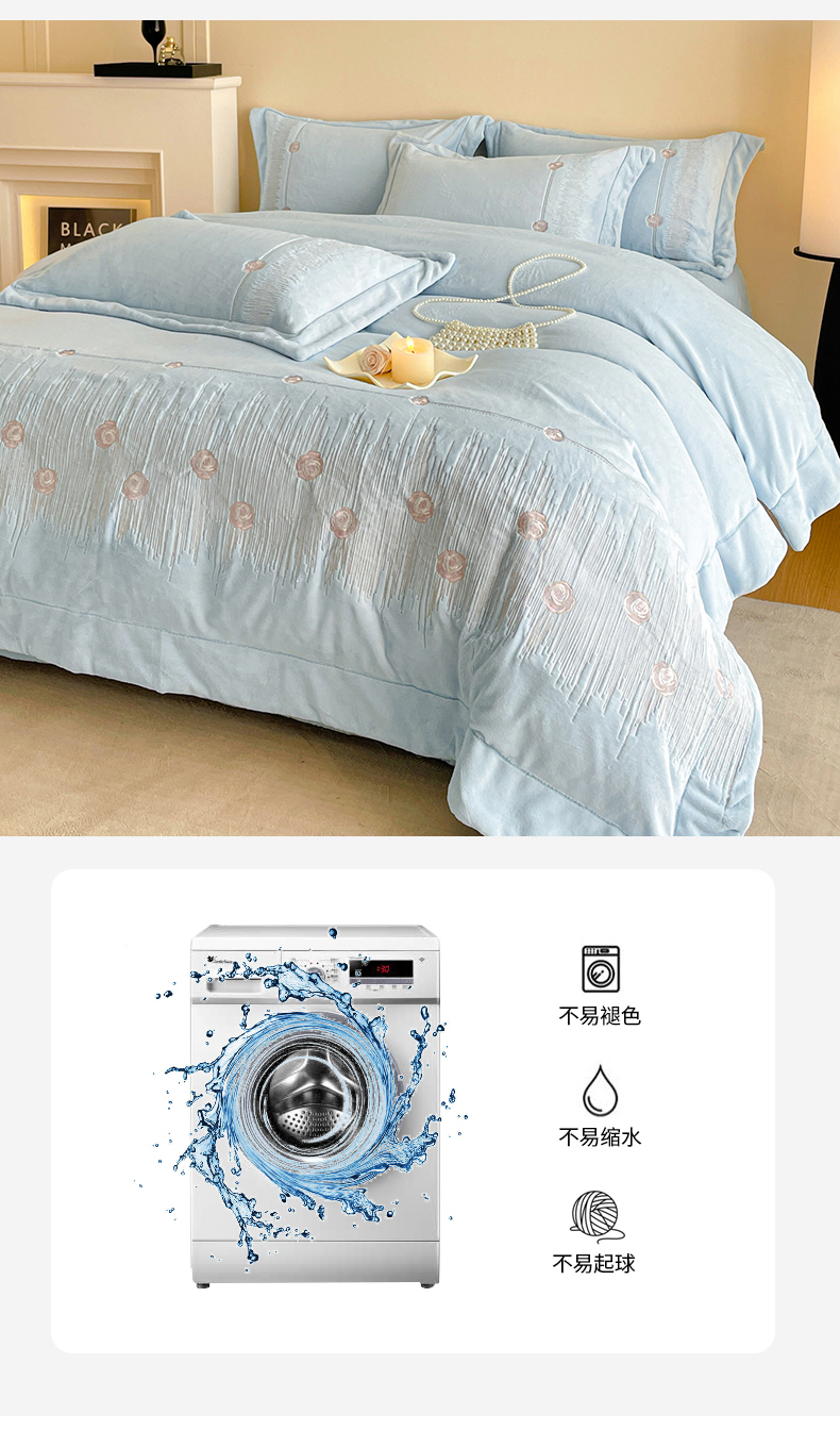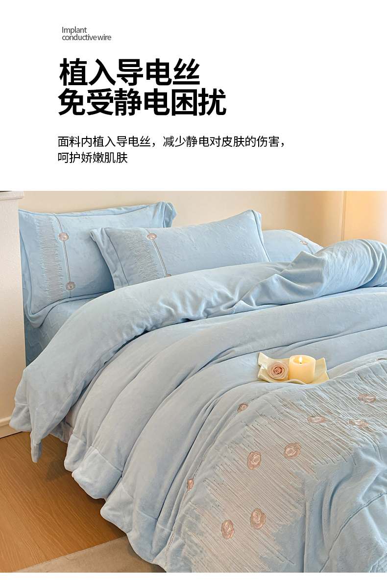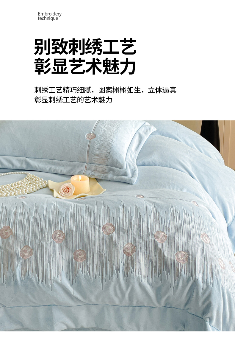 当前位置: 91家纺网 > 商品网购 > 床品套件 > 四件套 > 牛奶绒四件套 > 新方向 2025新款全消光A类刺绣牛奶绒四件套-玫瑰情缘 玫瑰情缘-星月蓝