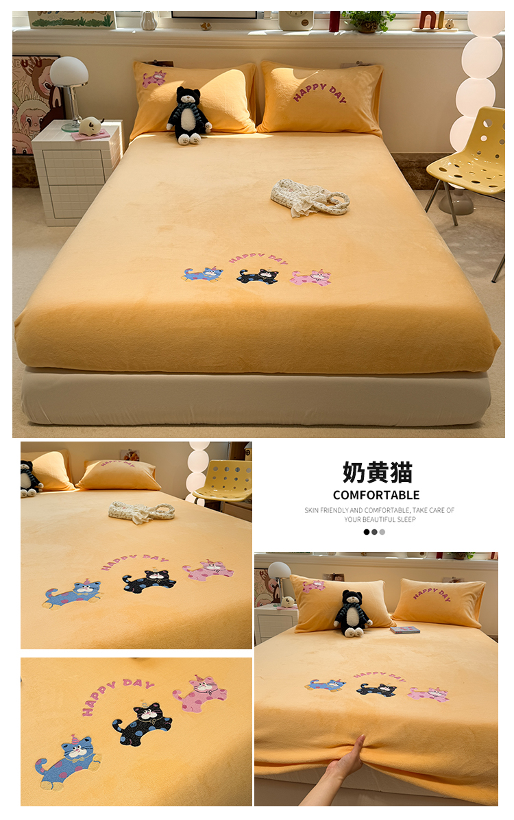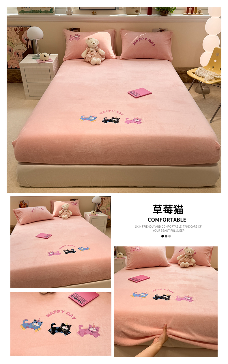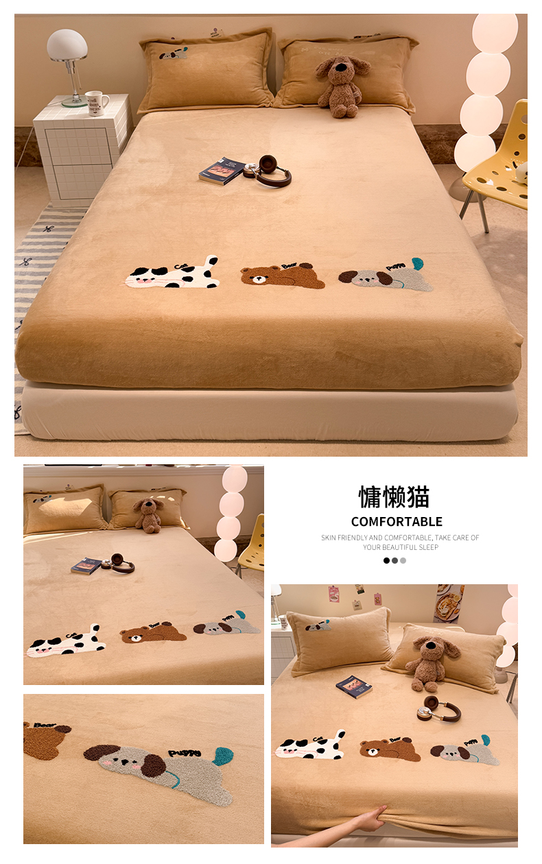 (总)857家居 2025新款卡通牛奶绒刺绣床笠