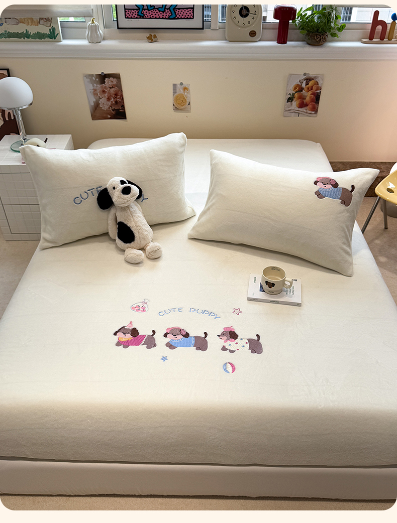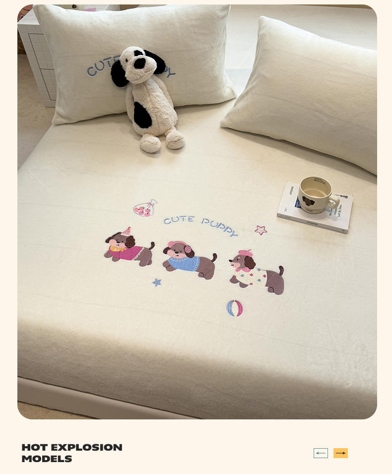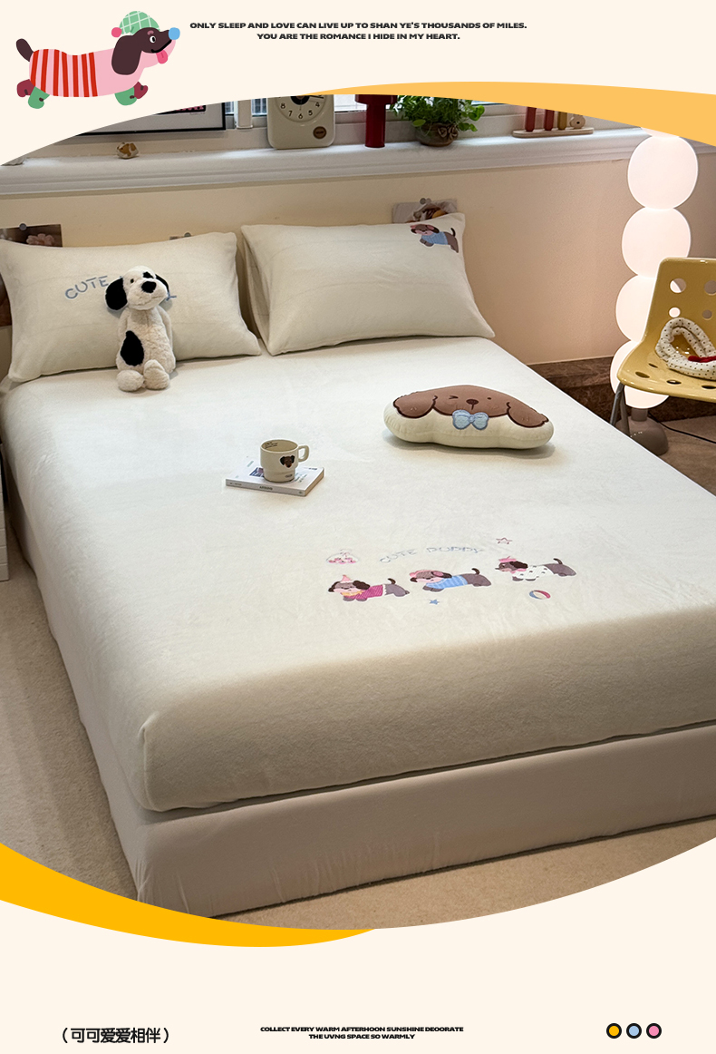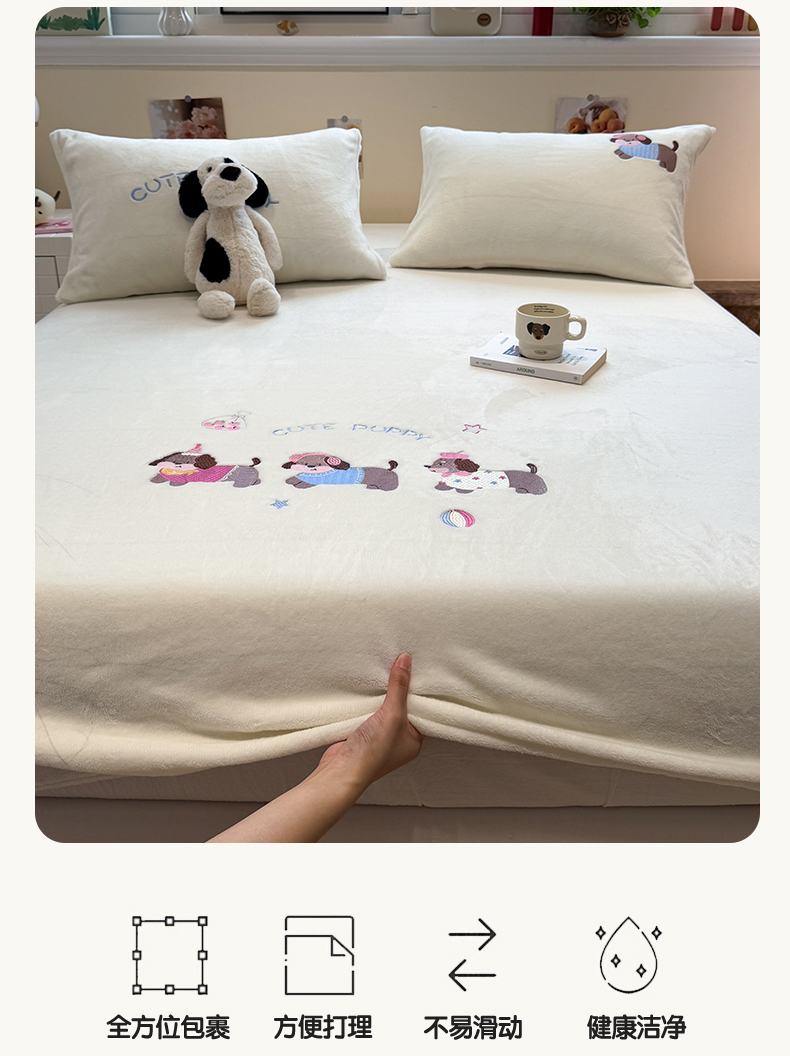 (总)857家居 2025新款卡通牛奶绒刺绣床笠