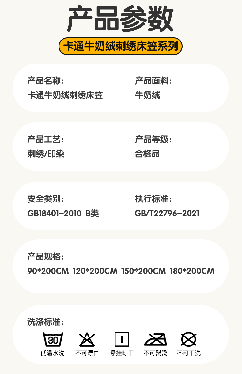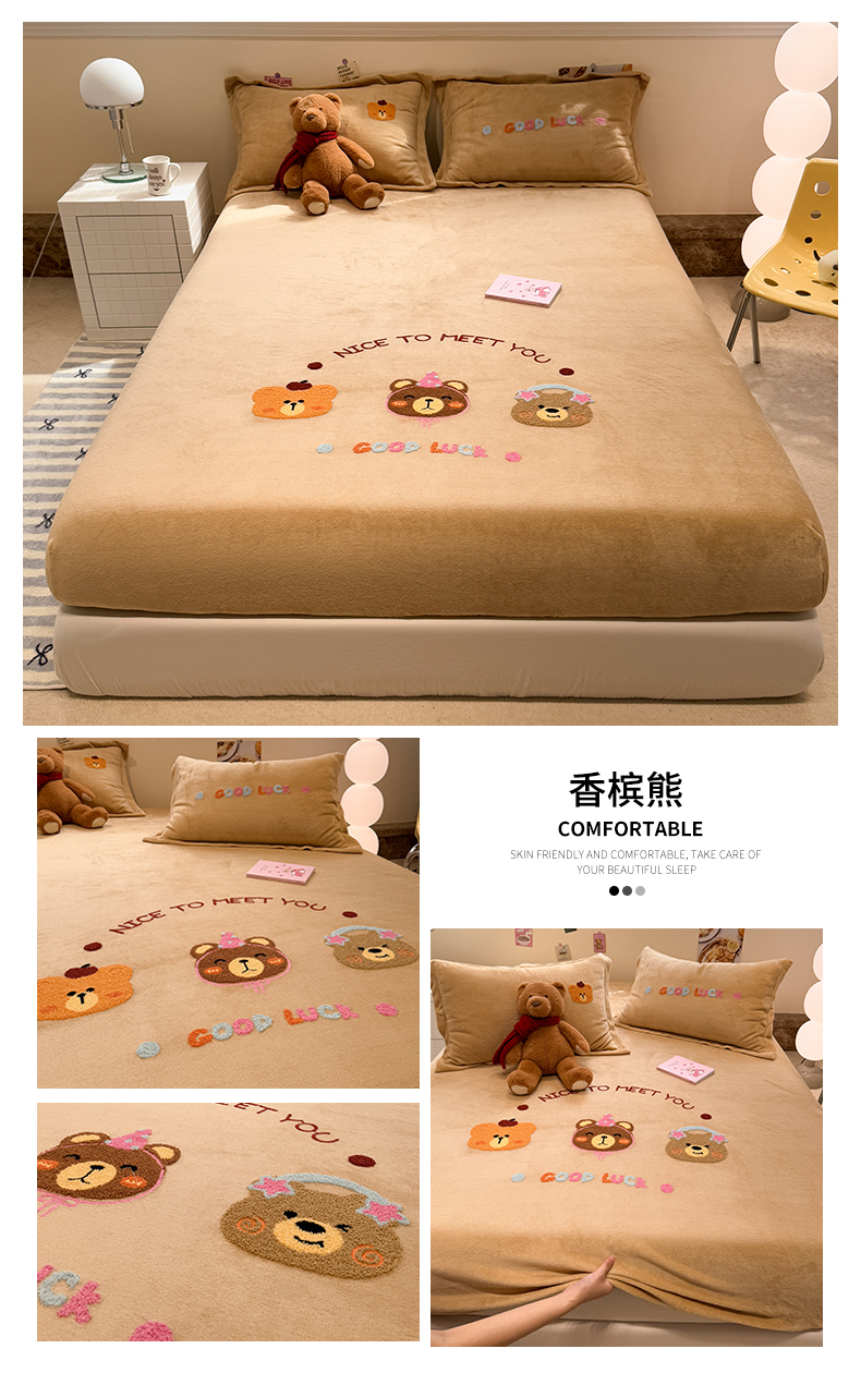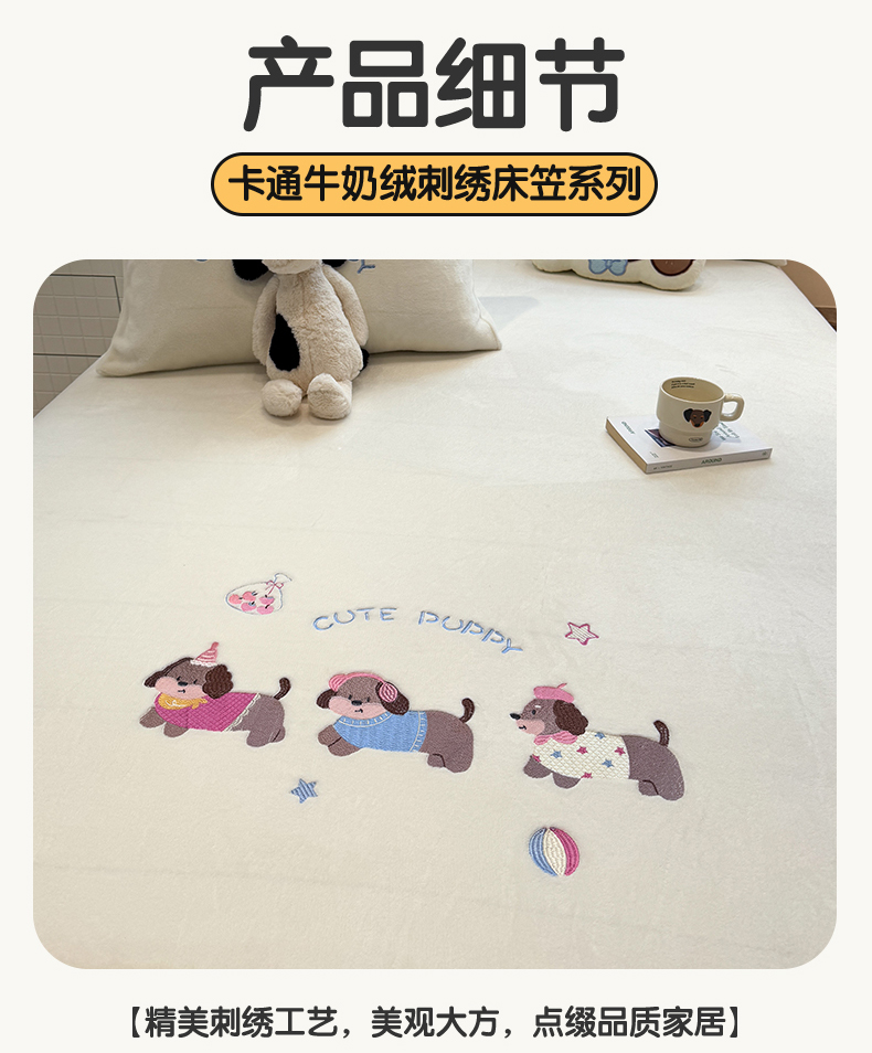 商品名称:(总)857家居 2025新款卡通牛奶绒刺绣床笠