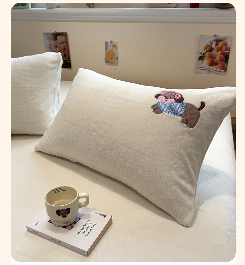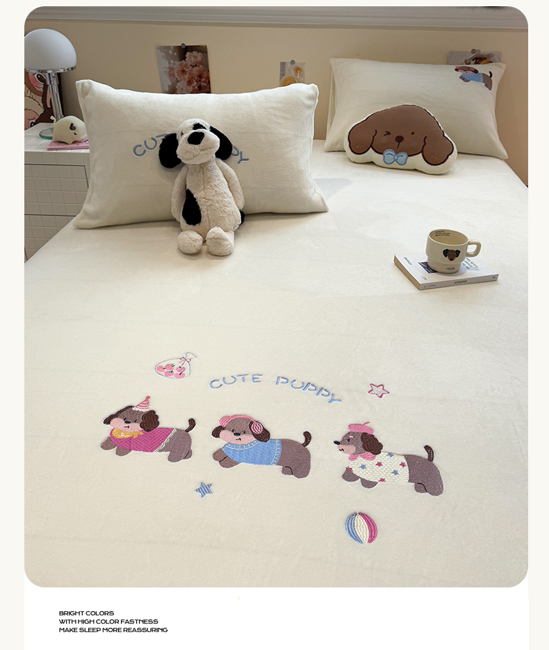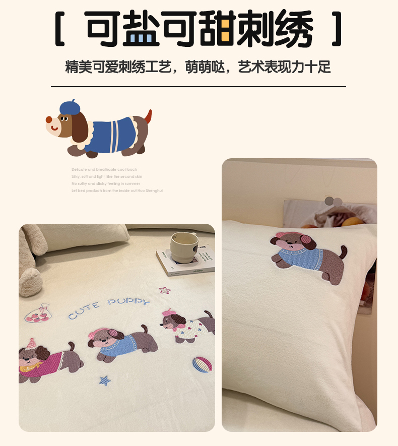 商品名称:857家居 2025新款卡通牛奶绒刺绣床笠 云朵狗