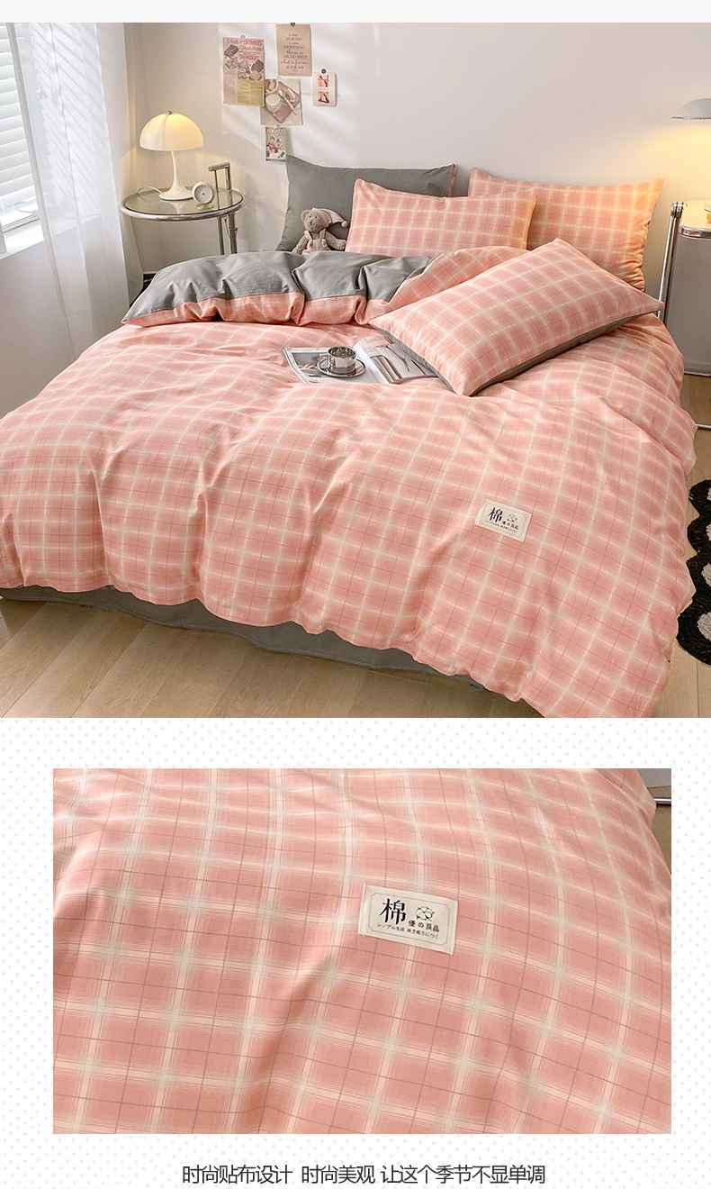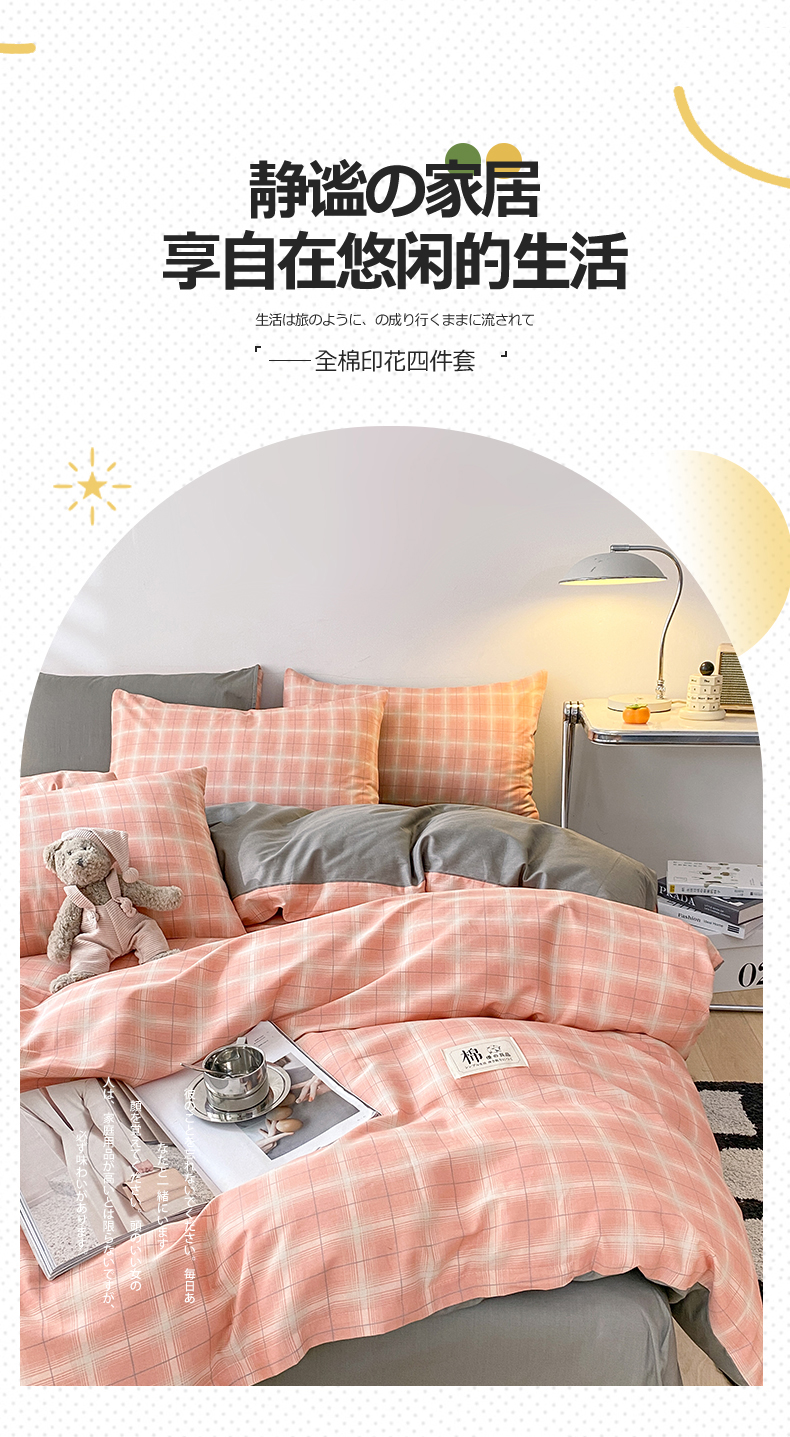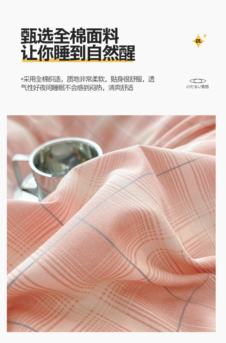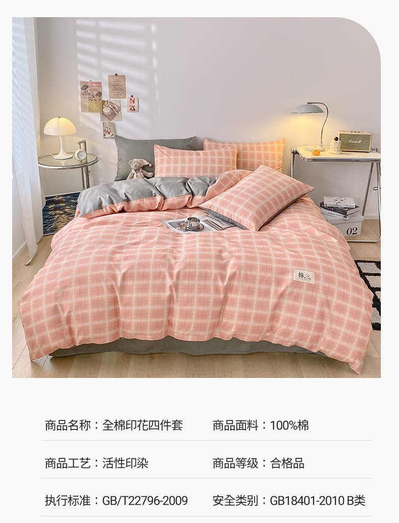 商品名称:澜妃 2025春夏新款12868全棉纯棉印花单被套 粉小格