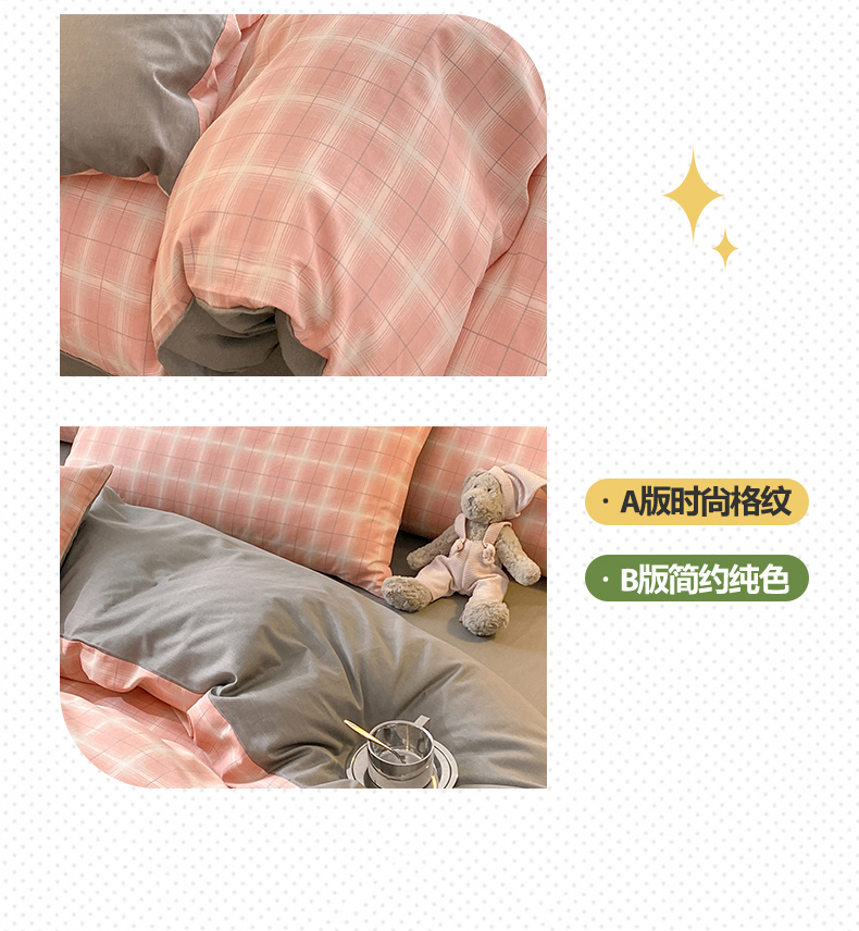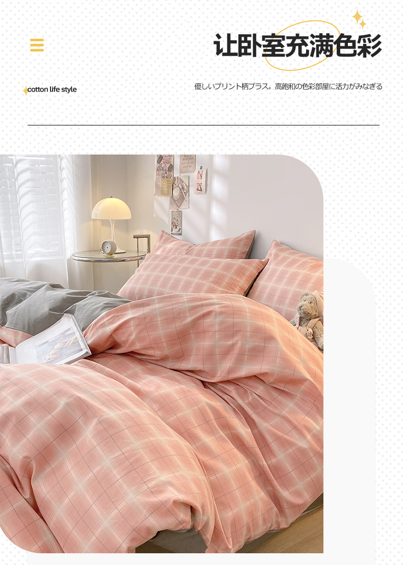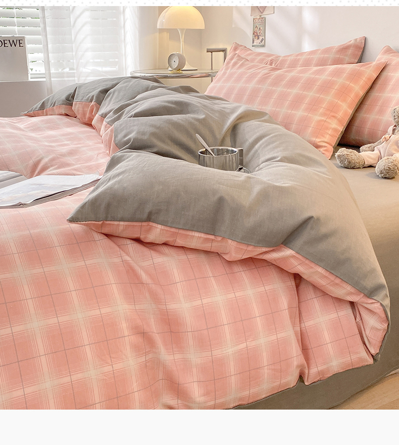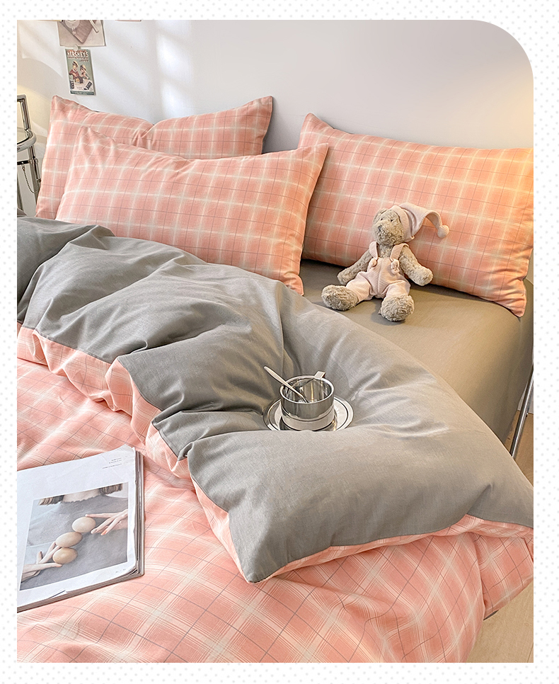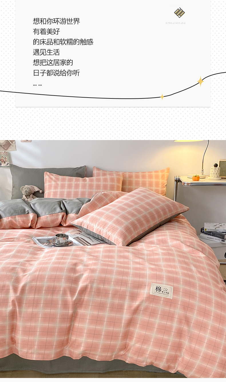 商品名称:澜妃 2025春夏新款12868全棉纯棉印花单被套 粉小格