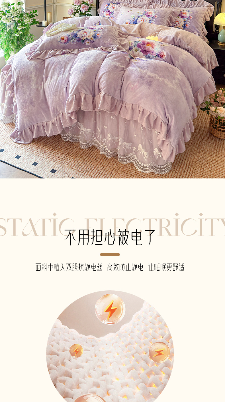 (总)宜凡家纺 2025新款兔绒提花牛奶绒夹棉床裙四件套,爱心 少女粉,爱心 粉紫,爱心 驼色,蝶舞 大红,蝶舞 米色,蝶舞 浅紫,蝶舞 玉色,简爱 苍青,简爱 豆沙紫,简爱 玉色,樱桃 苍青,樱桃 豆沙紫,樱桃 奶油白