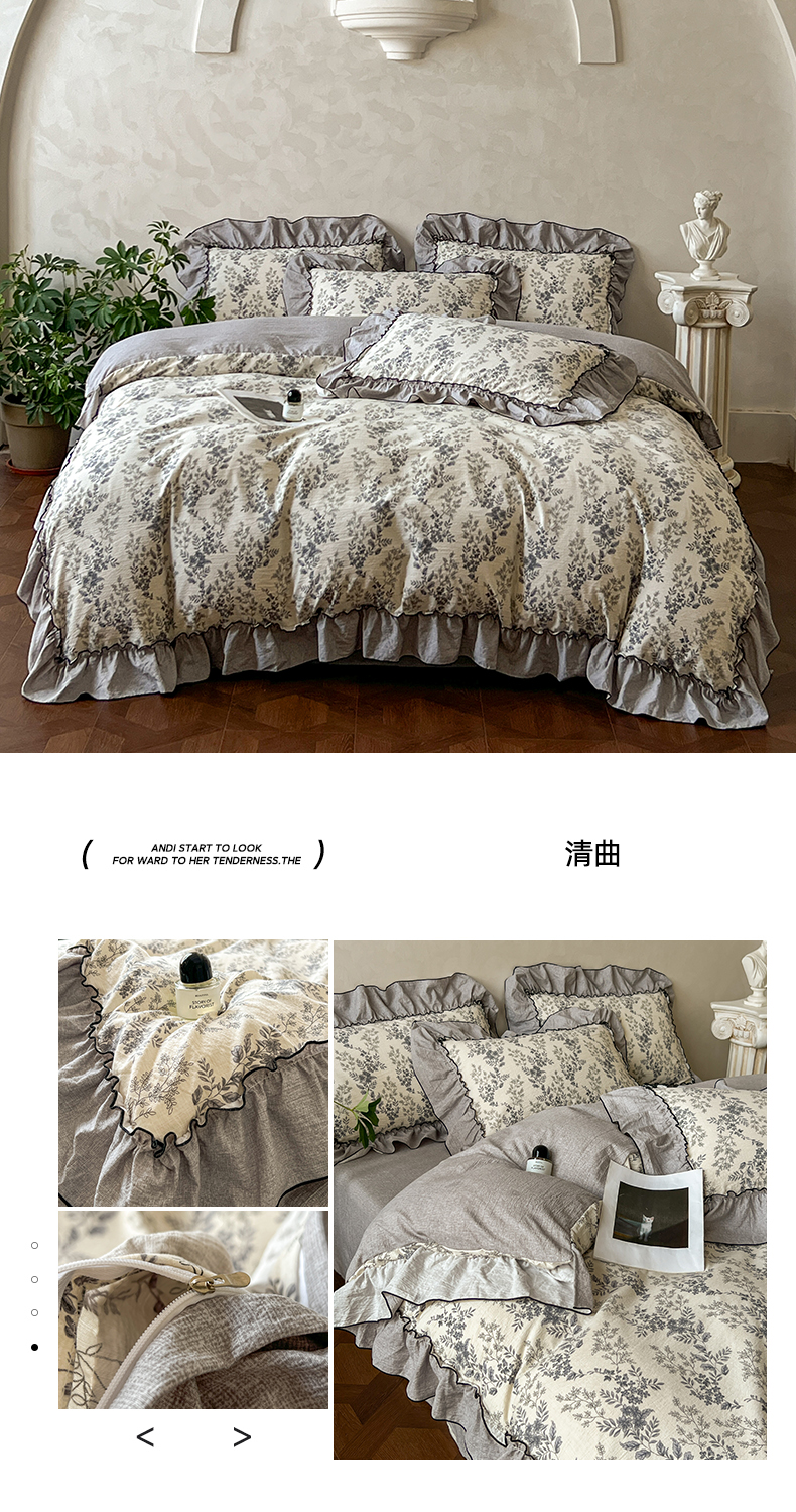 (总)柔享家(原芷澜家纺) 2025秋冬新款云感皱皱双层纱全棉镂空花边四件套,草莓小兔,春日兔语,泡芙小象,倾心,素瑾,甜梦狗狗,夏日,织梦