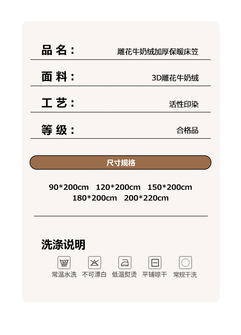 商品名称:(总)库里梦家纺 2025网红直播热款美拉德加厚3D雕花牛奶绒床笠