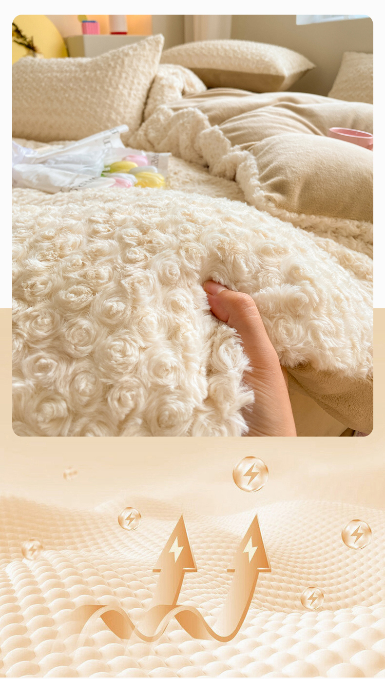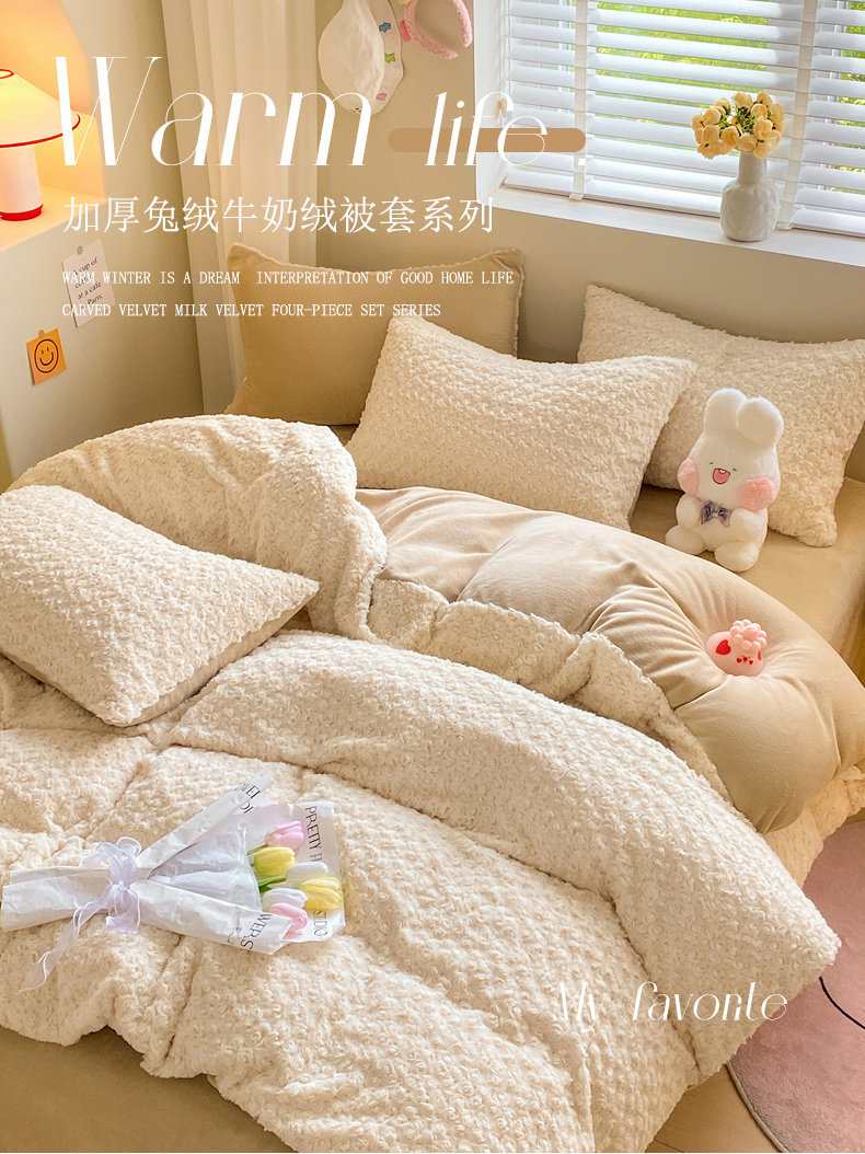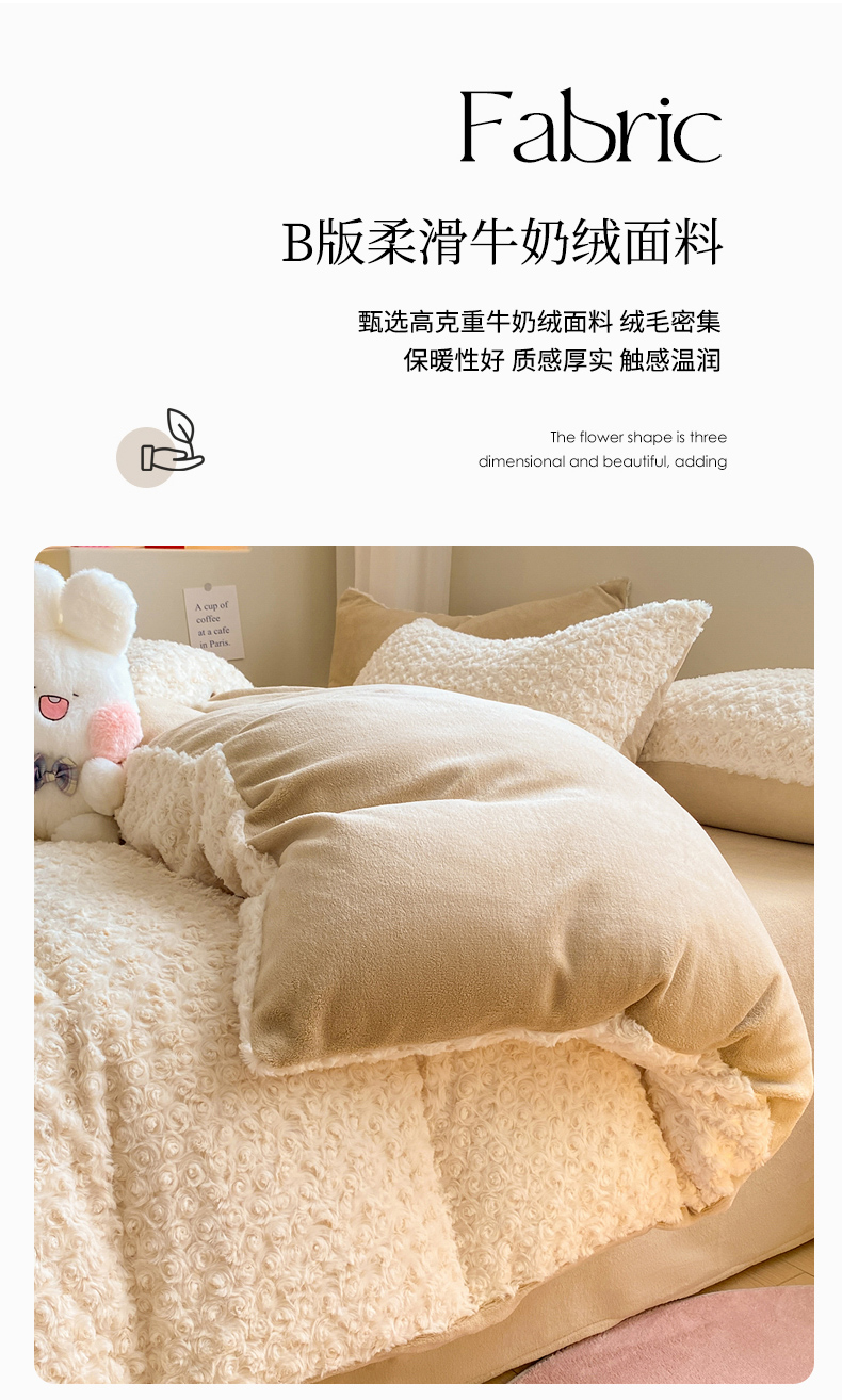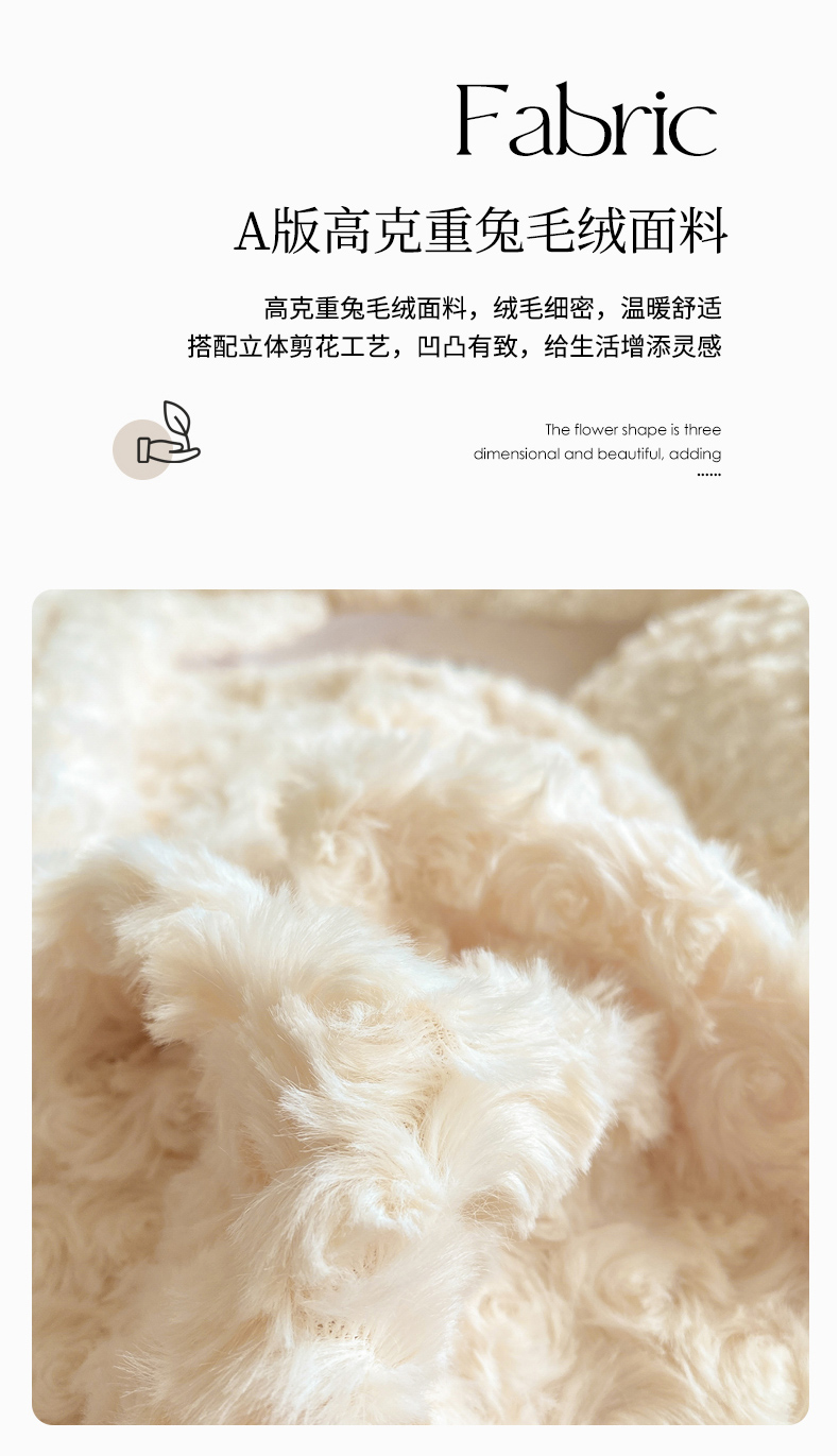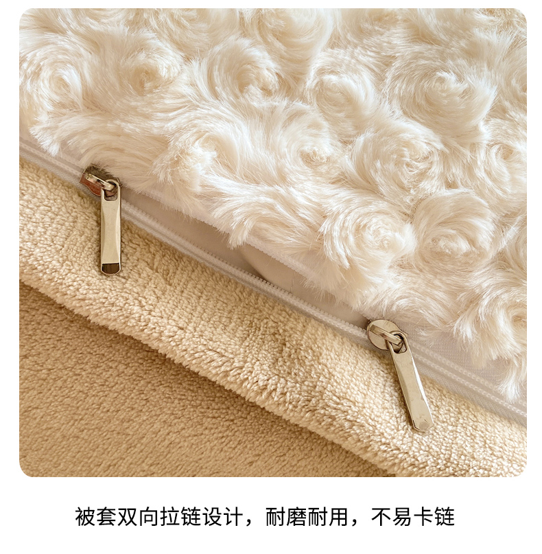 • 91家纺网 家纺一手货源 找家纺 名兮家居 2025冬季新款加厚仿兔绒单被套 玫瑰-白