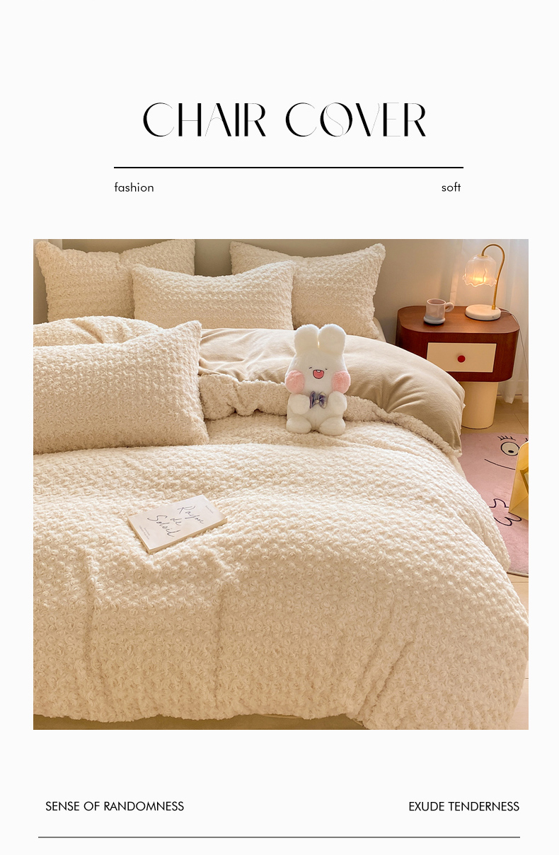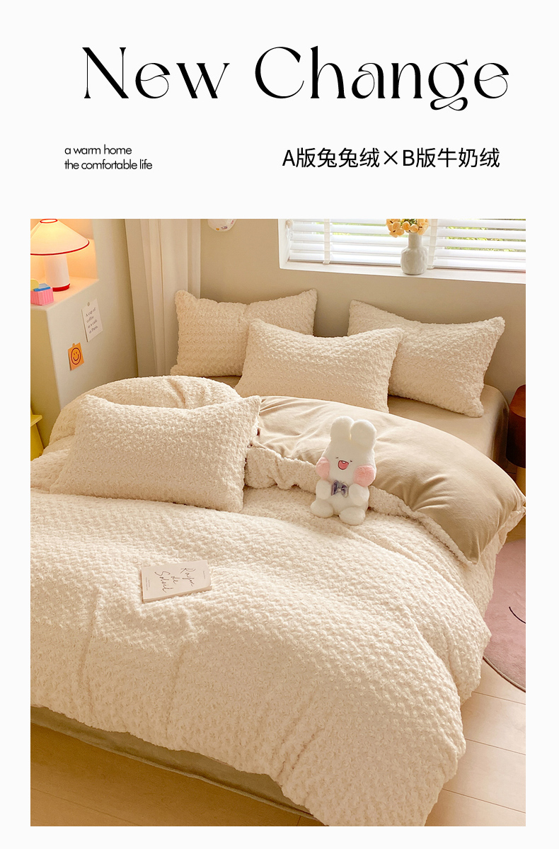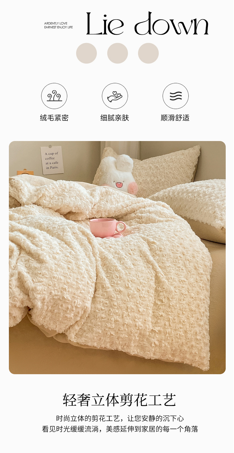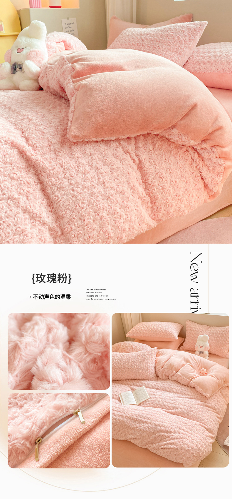 • 91家纺网 家纺一手货源 找家纺 名兮家居 2025冬季新款加厚仿兔绒单被套 玫瑰-白