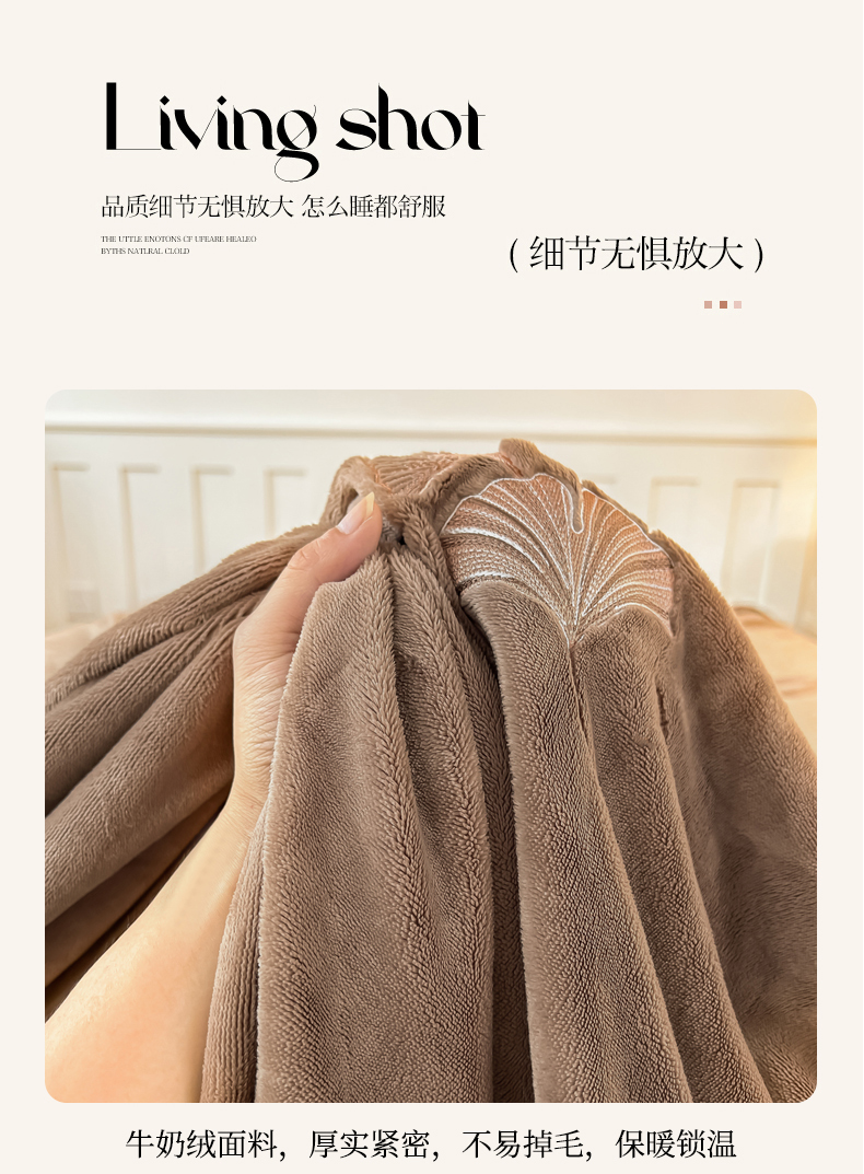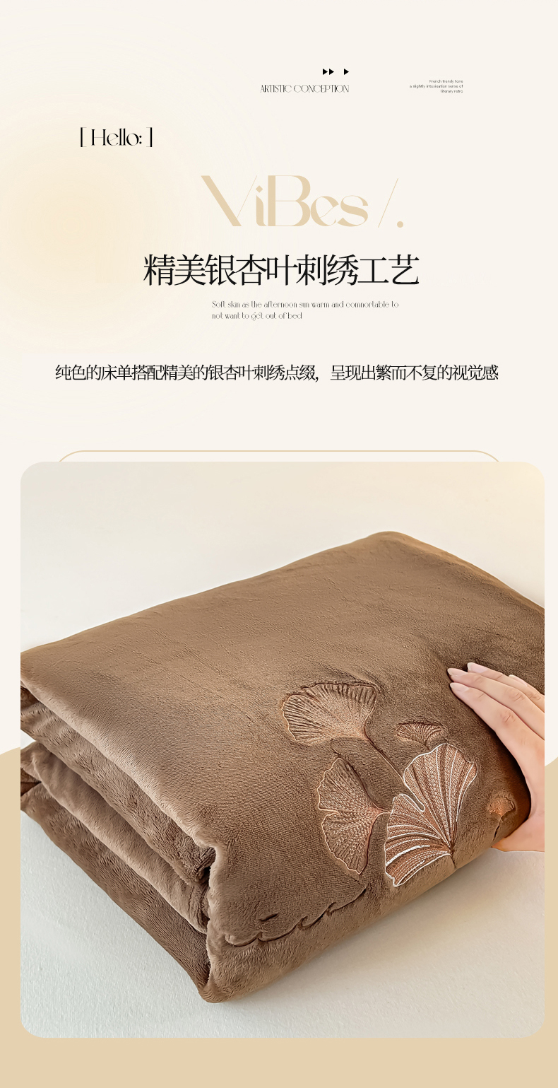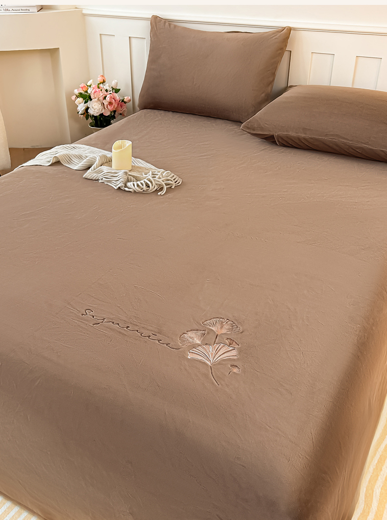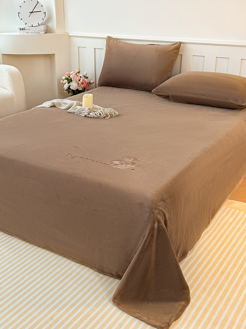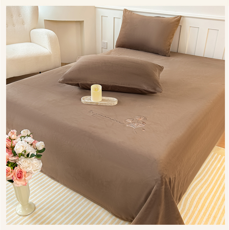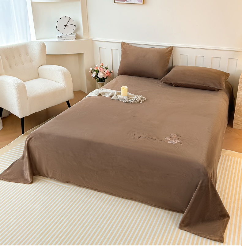 芙绣家纺 2025新款牛奶绒刺绣床单 摩卡棕