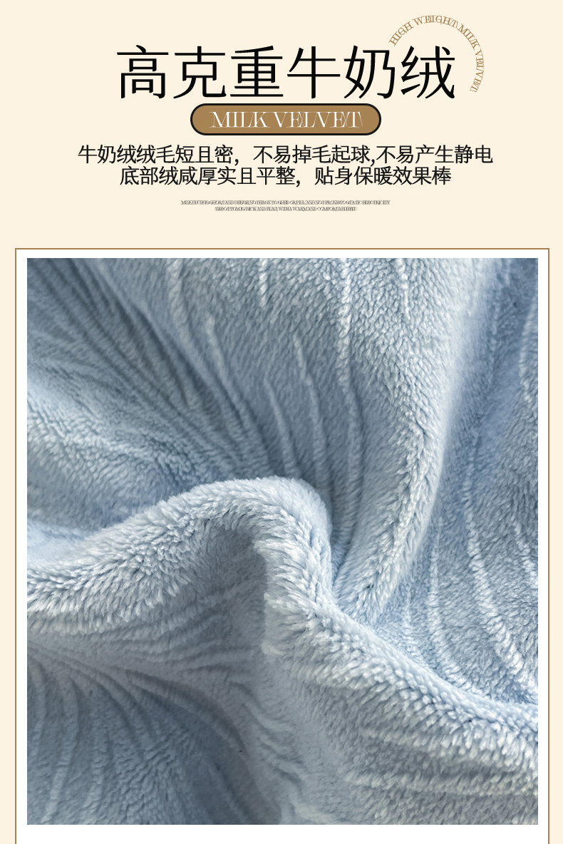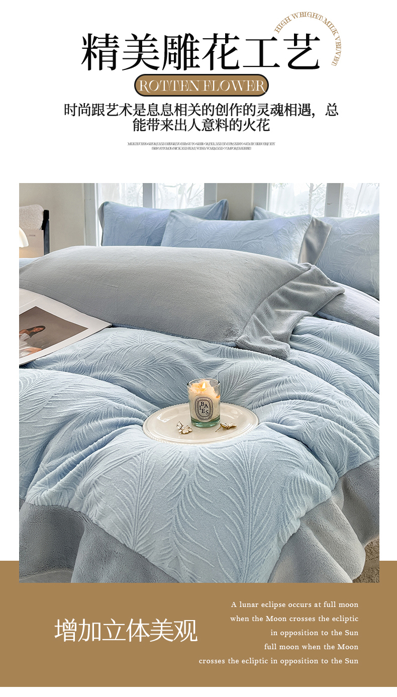 商品名称:遇见家居生活馆 2025新款A类牛奶绒雕花四件套-羽飞舞 婴儿蓝+星辰灰