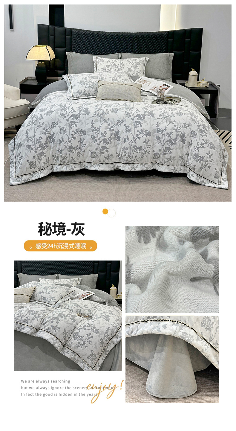(总)好阁家纺 2025新款轻奢织带雕花牛奶绒四件套,蝴蝶飞飞-粉,蝴蝶飞飞-灰,玫瑰庄园-粉,玫瑰庄园-灰,秘境-粉,秘境-灰,叶叶情深-灰,叶叶情深-卡其