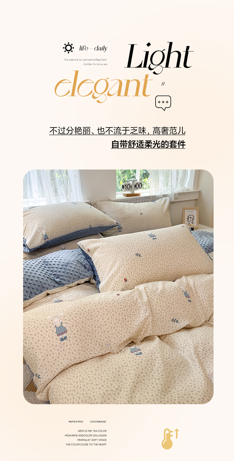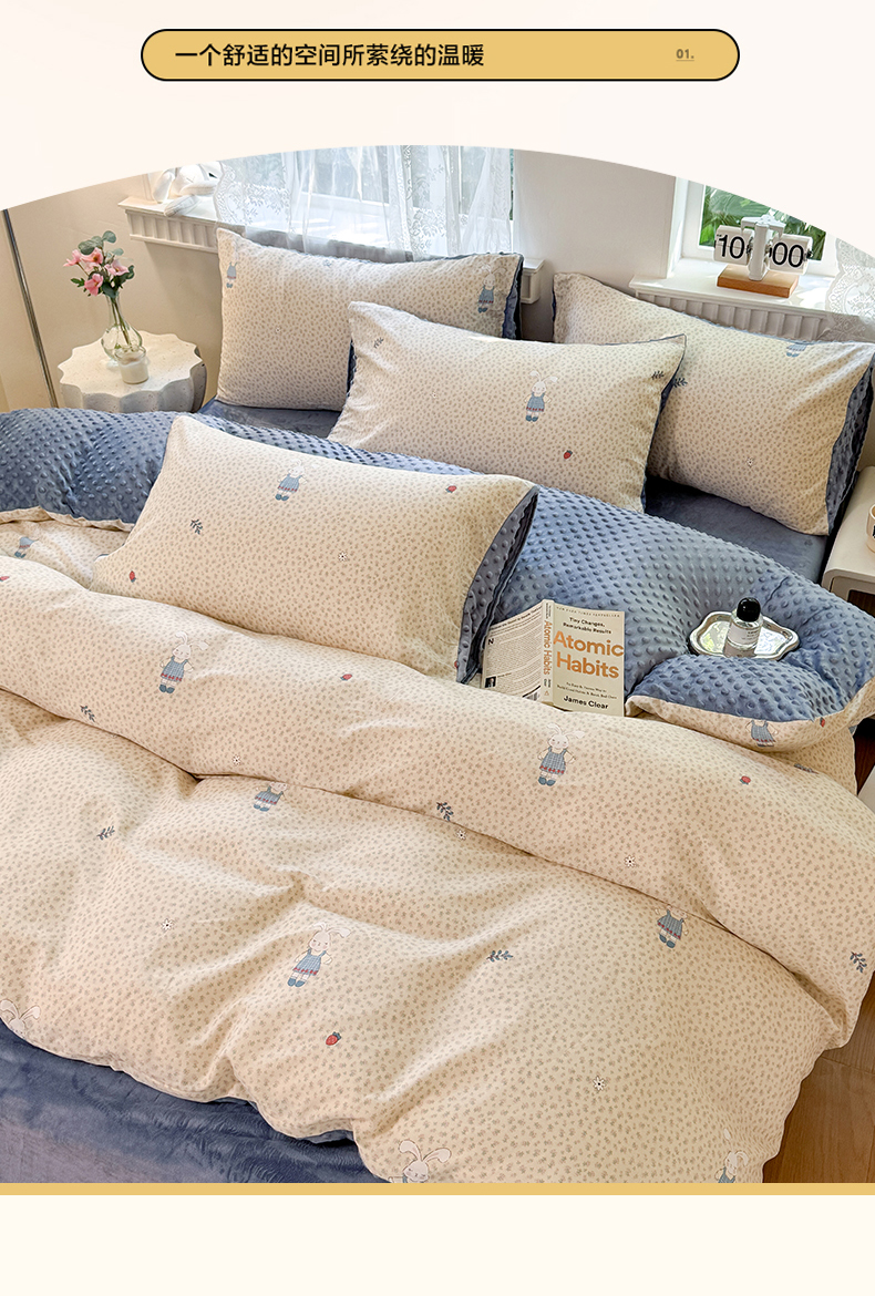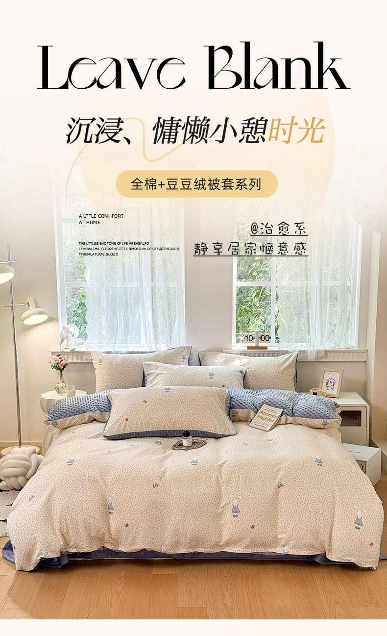 • 91家纺网 家纺一手货源 找家纺 雯雨家纺 2025新款ab版全棉豆豆绒婴儿绒牛奶绒单被套被罩单件 奶乎兔兔-米