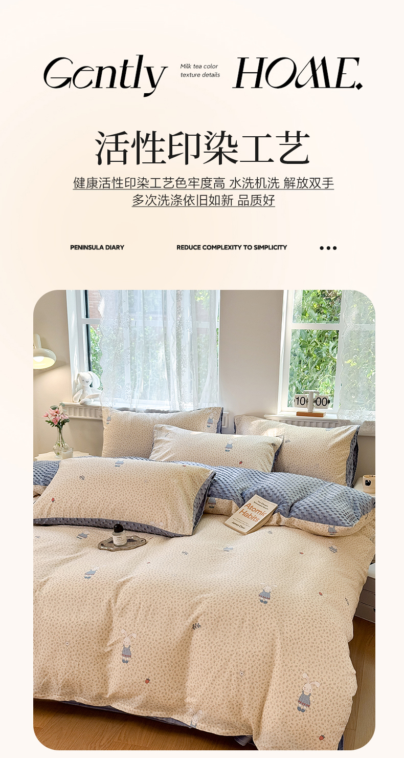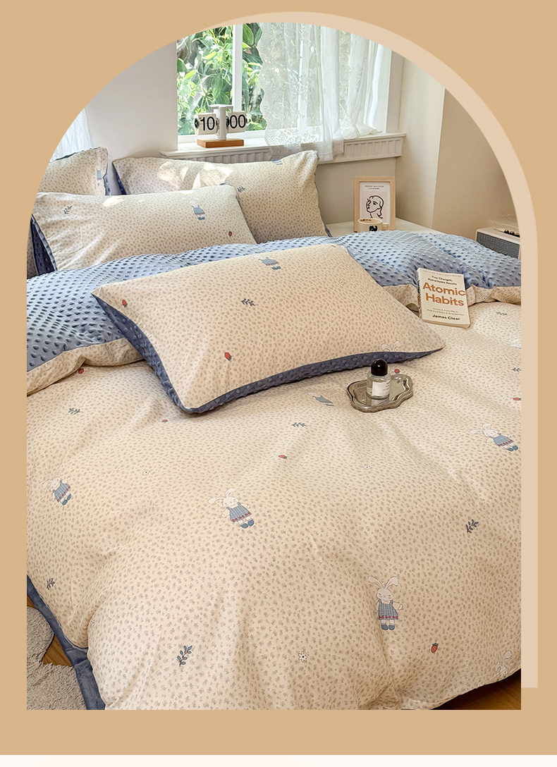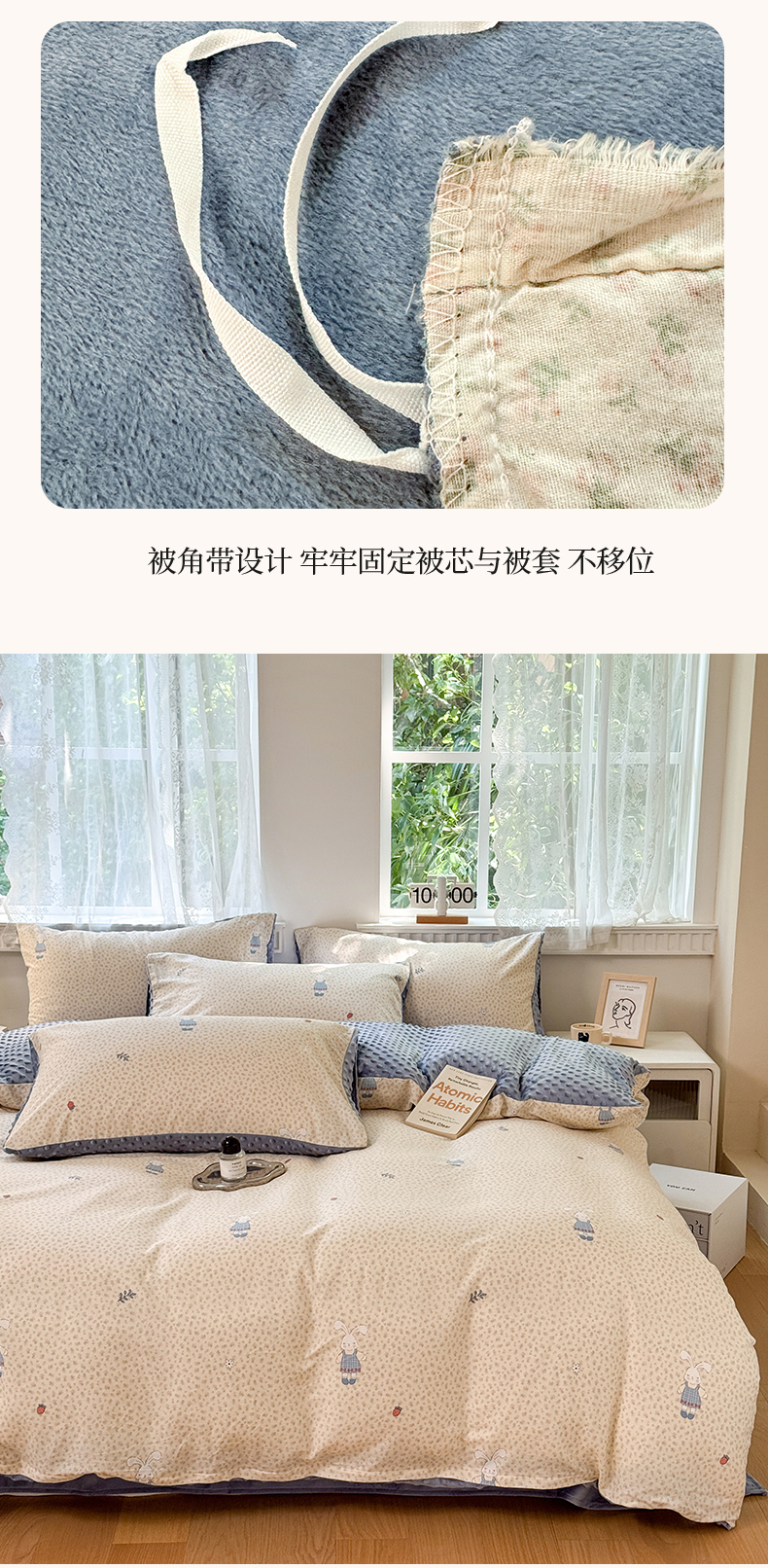 • 91家纺网 家纺一手货源 找家纺 雯雨家纺 2025新款ab版全棉豆豆绒婴儿绒牛奶绒单被套被罩单件 奶乎兔兔-米