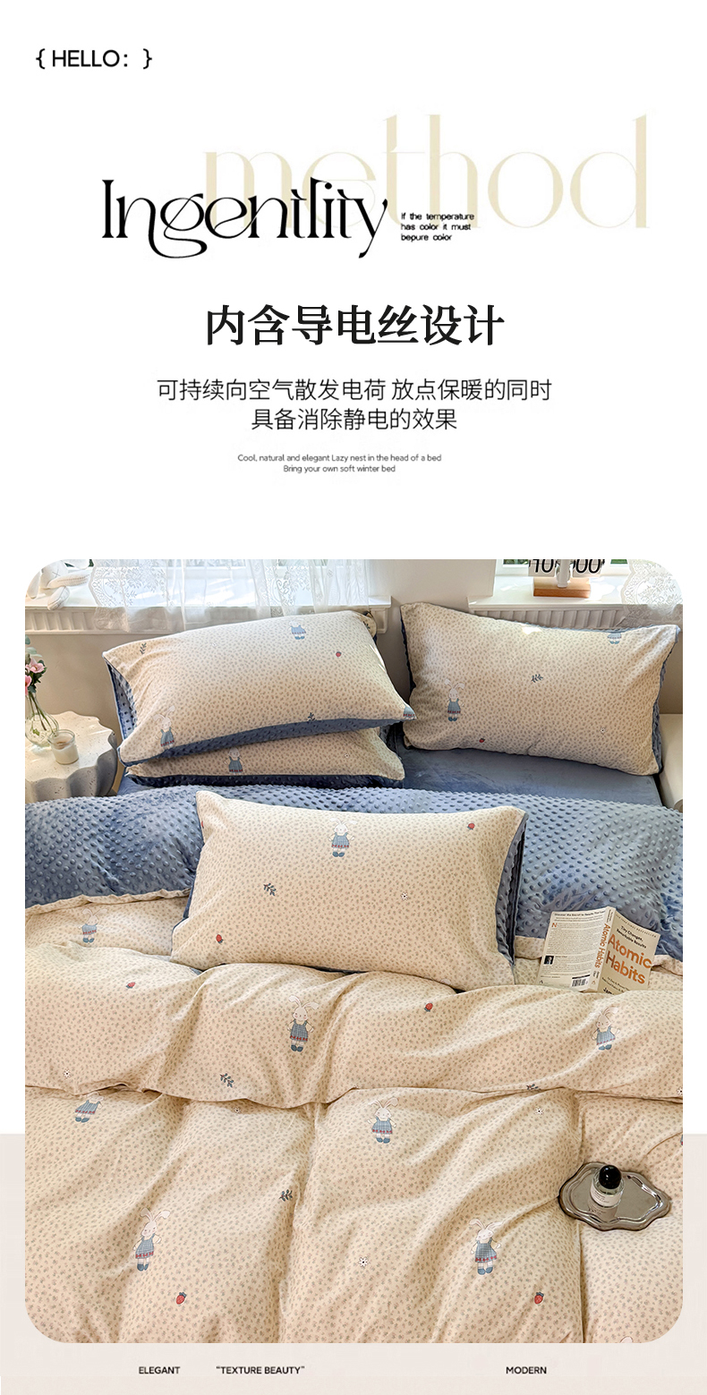 当前位置: 91家纺网 > 商品网购 > 床上用品 > 被套 > 雯雨家纺 2025新款ab版全棉豆豆绒婴儿绒牛奶绒单被套被罩单件 奶乎兔兔-米
