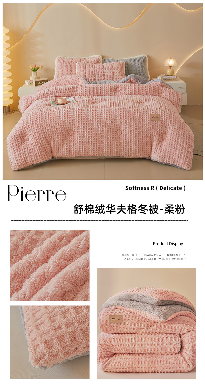 当前位置: 91家纺网 > 商品网购 > 被子 > 冬被 > 美梦里 2025新款华夫格舒棉绒冬被被子被芯 舒棉绒华夫格冬被-柔粉