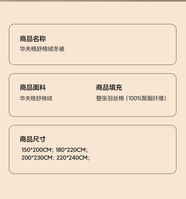 [{"sp_id":11,"sp_name":"\u989c\u8272","sp_format":2,"sp_list":[{"sp_value_id":1666,"sp_value_name":"\u8212\u68c9\u7ed2\u534e\u592b\u683c\u51ac\u88ab-\u67d4\u7c89","sp_value_image":{"id":999,"path":"https:\/\/img3.91jf.com\/ghelp\/2025\/20250923\/20250923124311_209608.jpg"},"sp_value_video":{"id":0,"img":"","path":"","time":0,"download_num":0,"play_num":0},"price":"27.00","storage":4500,"weight":"1.000","is_check_weight":0,"plus_price":"","sp_sort":0}]},{"sp_id":27,"sp_name":"\u5c3a\u5bf8","sp_format":1,"sp_list":[{"sp_value_id":302,"sp_value_name":"100x150cm","sp_value_image":{"id":0,"path":""},"sp_value_video":{"id":0,"img":"","path":"","time":0,"download_num":0,"play_num":0},"price":"27.00","storage":0,"weight":"1.000","is_check_weight":0,"plus_price":"","sp_sort":5},{"sp_value_id":303,"sp_value_name":"150x200cm 4\u65a4","sp_value_image":{"id":0,"path":""},"sp_value_video":{"id":0,"img":"","path":"","time":0,"download_num":0,"play_num":0},"price":"40.00","storage":500,"weight":"2.000","is_check_weight":0,"plus_price":"","sp_sort":6},{"sp_value_id":304,"sp_value_name":"150x200cm 5\u65a4","sp_value_image":{"id":0,"path":""},"sp_value_video":{"id":0,"img":"","path":"","time":0,"download_num":0,"play_num":0},"price":"43.00","storage":500,"weight":"2.500","is_check_weight":0,"plus_price":"","sp_sort":7},{"sp_value_id":305,"sp_value_name":"150x200cm 6\u65a4","sp_value_image":{"id":0,"path":""},"sp_value_video":{"id":0,"img":"","path":"","time":0,"download_num":0,"play_num":0},"price":"46.00","storage":500,"weight":"3.000","is_check_weight":0,"plus_price":"","sp_sort":8},{"sp_value_id":306,"sp_value_name":"150x200cm 7\u65a4","sp_value_image":{"id":0,"path":""},"sp_value_video":{"id":0,"img":"","path":"","time":0,"download_num":0,"play_num":0},"price":"50.00","storage":500,"weight":"3.500","is_check_weight":0,"plus_price":"","sp_sort":9},{"sp_value_id":307,"sp_value_name":"180x220cm 6\u65a4","sp_value_image":{"id":0,"path":""},"sp_value_video":{"id":0,"img":"","path":"","time":0,"download_num":0,"play_num":0},"price":"50.00","storage":500,"weight":"3.000","is_check_weight":0,"plus_price":"","sp_sort":10},{"sp_value_id":308,"sp_value_name":"180x220cm 8\u65a4","sp_value_image":{"id":0,"path":""},"sp_value_video":{"id":0,"img":"","path":"","time":0,"download_num":0,"play_num":0},"price":"54.00","storage":500,"weight":"4.000","is_check_weight":0,"plus_price":"","sp_sort":11},{"sp_value_id":309,"sp_value_name":"200x230cm 6\u65a4","sp_value_image":{"id":0,"path":""},"sp_value_video":{"id":0,"img":"","path":"","time":0,"download_num":0,"play_num":0},"price":"52.00","storage":500,"weight":"3.000","is_check_weight":0,"plus_price":"","sp_sort":12},{"sp_value_id":310,"sp_value_name":"200x230cm 8\u65a4","sp_value_image":{"id":0,"path":""},"sp_value_video":{"id":0,"img":"","path":"","time":0,"download_num":0,"play_num":0},"price":"56.00","storage":500,"weight":"4.000","is_check_weight":0,"plus_price":"","sp_sort":13},{"sp_value_id":311,"sp_value_name":"200x230cm 10\u65a4","sp_value_image":{"id":0,"path":""},"sp_value_video":{"id":0,"img":"","path":"","time":0,"download_num":0,"play_num":0},"price":"62.00","storage":500,"weight":"5.000","is_check_weight":0,"plus_price":"","sp_sort":14}]}]