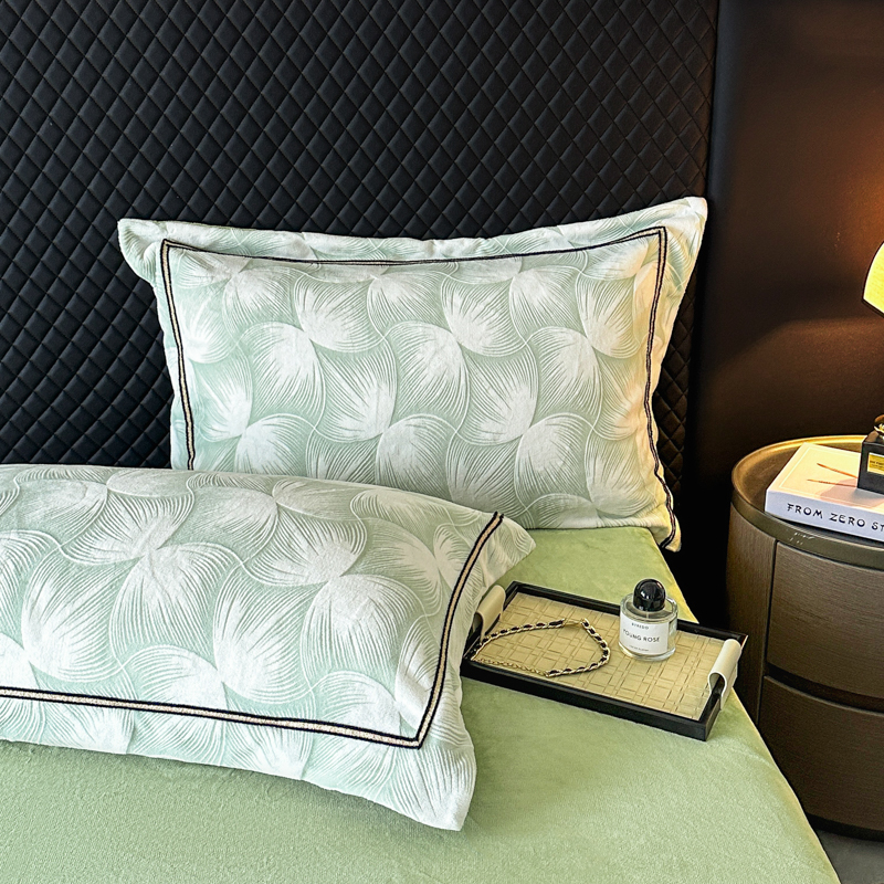 商品名称:诺梵家纺 2025新款8.2斤宽边织带雕花绒牛奶绒四件套 巴洛克-绿