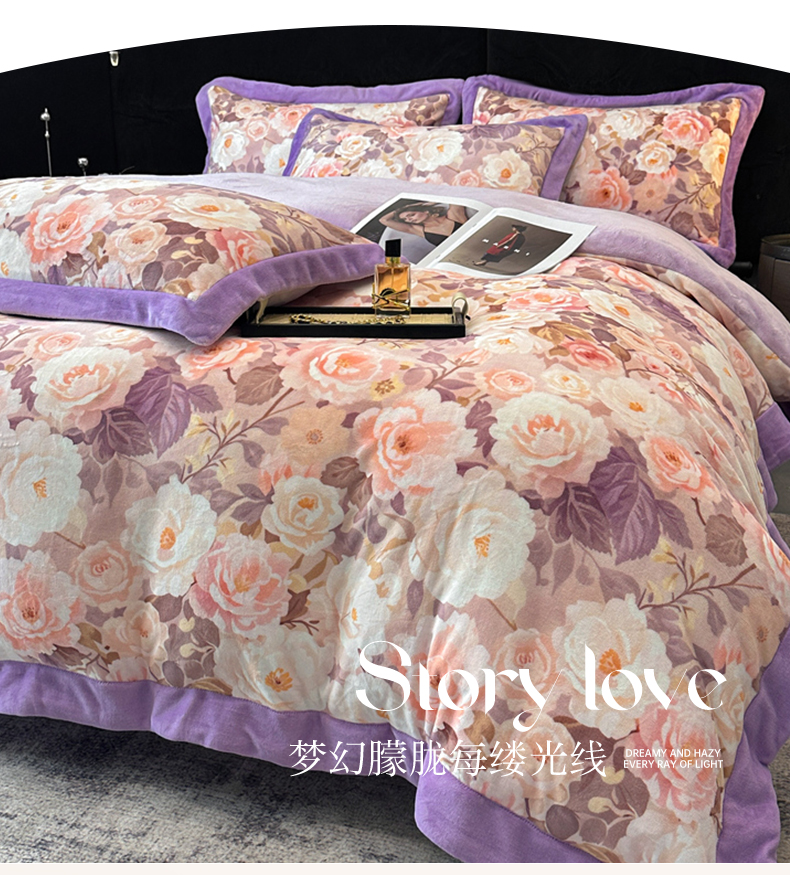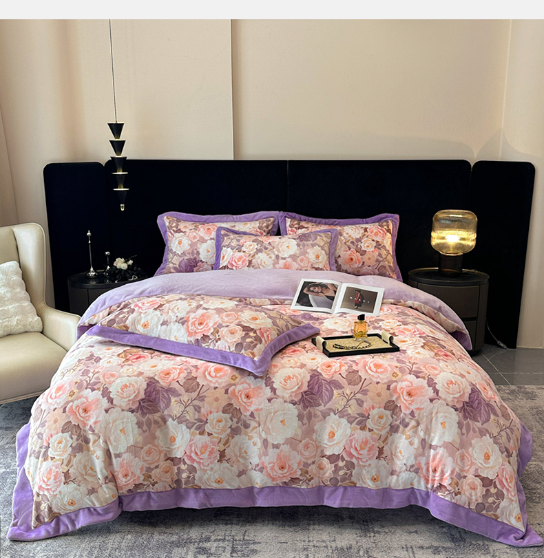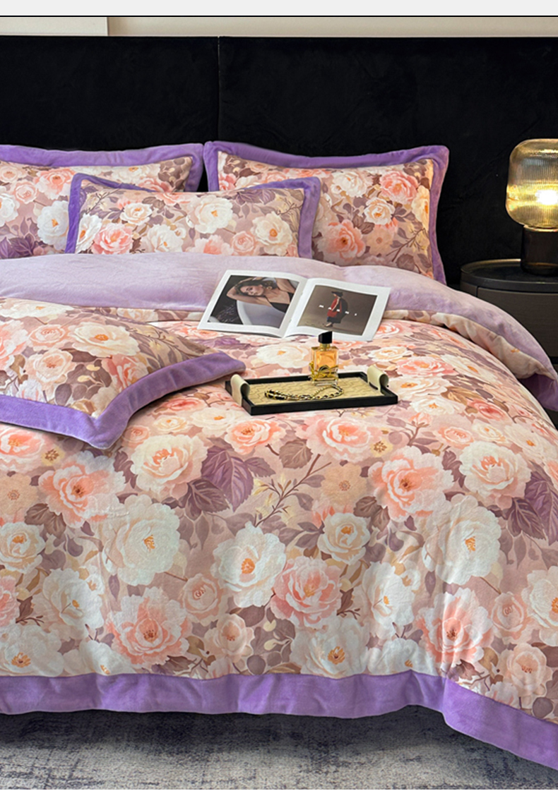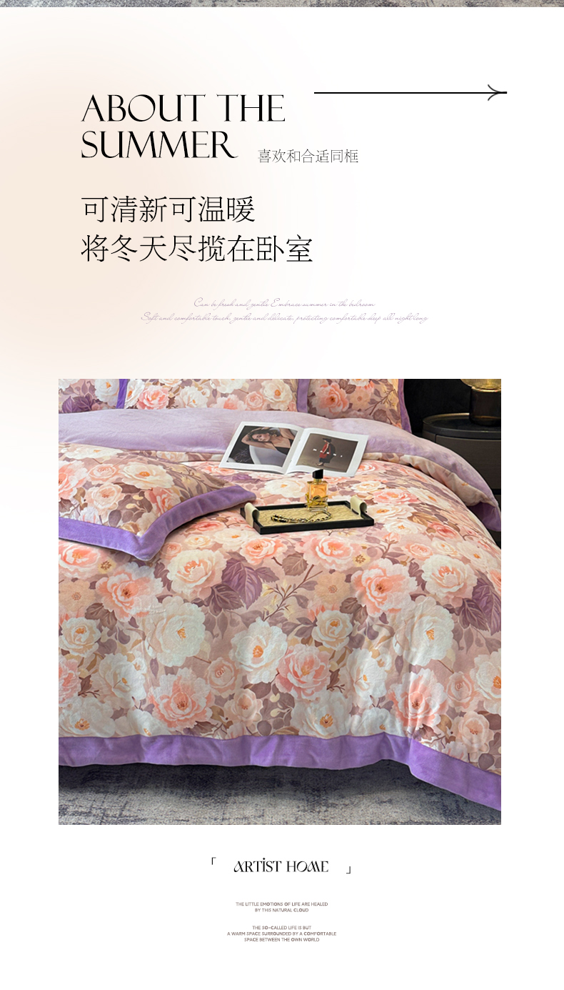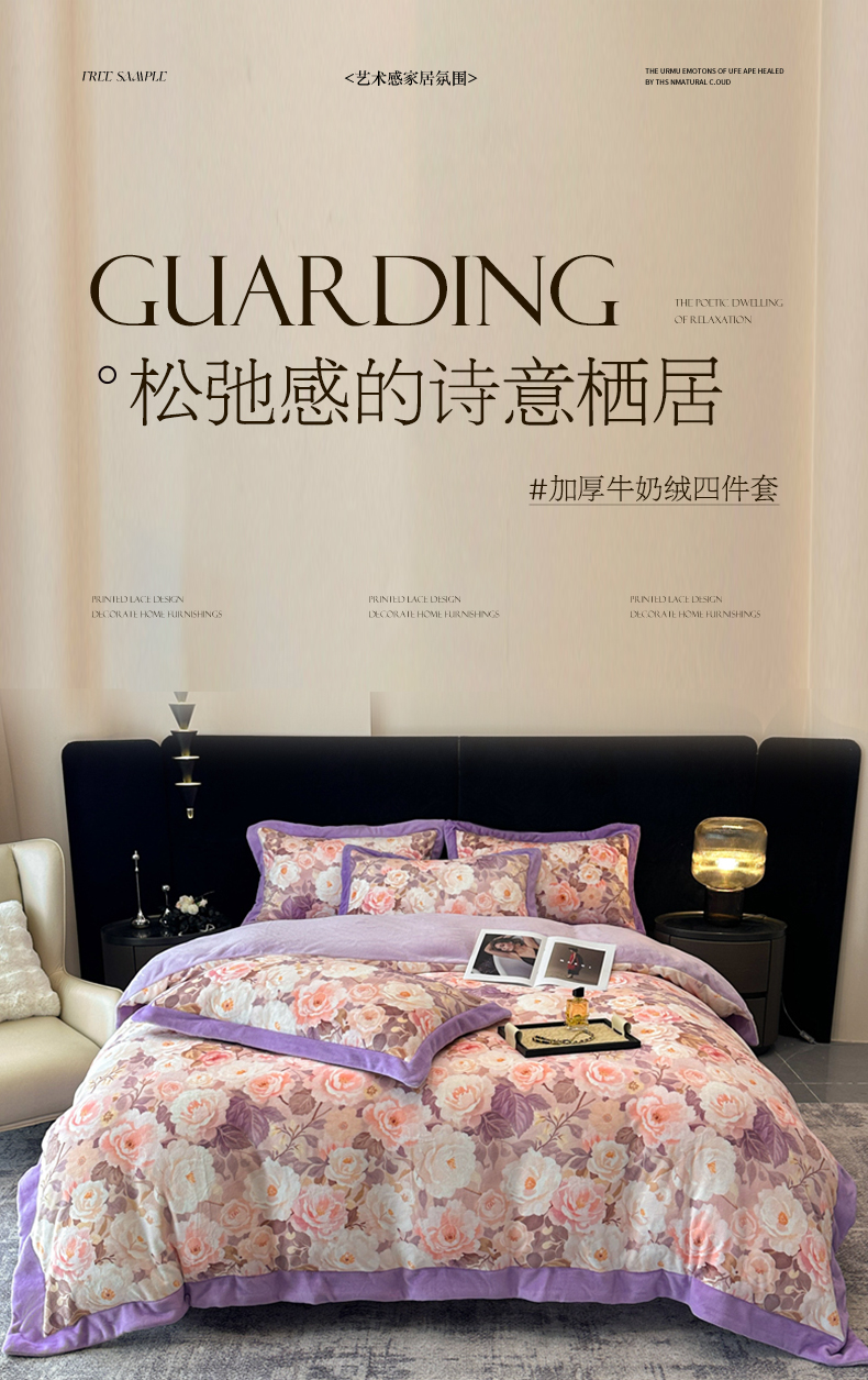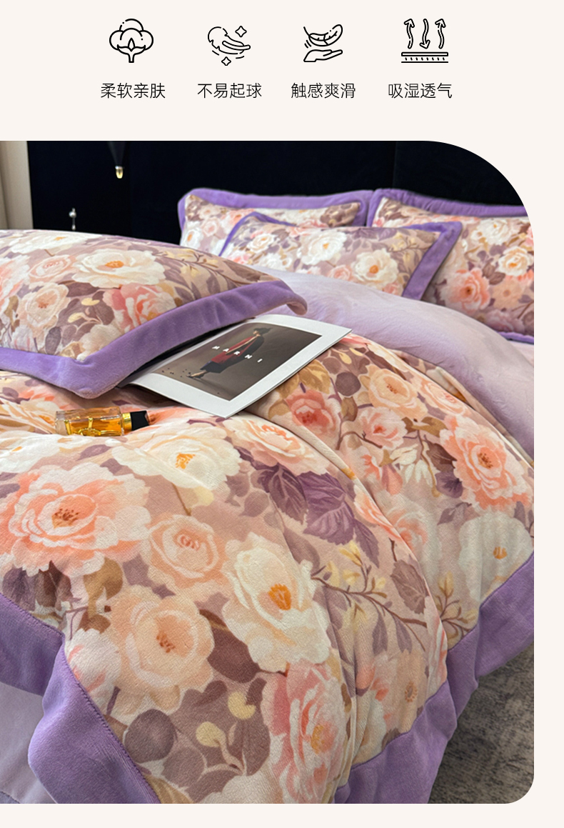 诺梵家纺 2025新款数码印花牛奶绒四件套(控价:159) 玫瑰花园-紫