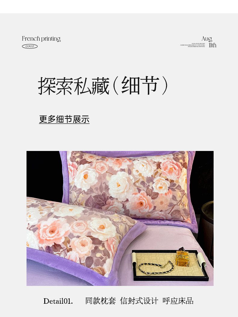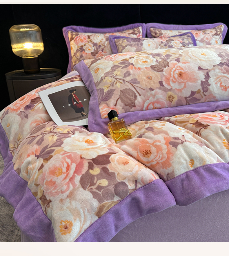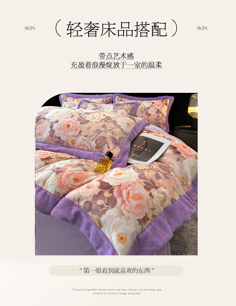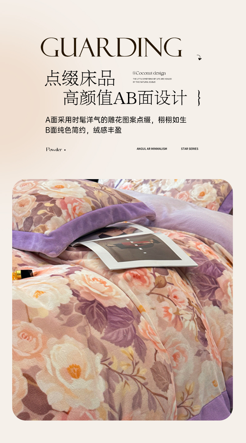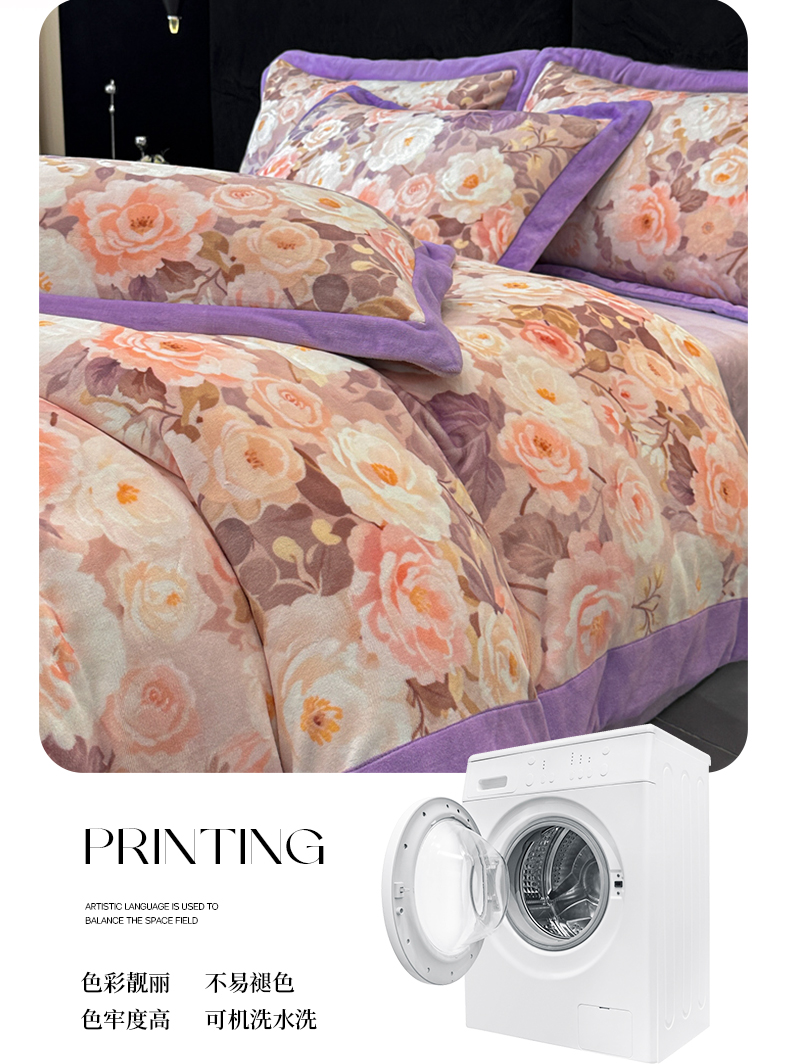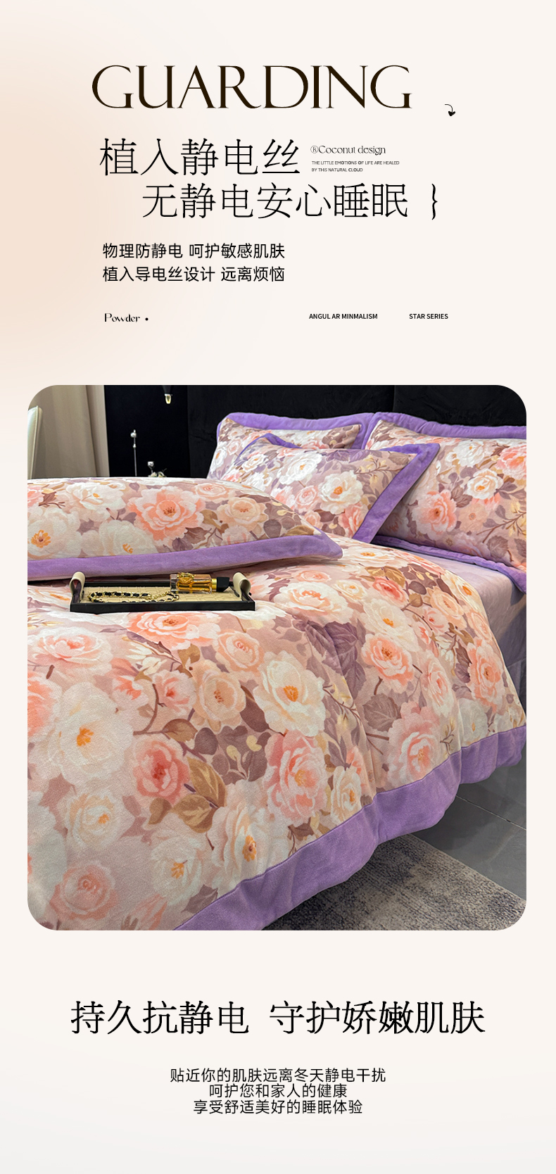 诺梵家纺 2025新款数码印花牛奶绒四件套(控价:159) 玫瑰花园-紫