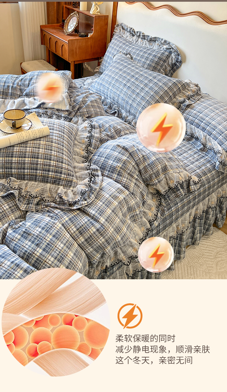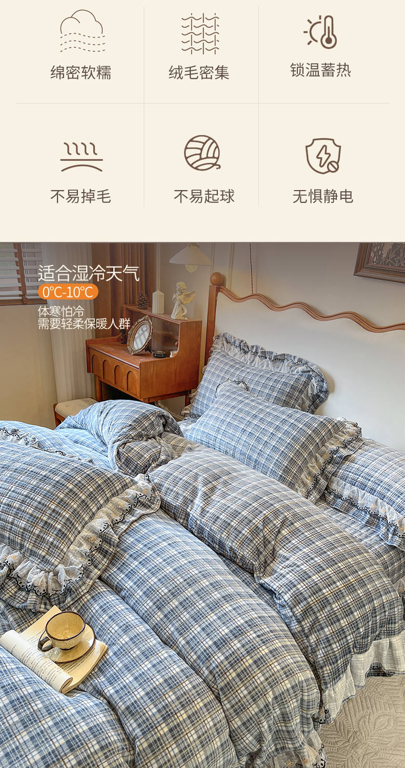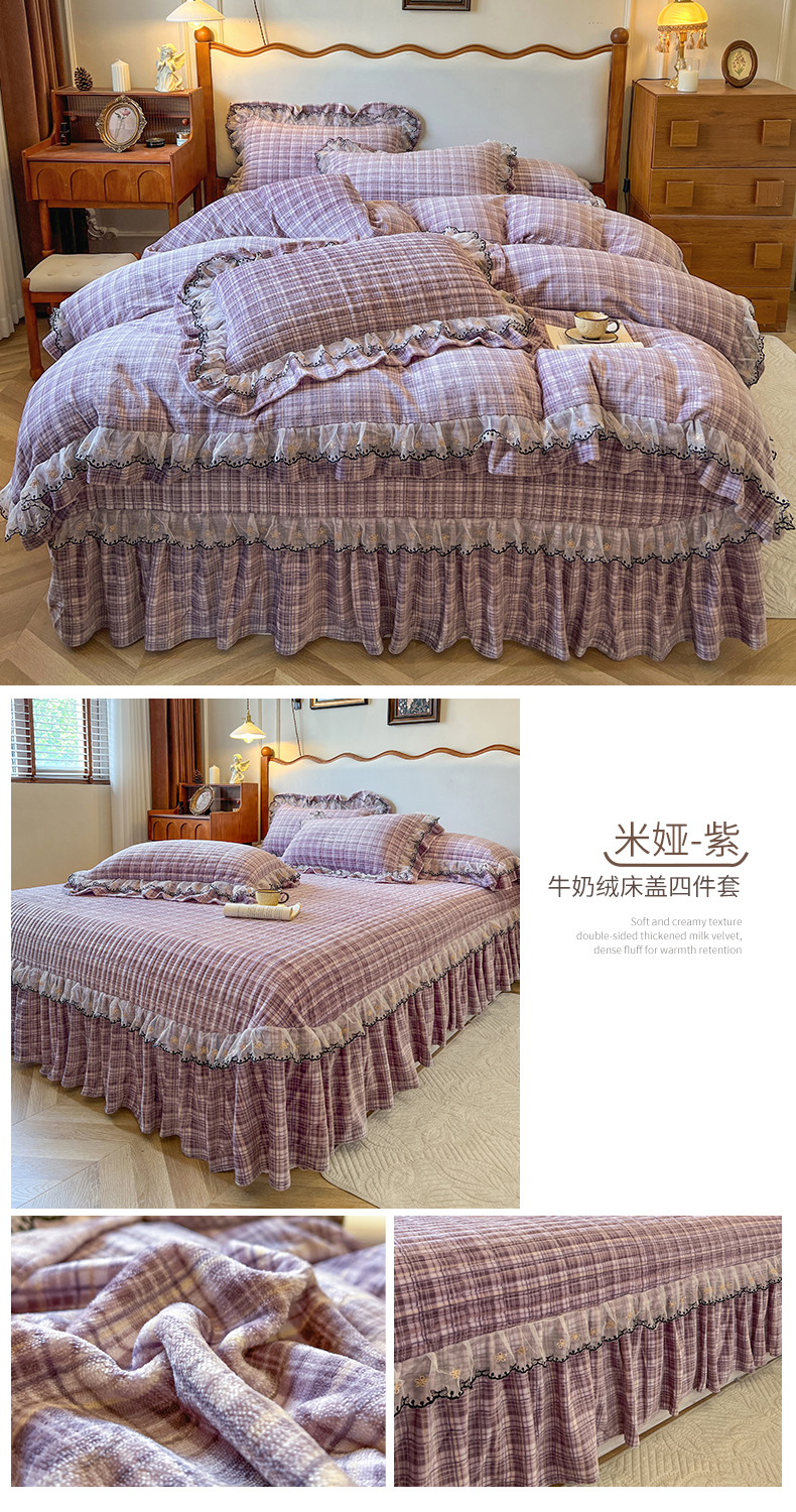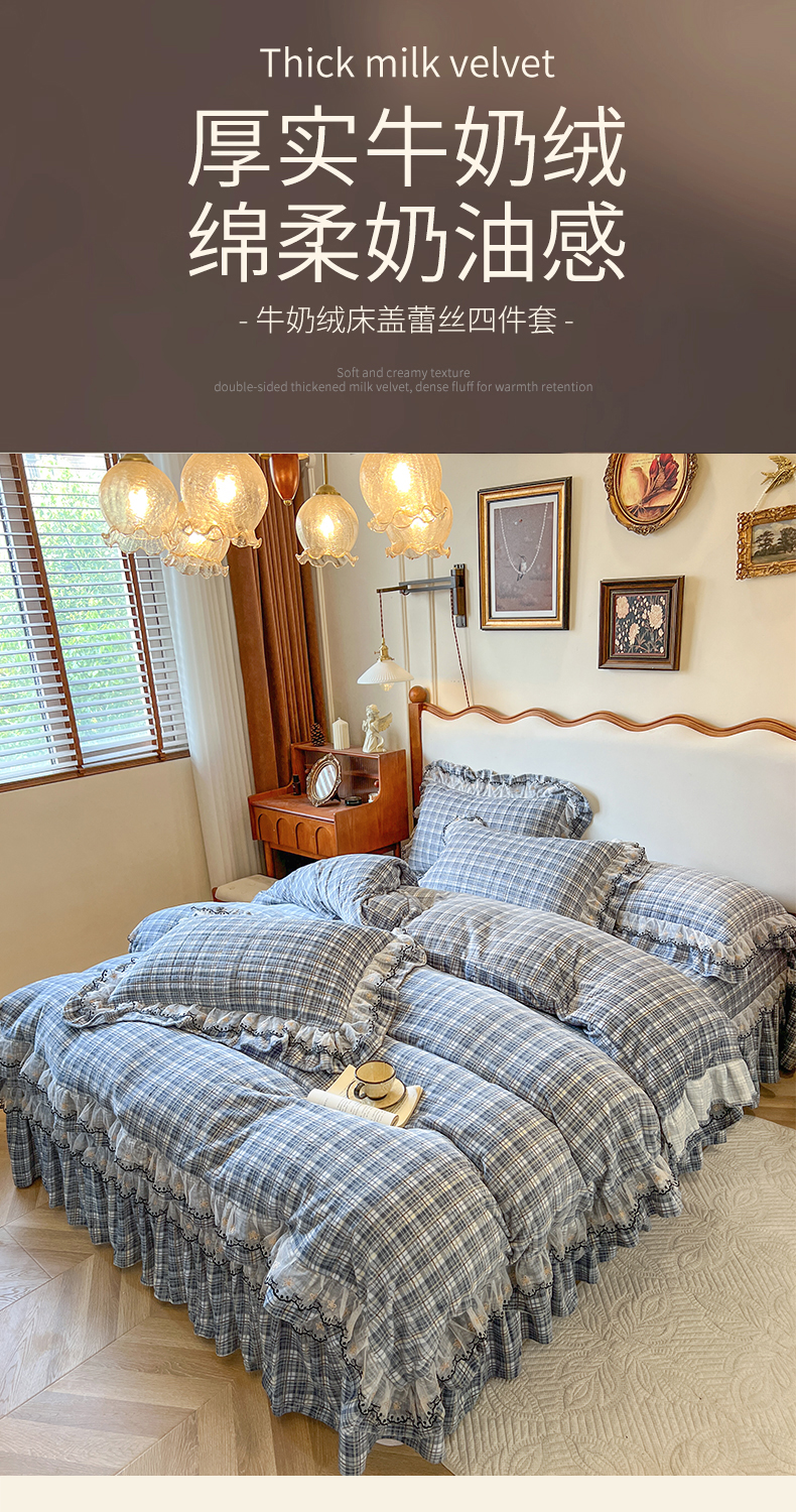当前位置: 91家纺网 > 商品网购 > 床品套件 > 四件套 > 牛奶绒四件套 > 网红馆(ck家纺) 2025新款高克重牛奶绒床盖四件套-米娅 米娅-蓝