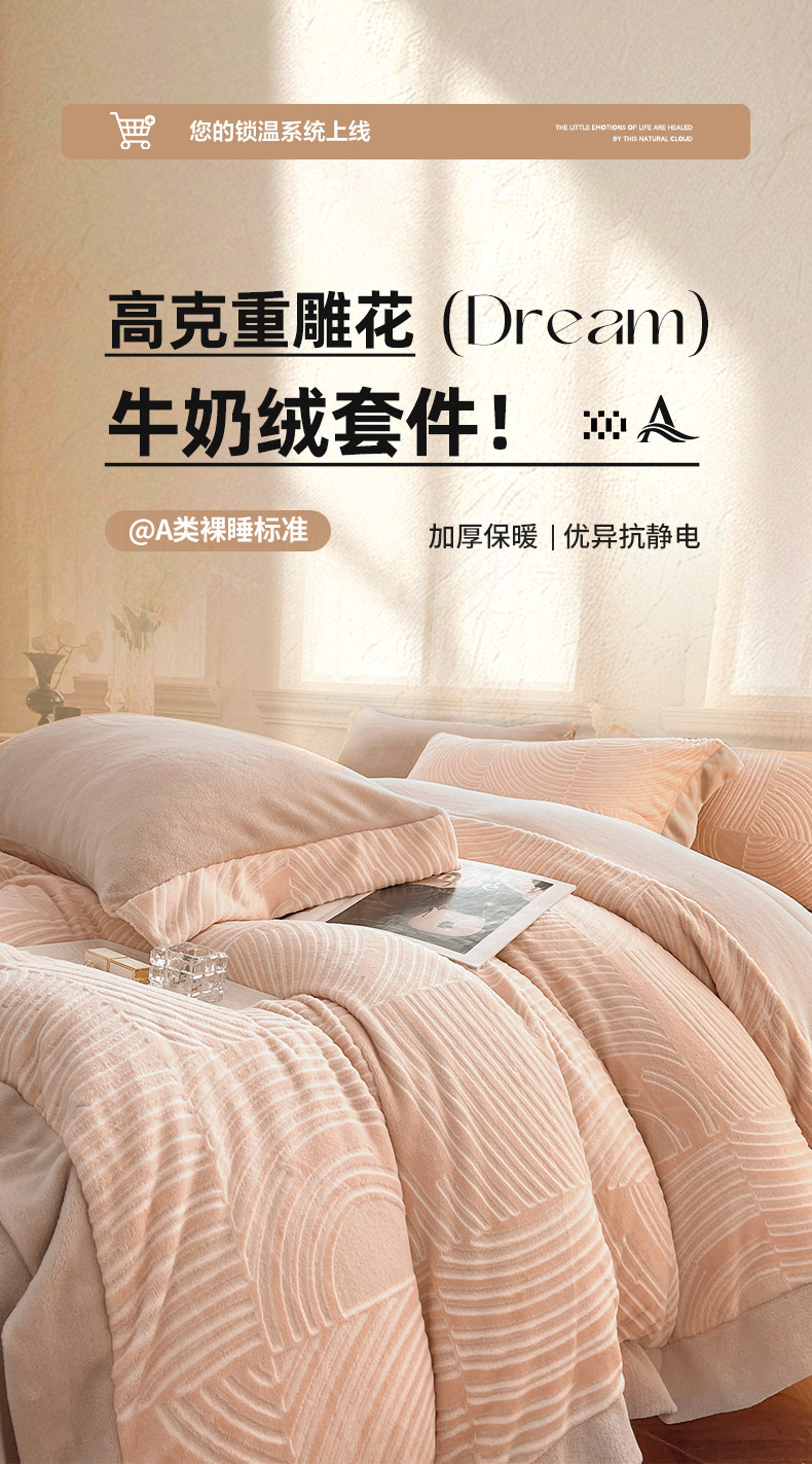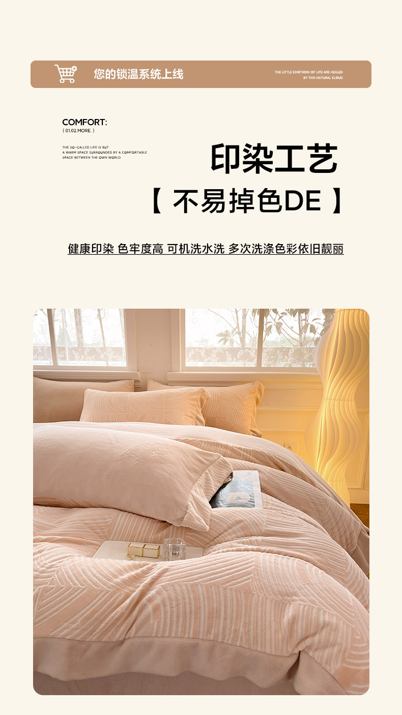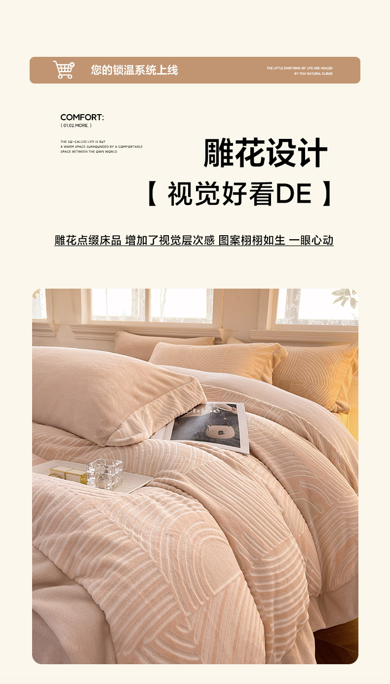 商品名称:(总) 2025秋冬新品A类加厚保暖雕花牛奶绒四件套婴儿绒被套床单双面珊瑚绒床笠款床上用品