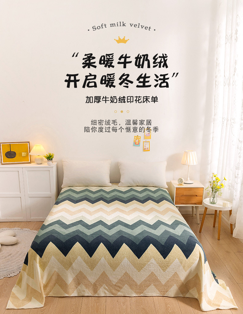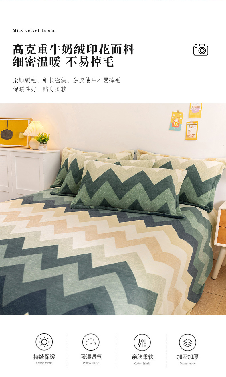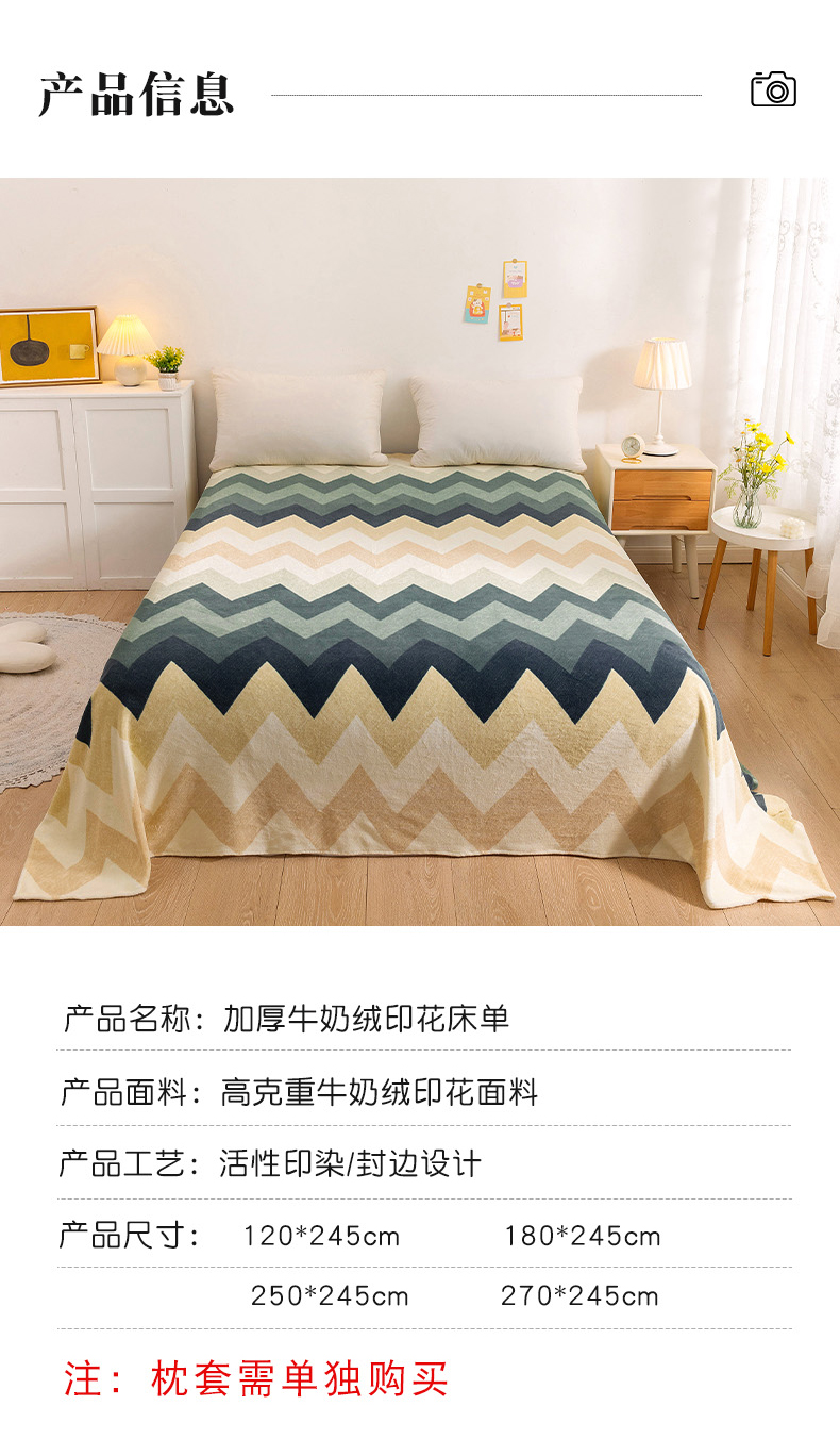 商品名称:金盛纺 2025新款高克重牛奶绒印花系列单床单(可定制) 梦境(绿)