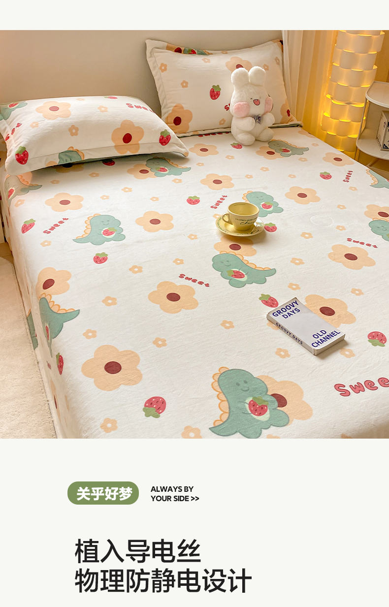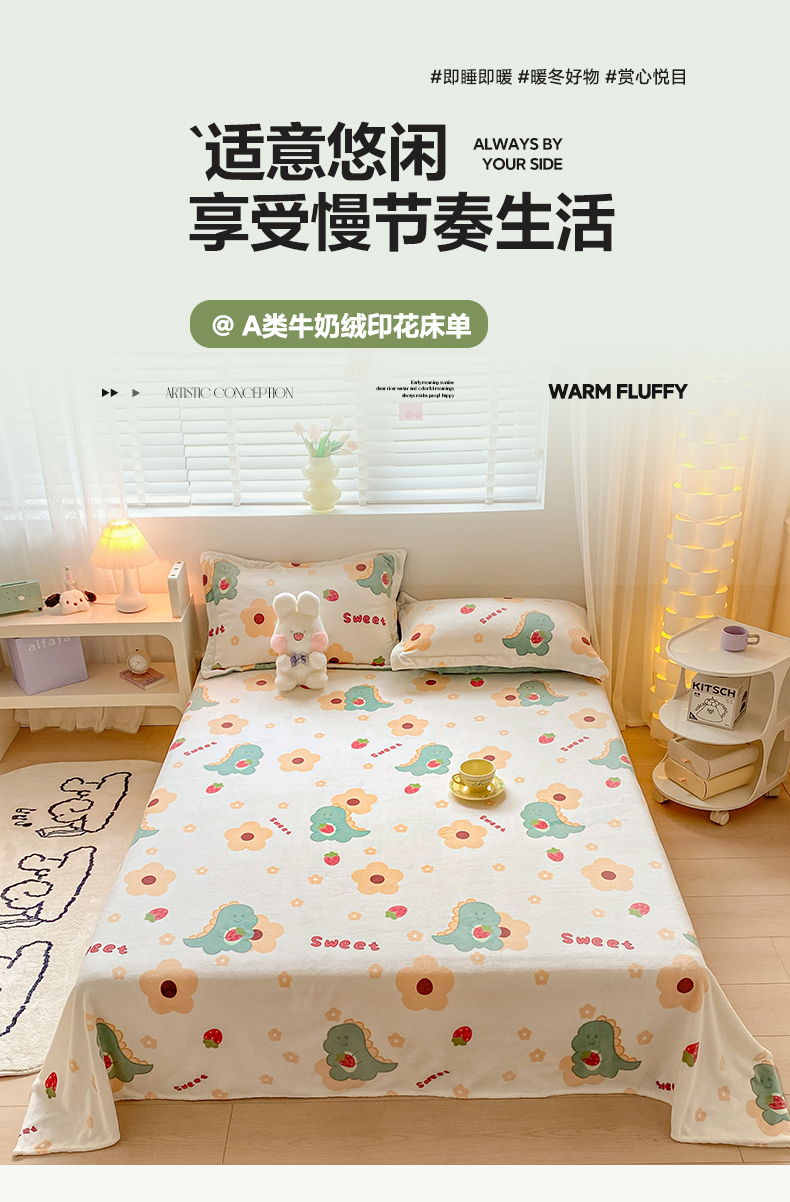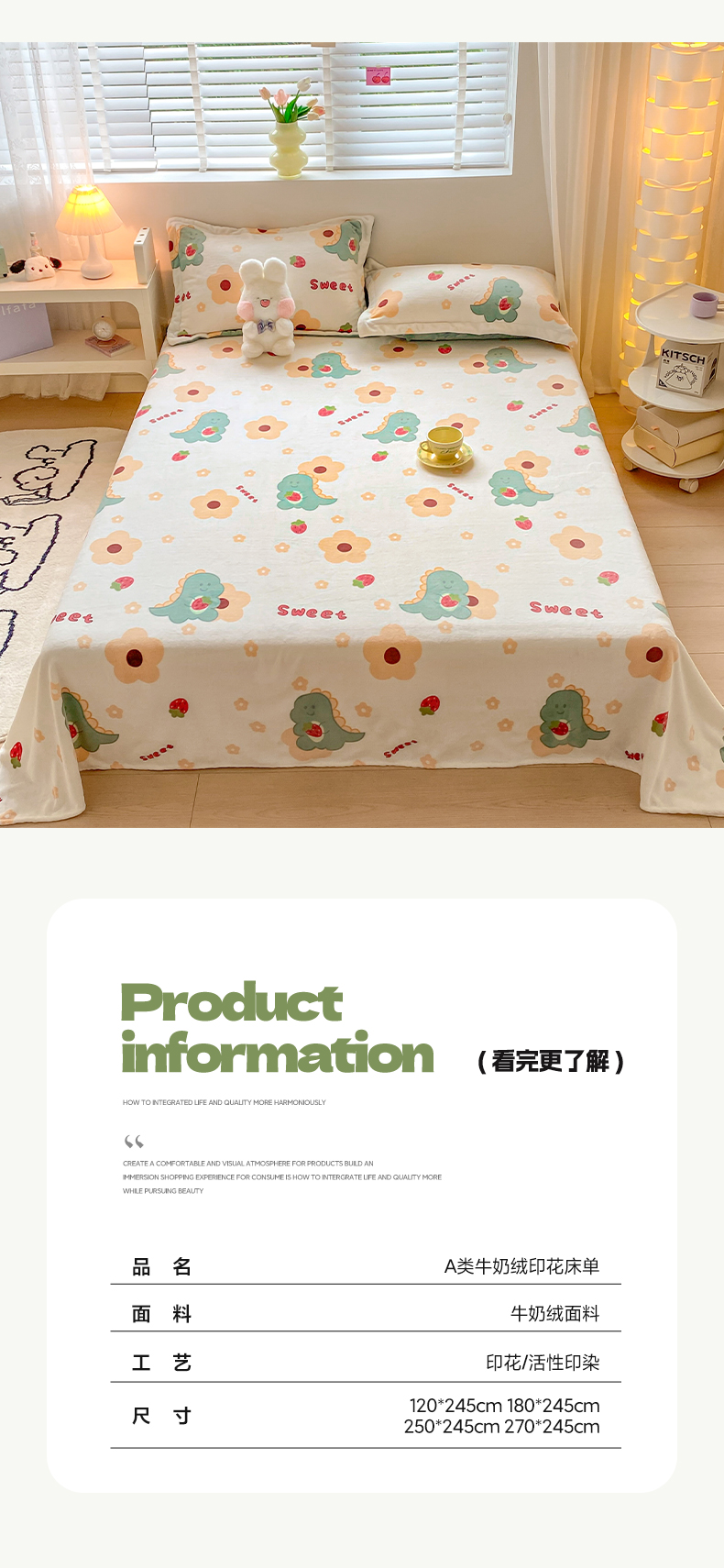 商品名称:金盛纺 2025新款高克重牛奶绒印花系列单床单(可定制) 萌萌哒