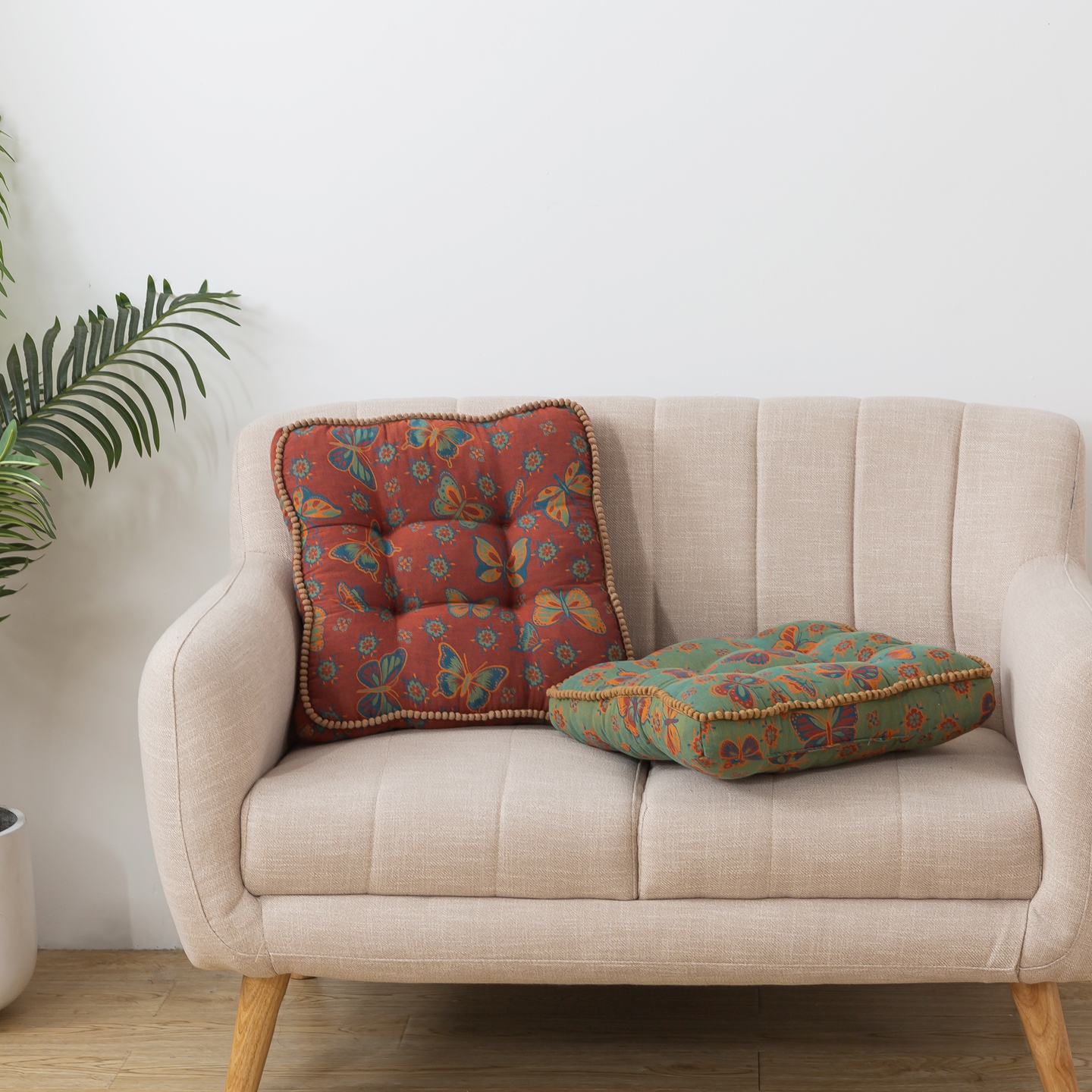 小欢喜 2025新款全棉双层纱坐垫 方垫-蝶舞-红