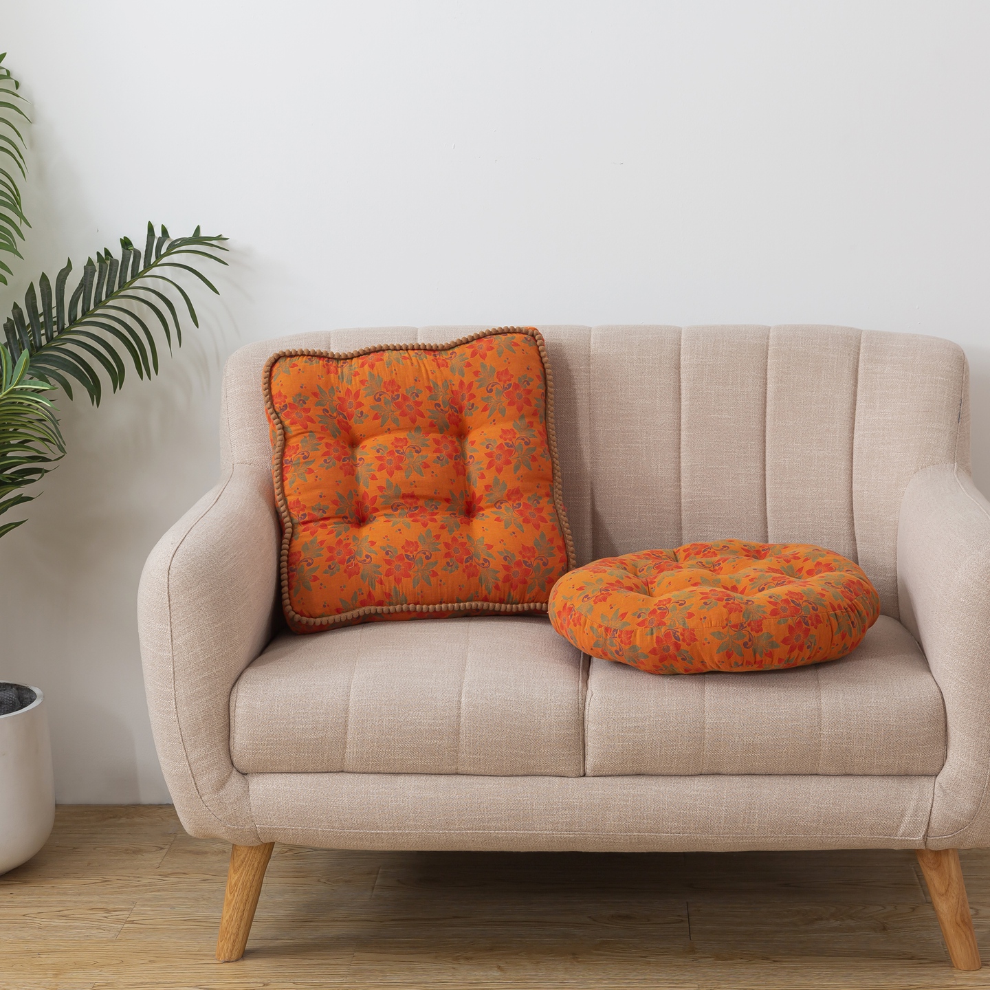(总)小欢喜 2025新款全棉双层纱坐垫,方垫-蝶舞-绿,方垫-蝶舞-红,圆垫-夕颜-咖,方垫-花语-橙,方垫-夕颜-奶咖,圆垫-花语-橙