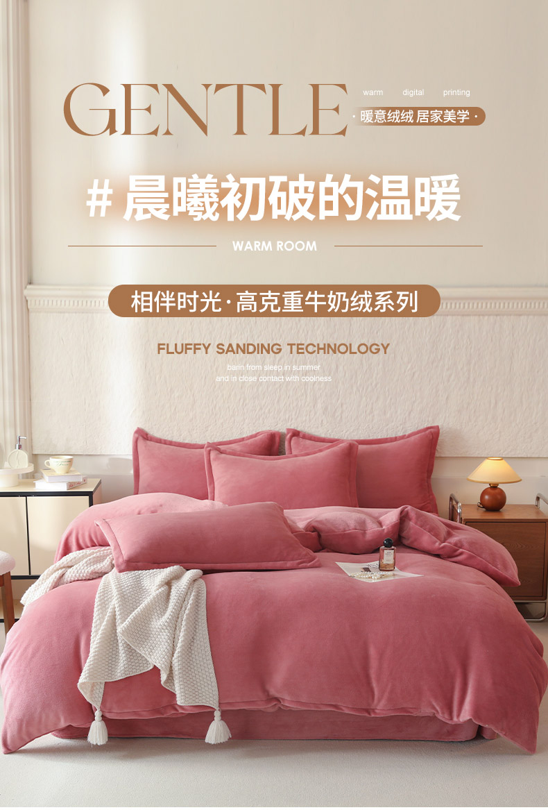 当前位置: 91家纺网 > 商品网购 > 床品套件 > 四件套 > 牛奶绒四件套 > 优家居 2025秋冬高克重牛奶绒四件套纯色简约日式风床单款被套 浅豆沙