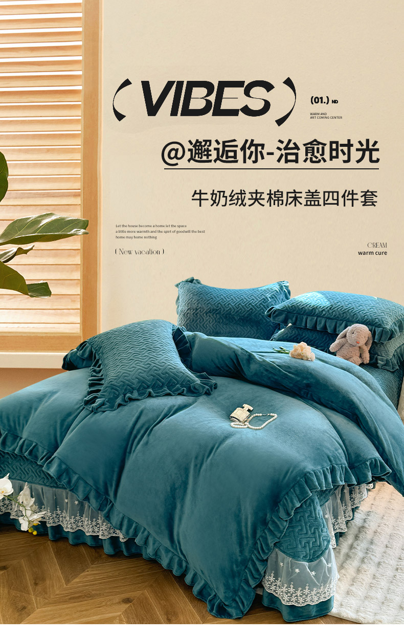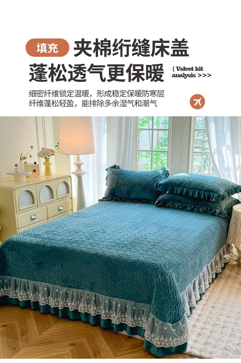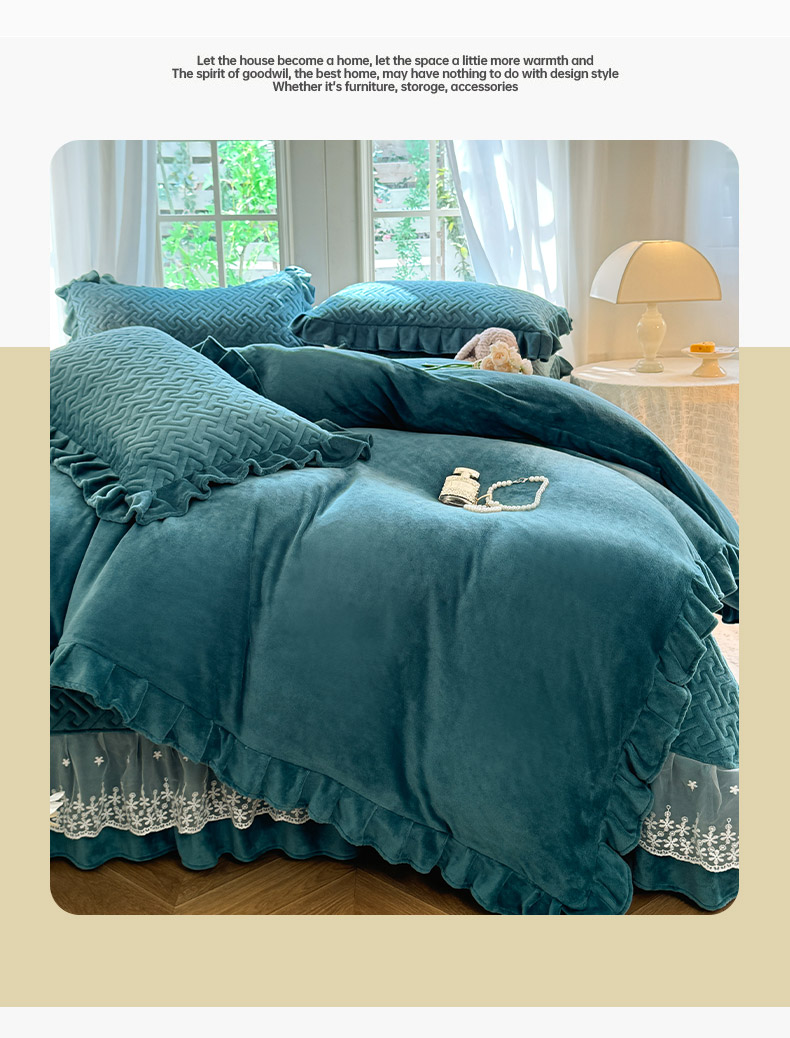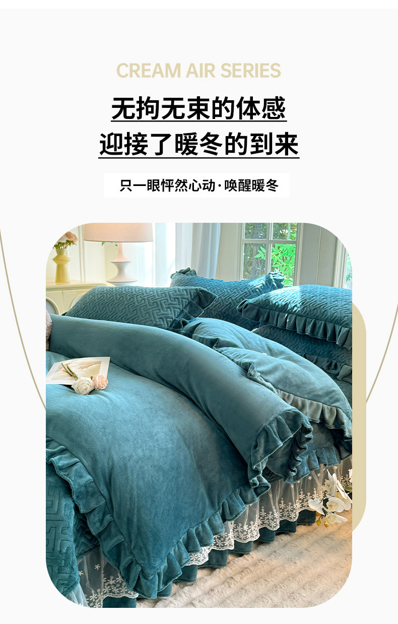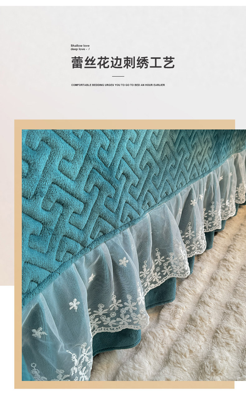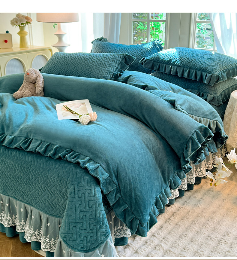 当前位置: 91家纺网 > 商品网购 > 床品套件 > 四件套 > 牛奶绒四件套 > 优家居 2025秋冬高克重牛奶绒夹棉床盖四件套纯色蕾丝边花边刺绣法式公主风床裙款被套床罩夹棉床裙 灰湖绿
