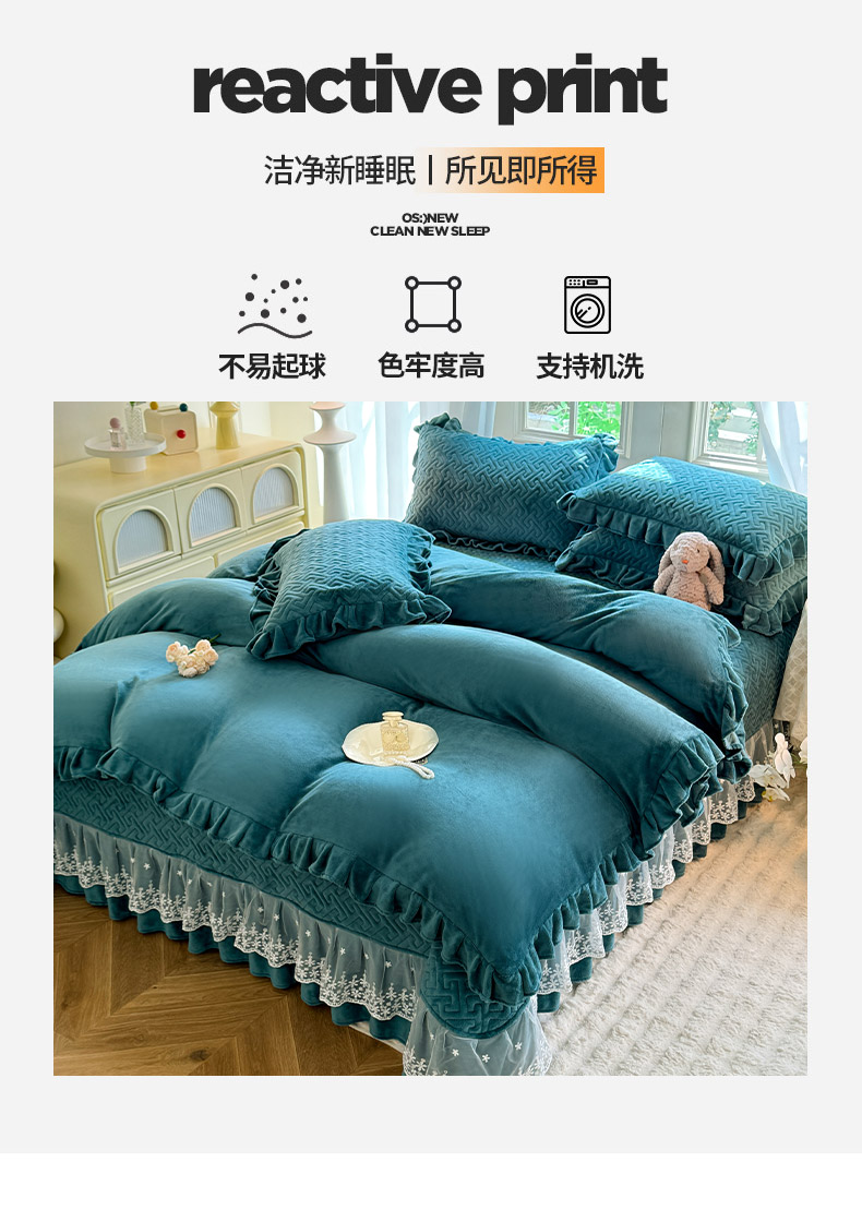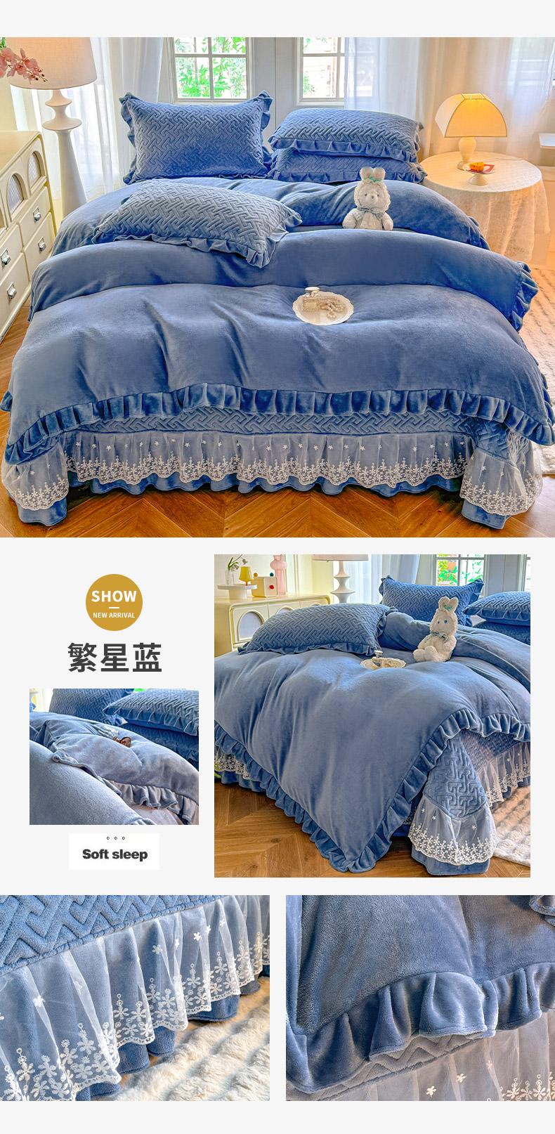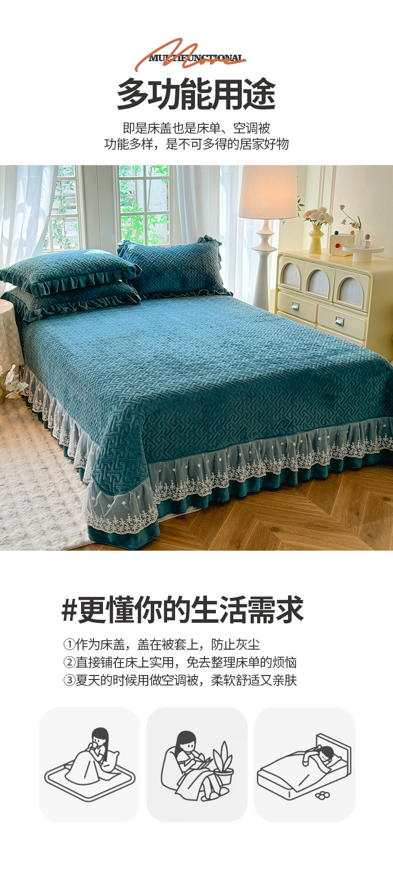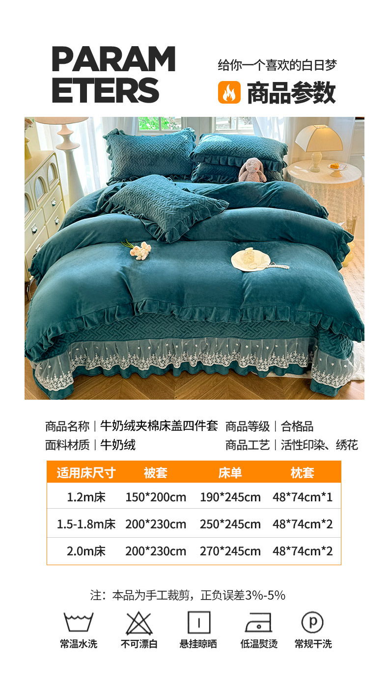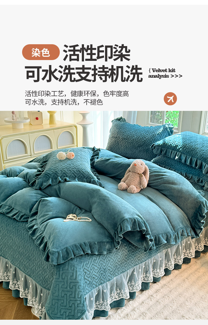 当前位置: 91家纺网 > 商品网购 > 床品套件 > 四件套 > 牛奶绒四件套 > 优家居 2025秋冬高克重牛奶绒夹棉床盖四件套纯色蕾丝边花边刺绣法式公主风床裙款被套床罩夹棉床裙 灰湖绿
