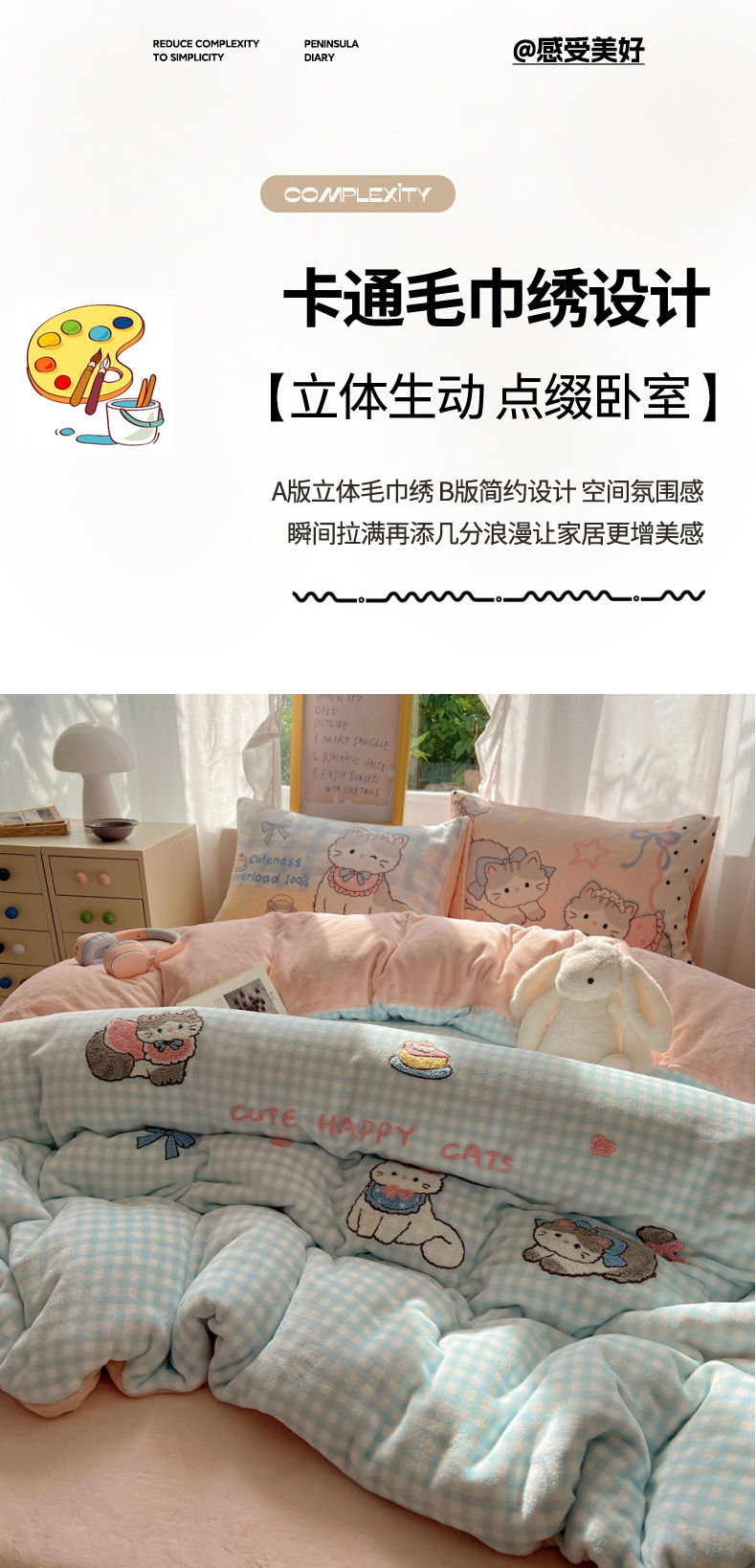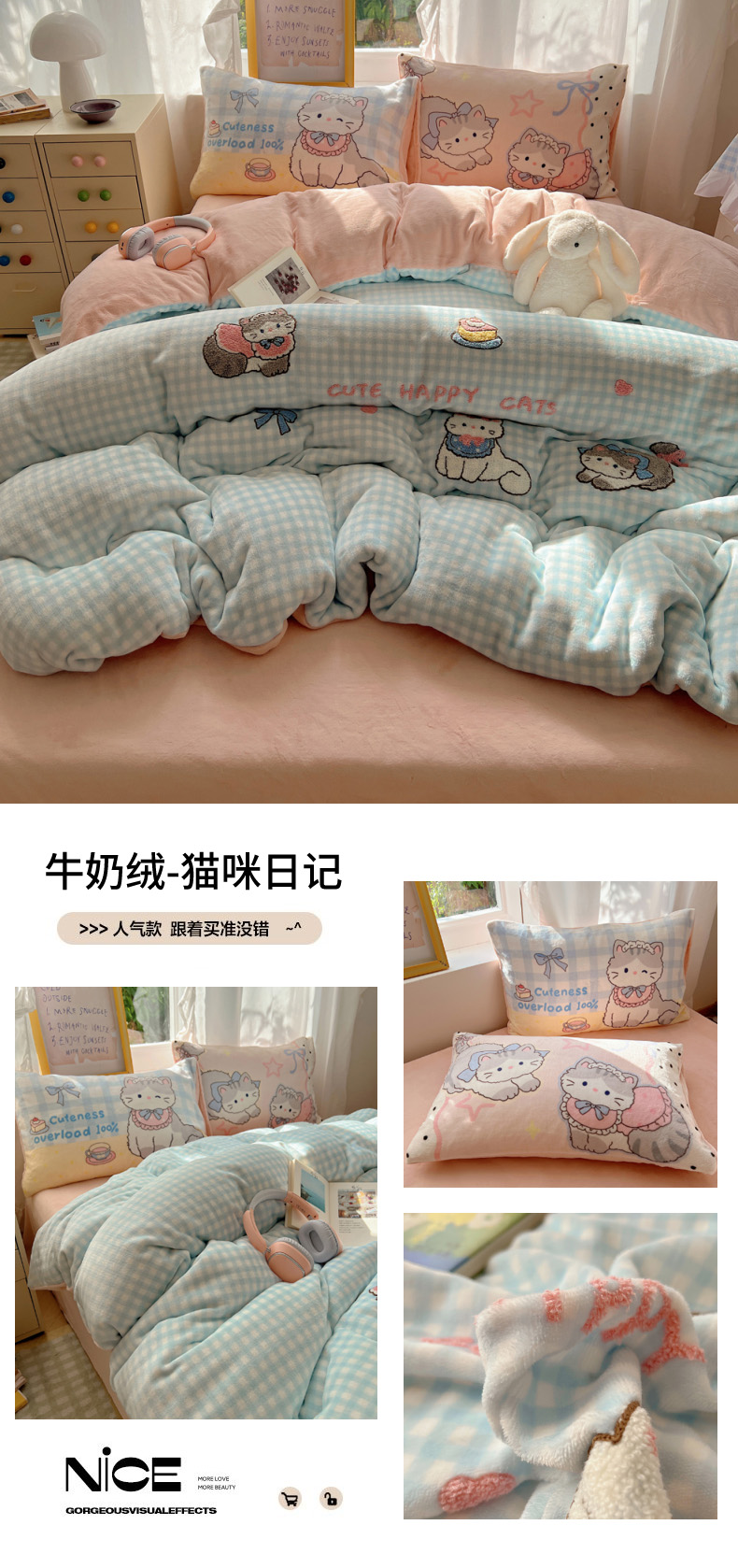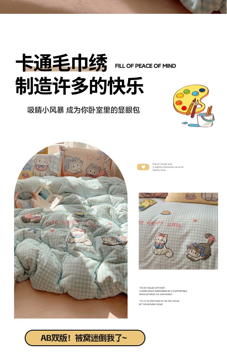 当前位置: 91家纺网 > 商品网购 > 床品套件 > 四件套 > 牛奶绒四件套 > 沐慕 2025新款牛奶绒加厚保暖毛巾绣四件套 牛奶绒-猫咪日记