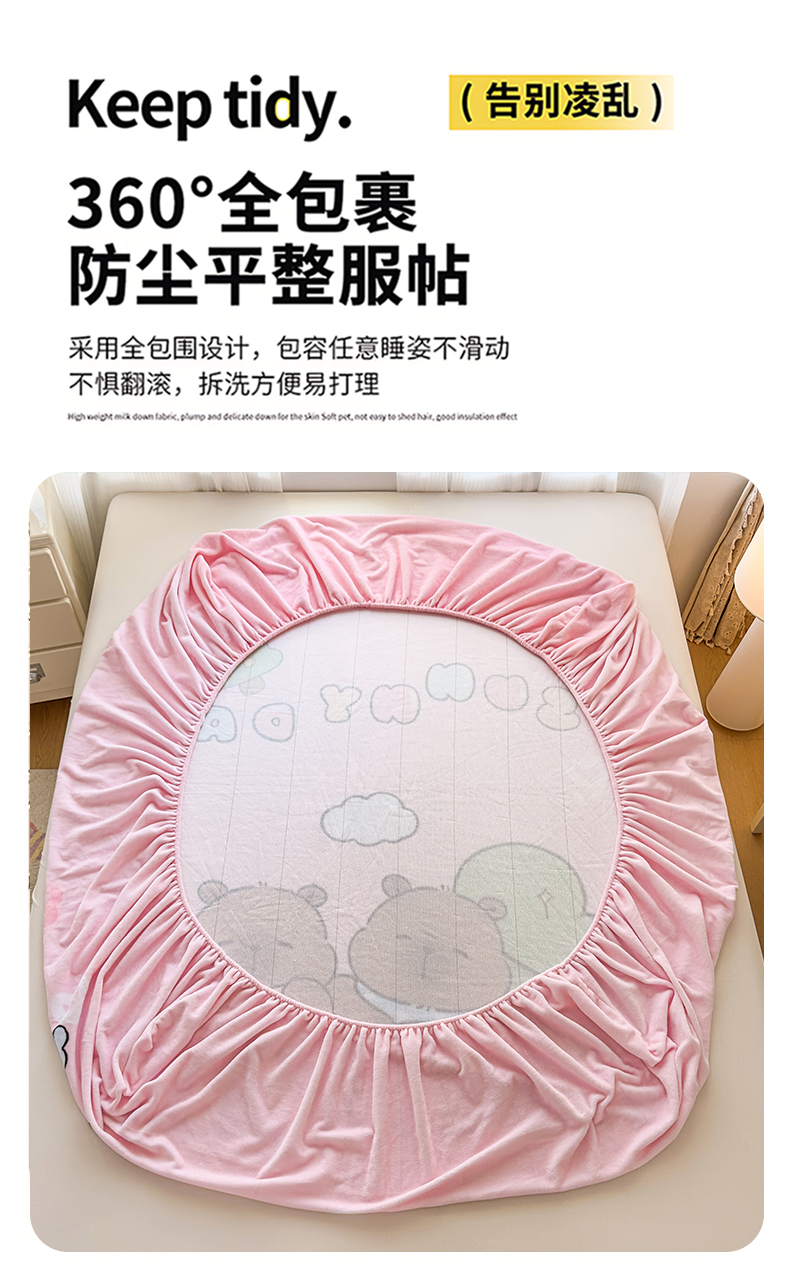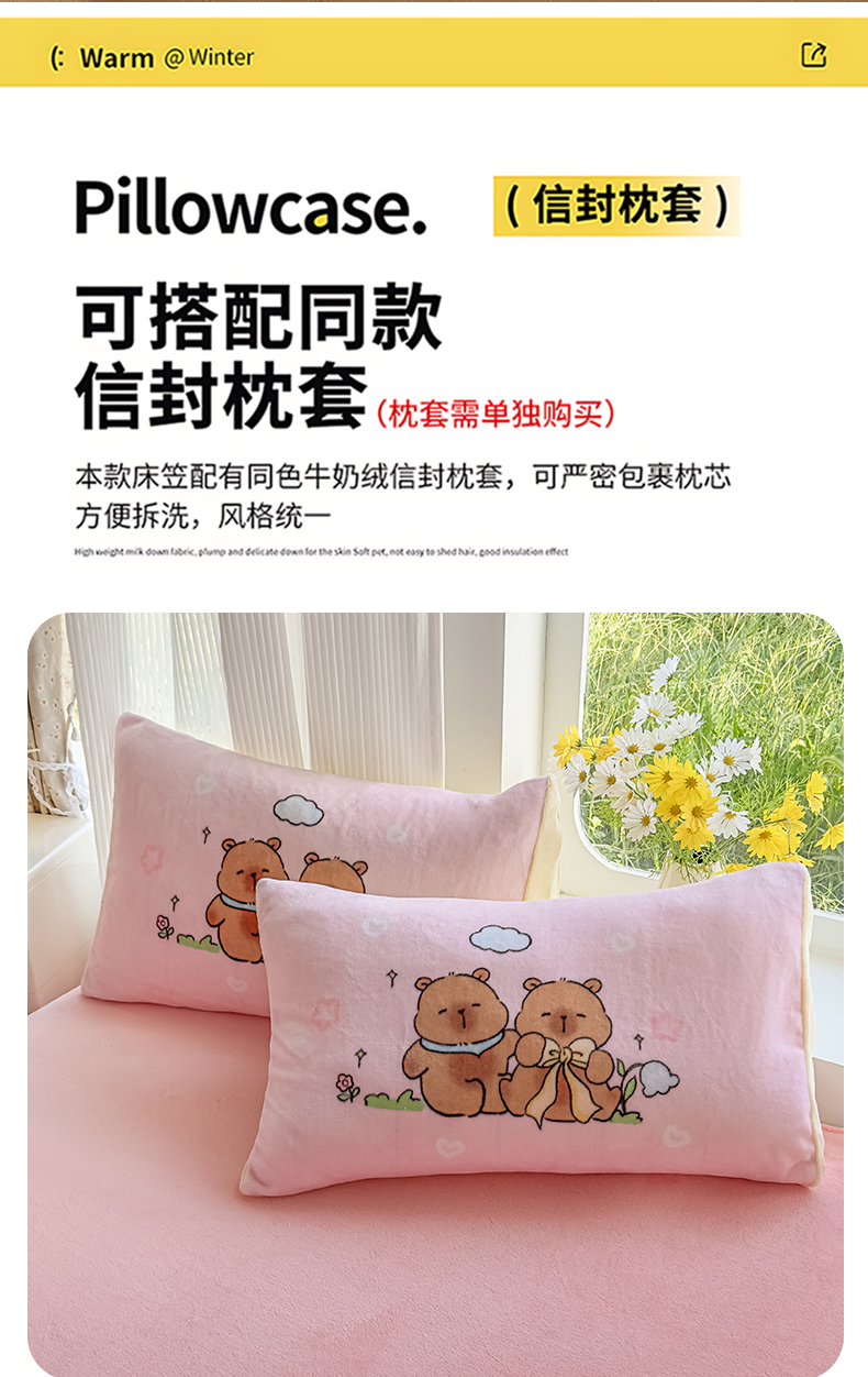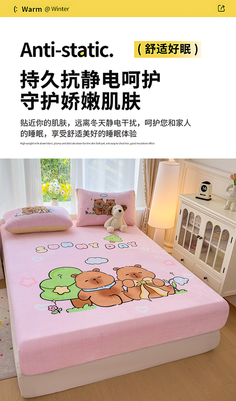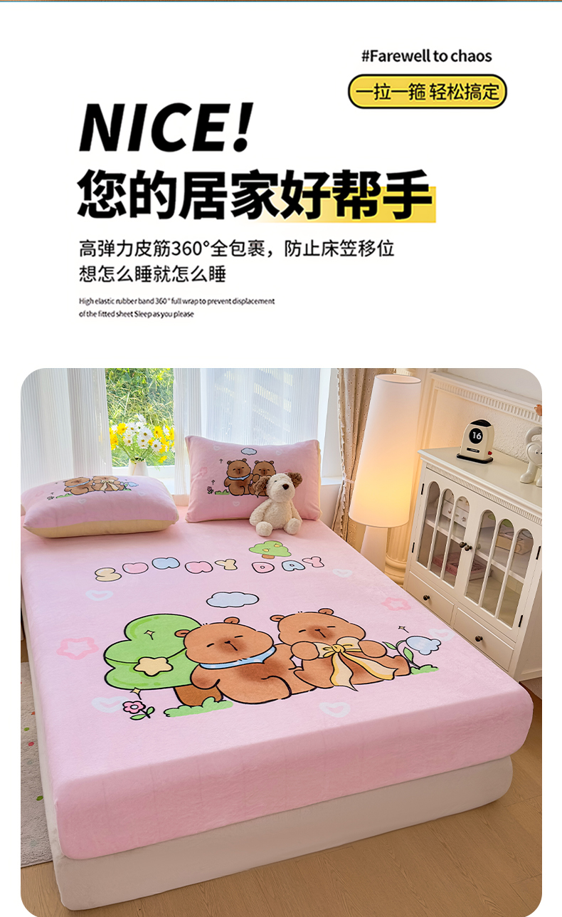 商品名称:浩诚 2025新款大版原创设计卡皮巴拉高克重牛奶绒单床笠 阳光巴拉
