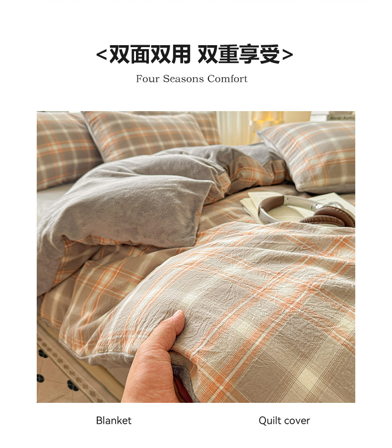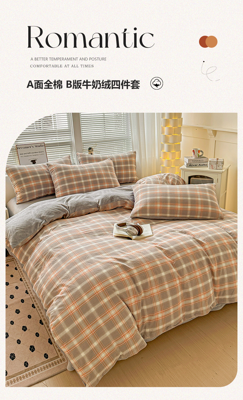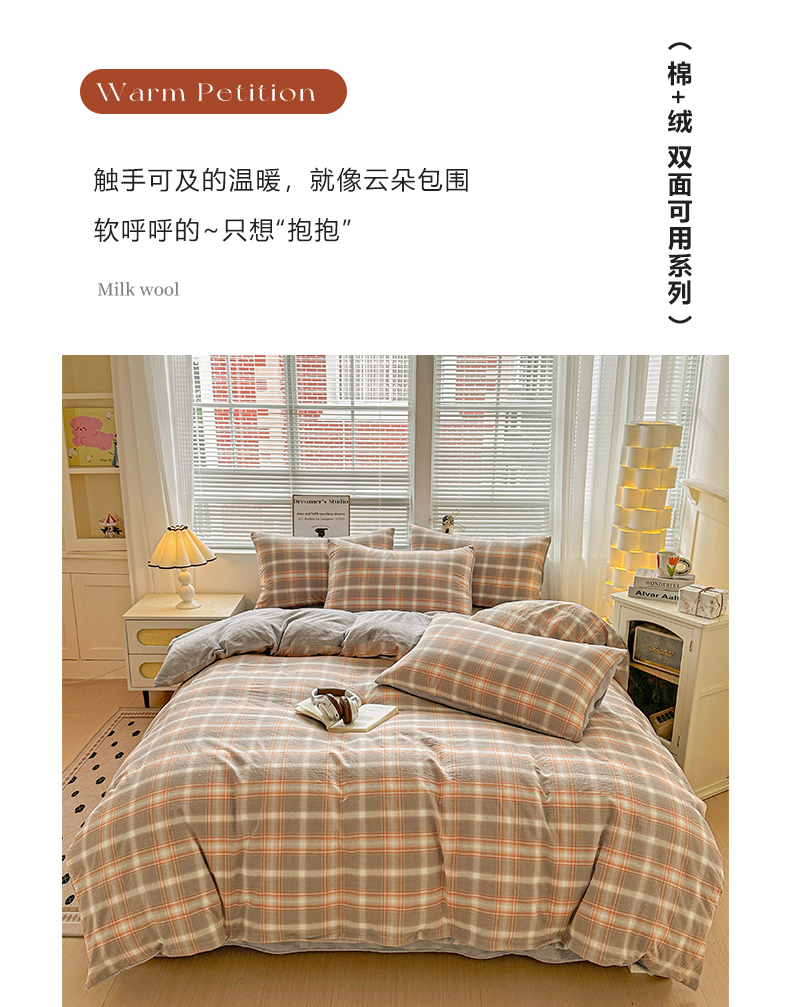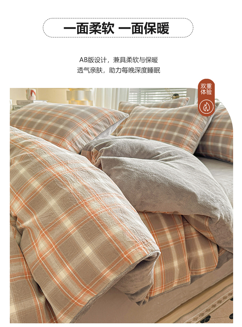 当前位置: 91家纺网 > 商品网购 > 床品套件 > 四件套 > 全棉普通四件套 > 柠萌家居 2025新款无印良品风双拼全棉色织水洗棉加牛奶绒四件套简约全棉拼牛奶绒四件套 提供买家秀 棉+绒诺卡灰
