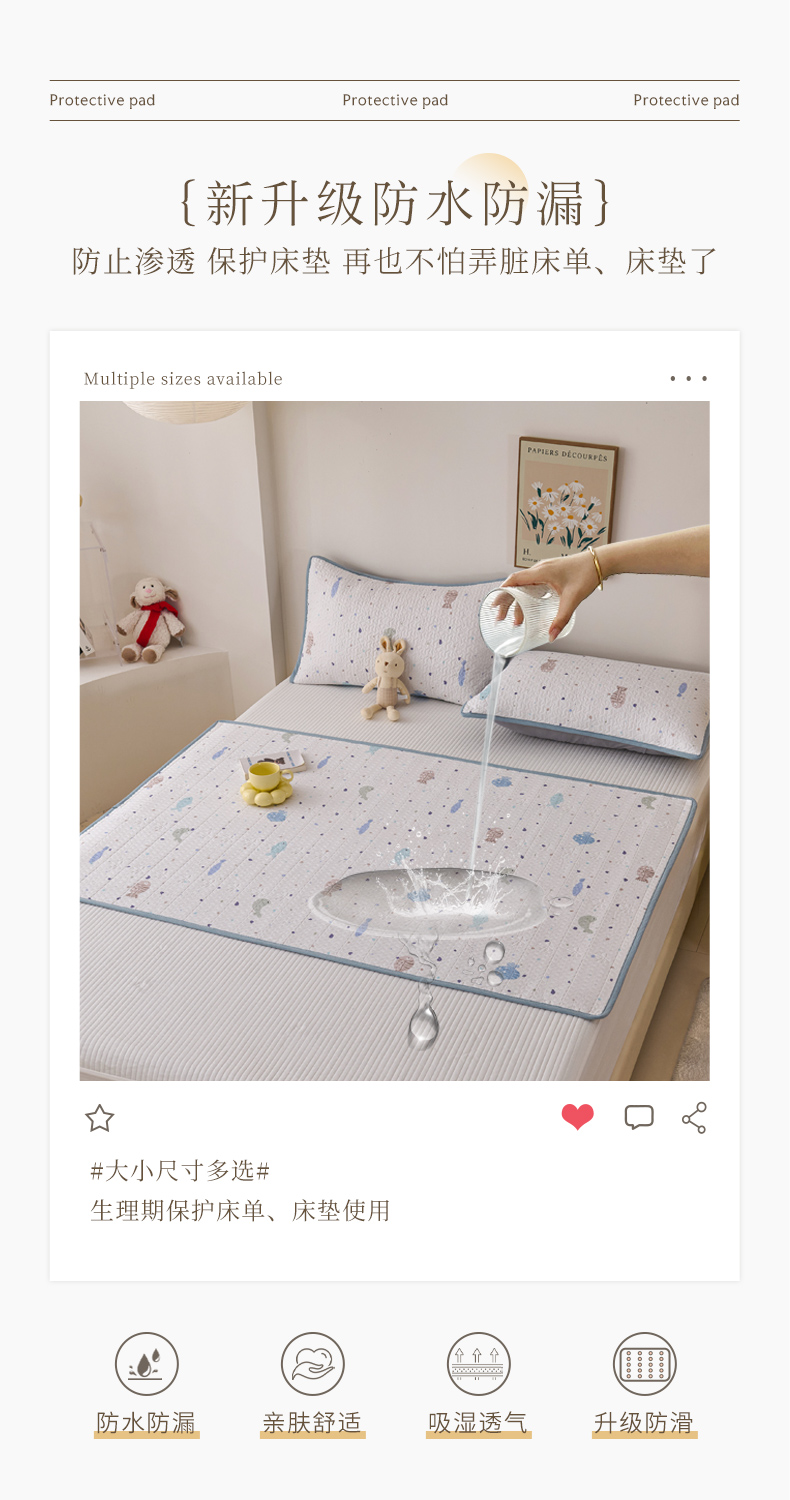 当前位置: 91家纺网 > 商品网购 > 床垫/床褥 > 普通床垫 > 拾小柒 2025年新款全棉双层纱隔脏姨妈垫护理垫床护垫 鲤安-防水款