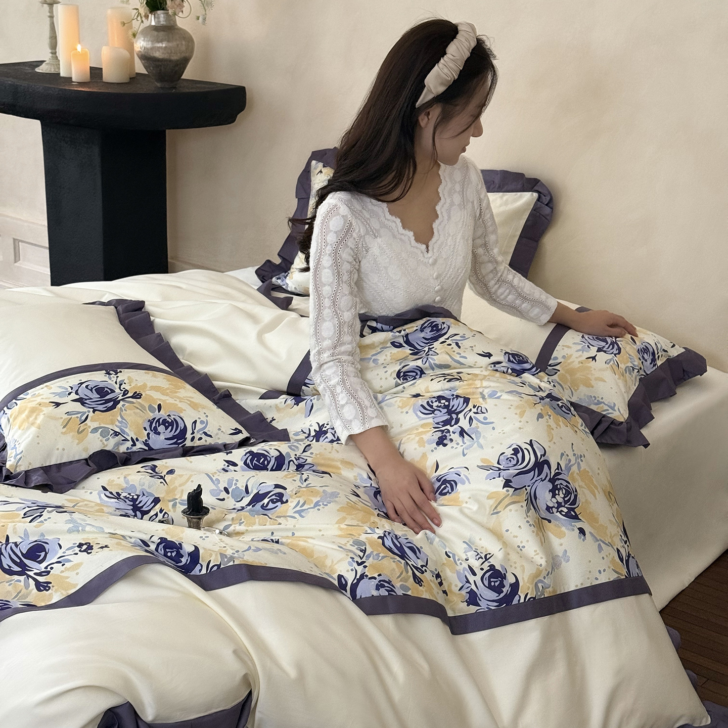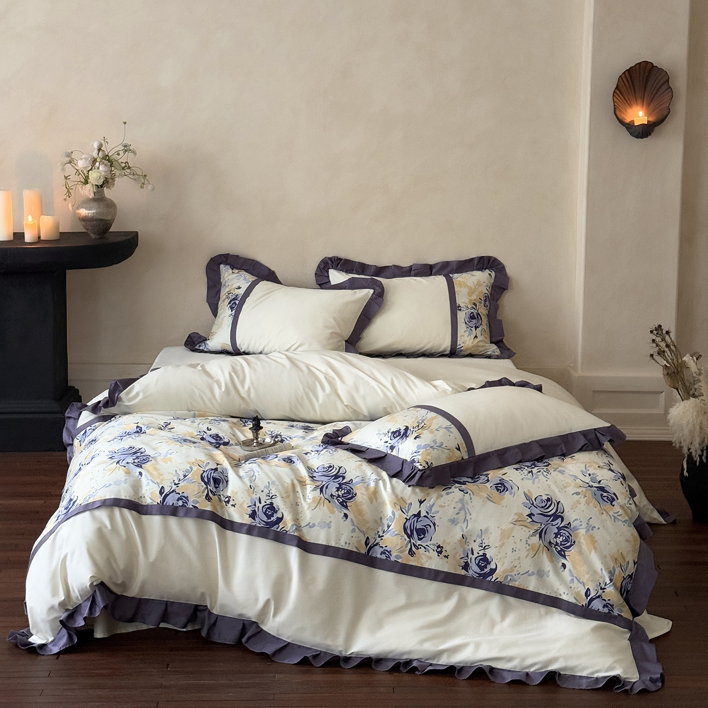 当前位置: 91家纺网 > 商品网购 > 床品套件 > 四件套 > 长绒棉四件套 > 多乐娜 2025新款法式100支全棉贡缎数码印花四件套长绒棉工艺款轻奢花边款(会员-20)控价378/398起(券后!!)务必控价谢谢配合 长绒棉贡缎-暮光紫汀