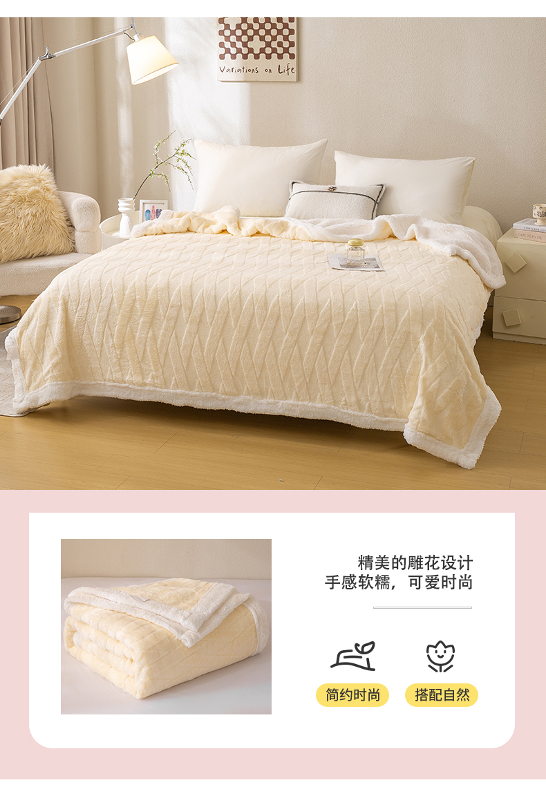 当前位置: 91家纺网 > 商品网购 > 毛毯休闲毯绒毯 > 毛毯 > 佳居缘 【双面绒-交叉纹】 2025加厚保暖羊羔绒毛毯双层塔芙绒毯子跨境专供外贸出口定制 交叉纹-米白