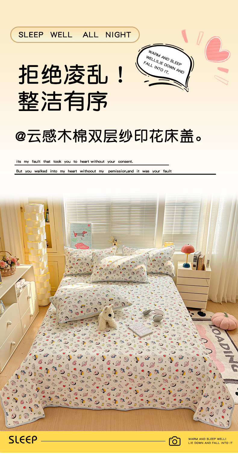 当前位置: 91家纺网 > 商品网购 > 床品套件 > 三件套 > 暖芯优选 2025新款木棉印花床盖三件套 快乐小新