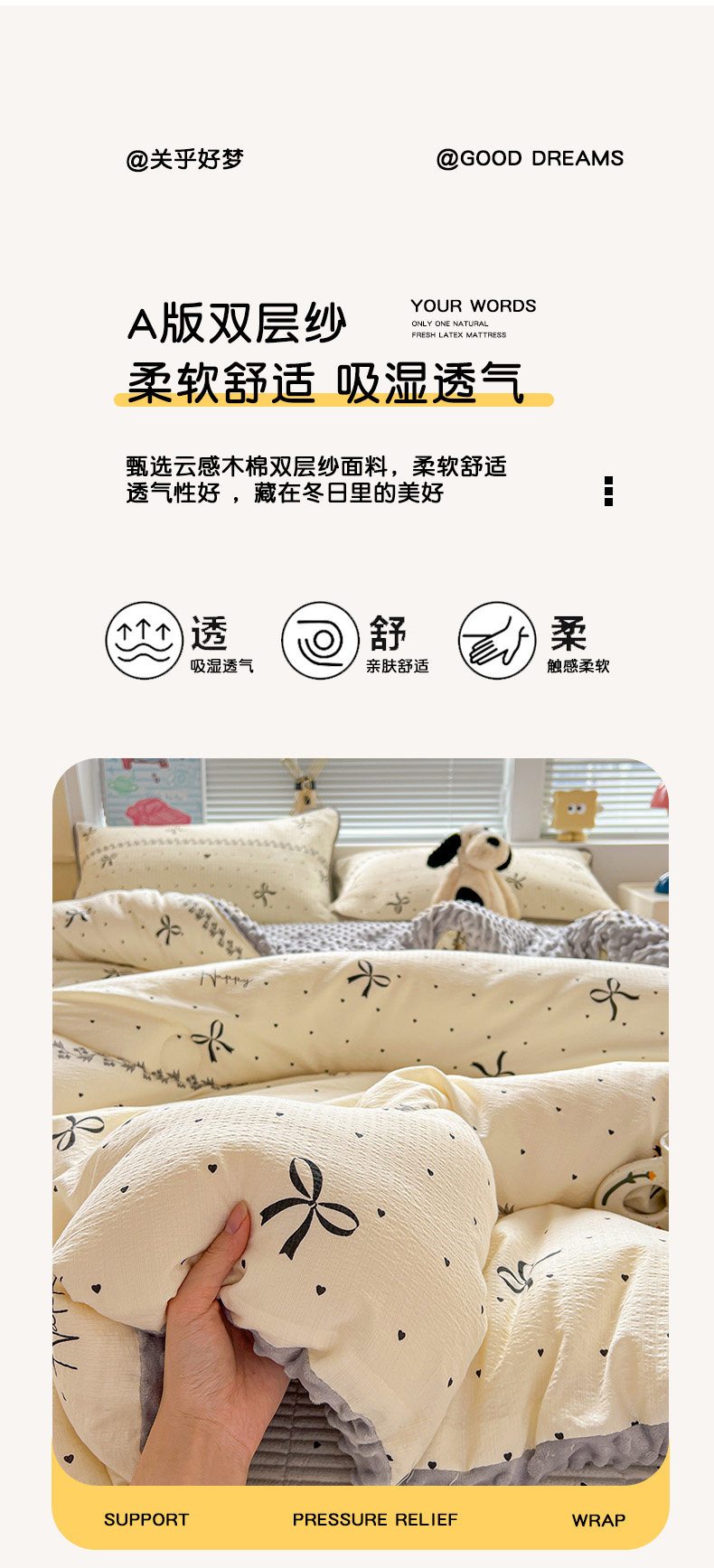 当前位置: 91家纺网 > 商品网购 > 床品套件 > 四件套 > 其它四件套 > 暖芯优选 2025新款木棉双层纱ins少女心可爱系加厚豆豆冬被四件套床盖三件套暖梦系列(小红书推荐) 点点爱心