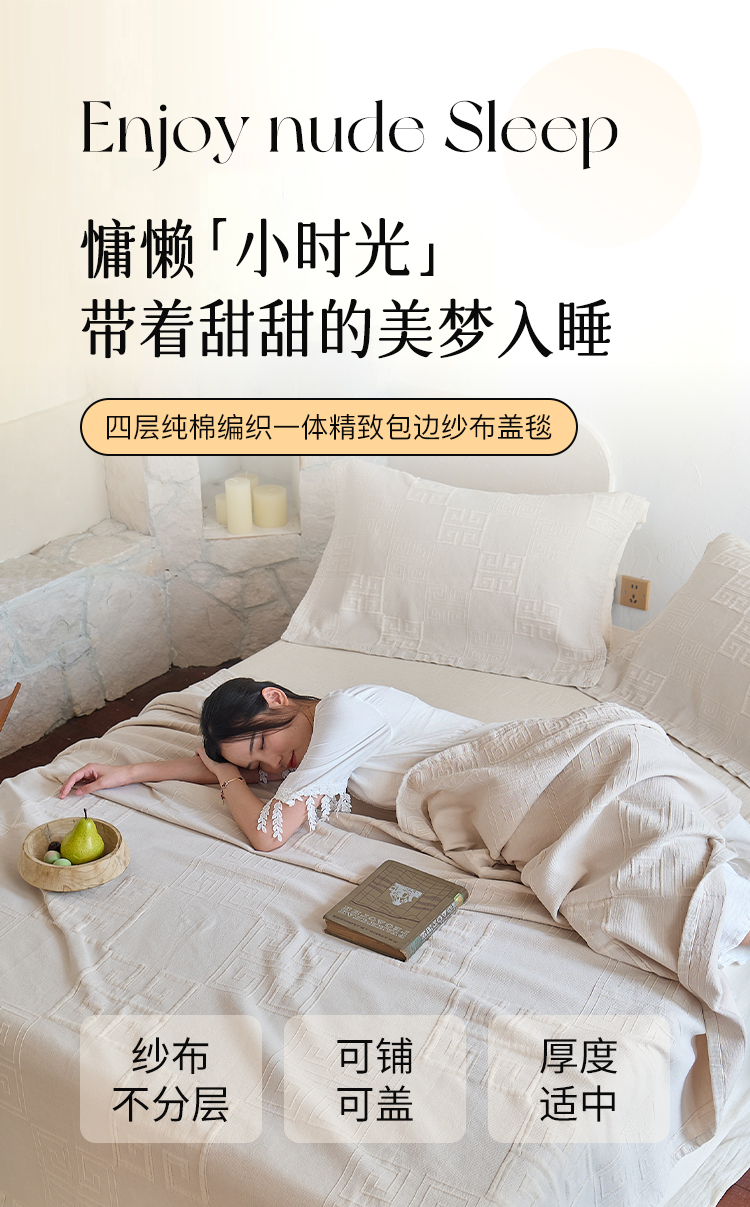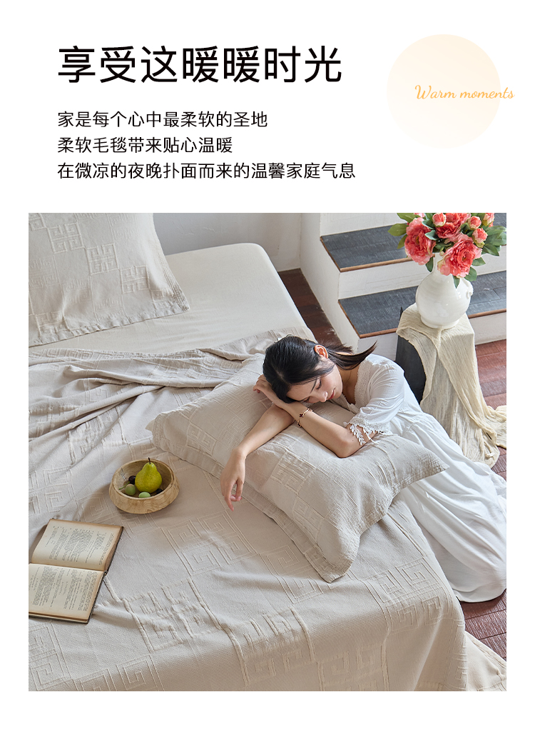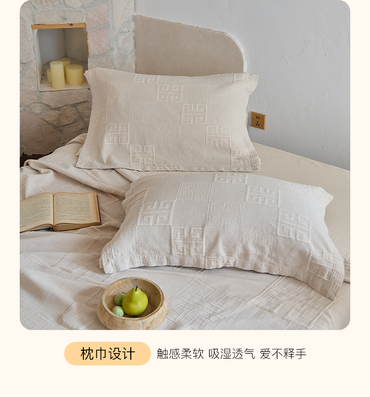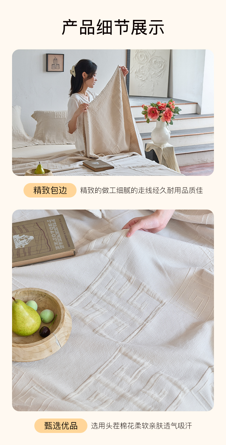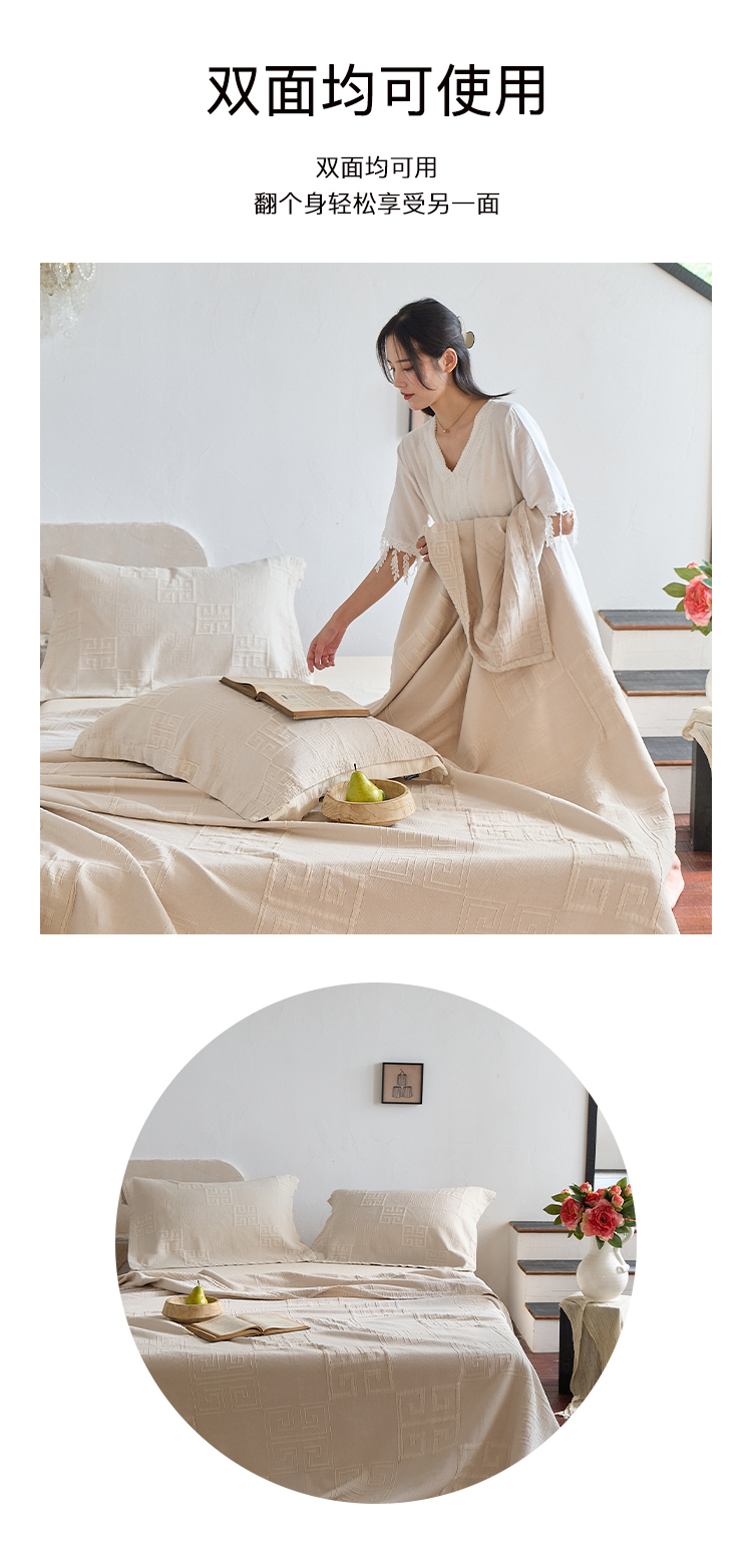 (总)沐瑟家纺 2025新款简约风多功能纱布盖毯纱布毯子毛巾被床盖沙发巾单毯枕巾枕套三件套,H本色,H橙色,H咖色,大马士革本色