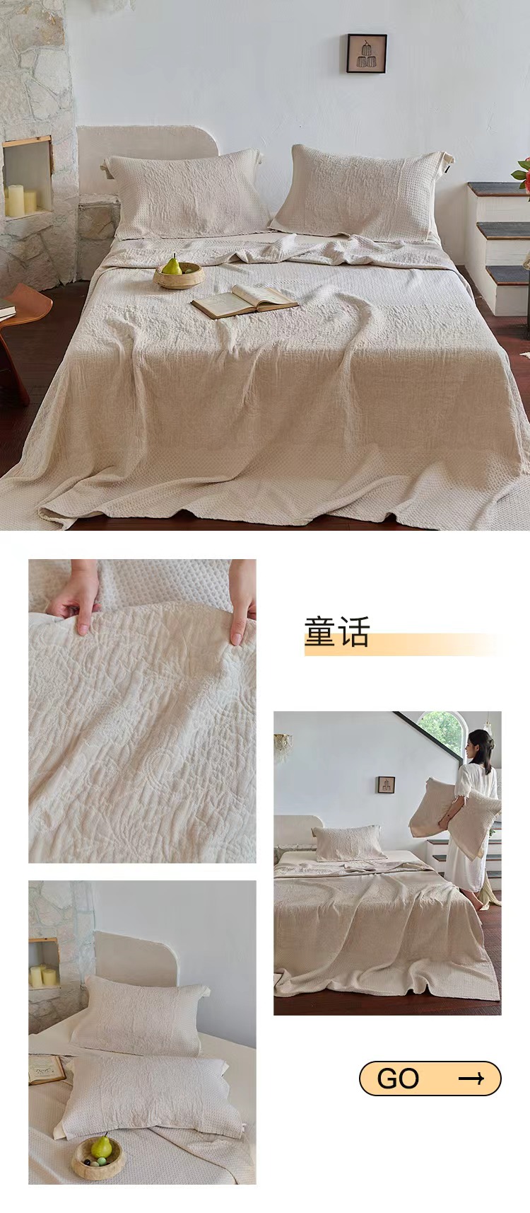 商品名称:(总)沐瑟家纺 2025新款全棉纱布双层纱床盖三件套床盖