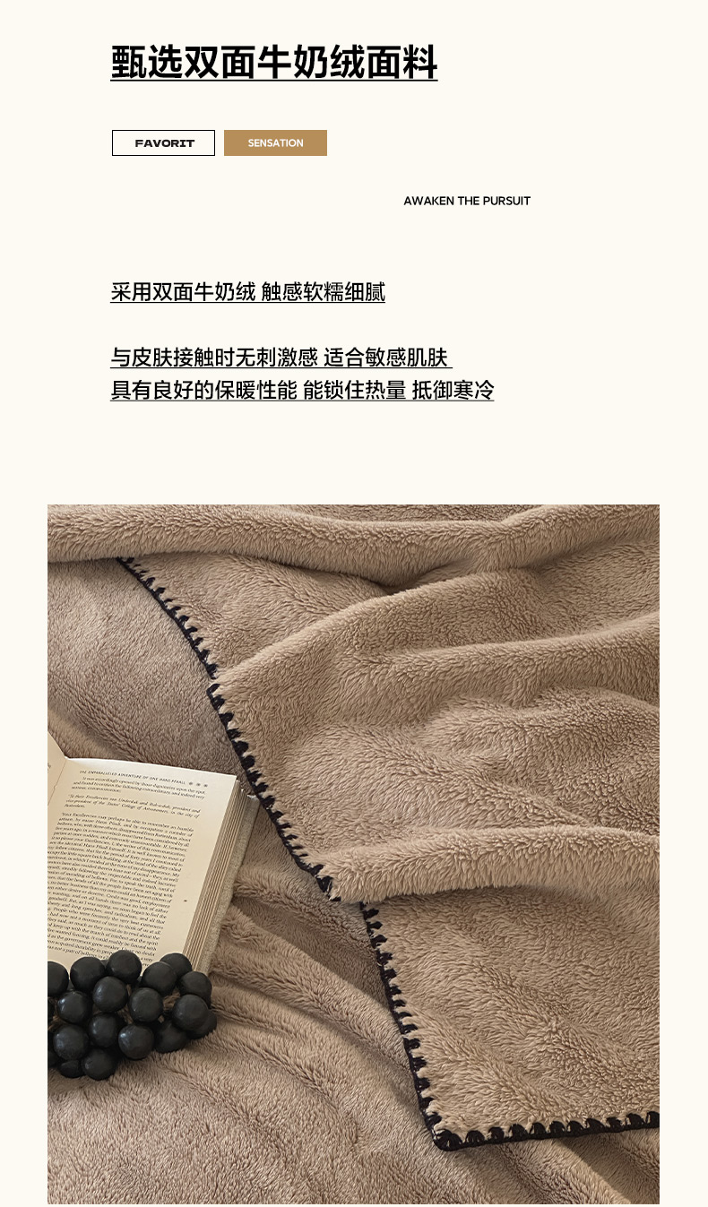 商品名称:三味舒屋 2025新款多用纯色双面牛奶绒毛毯 米咖