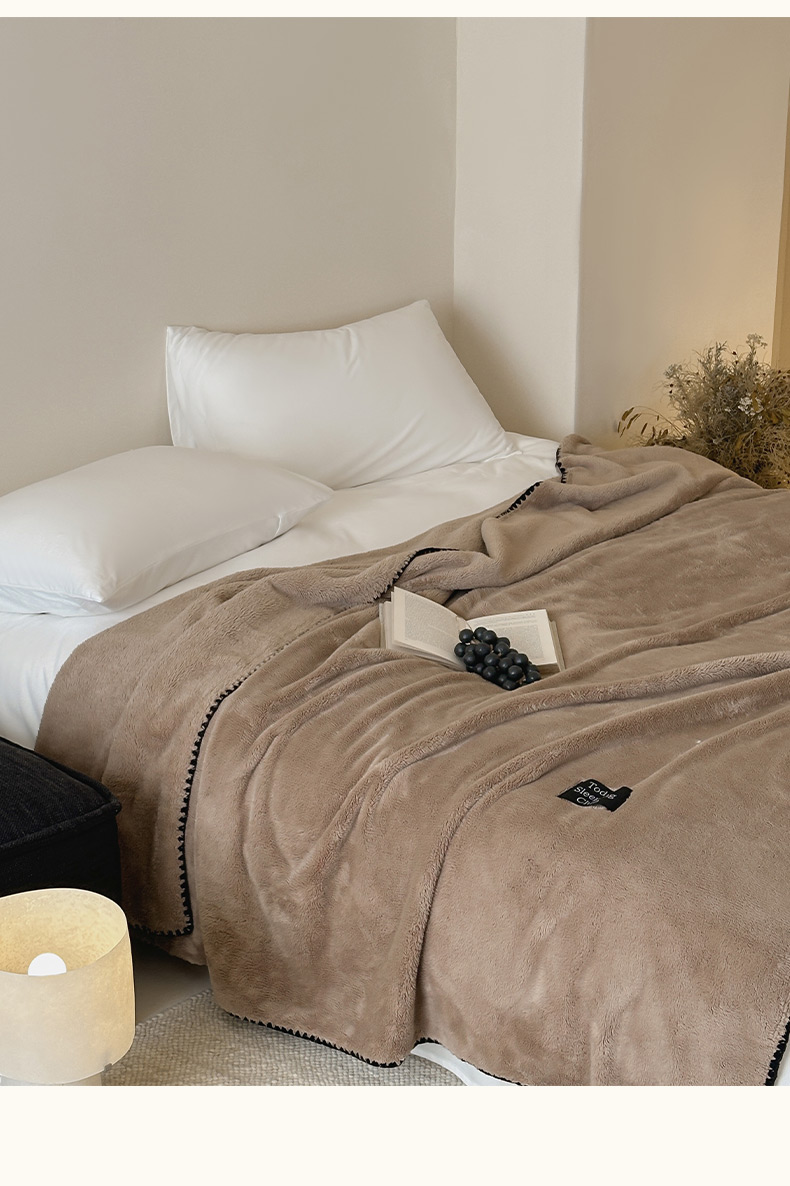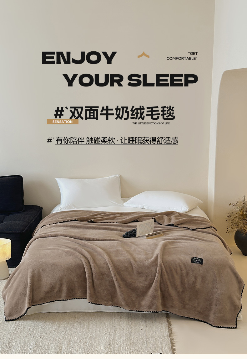 三味舒屋 2025新款多用纯色双面牛奶绒毛毯 米咖