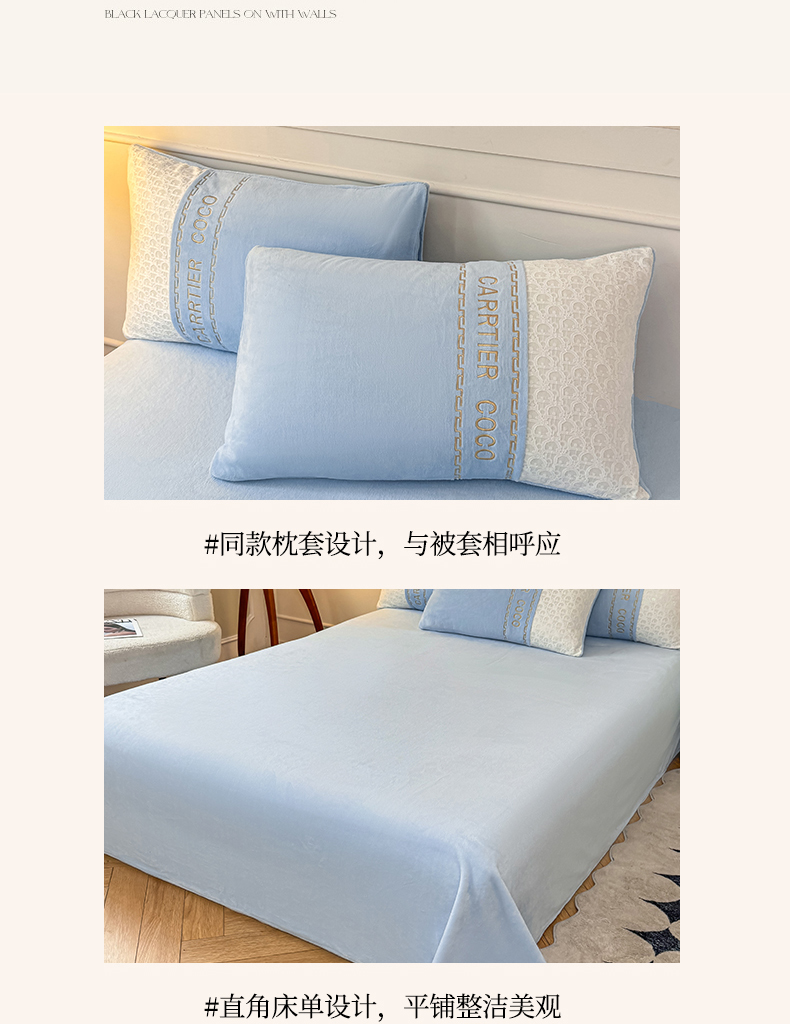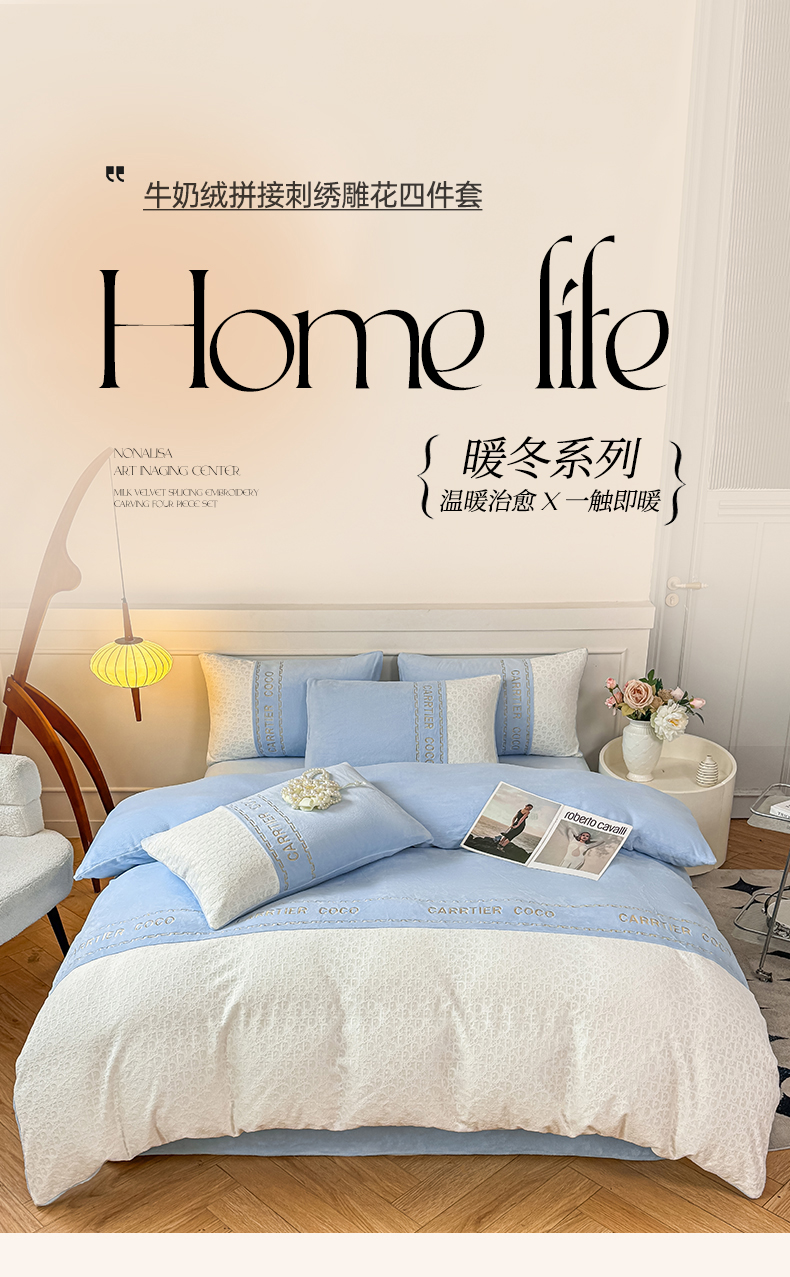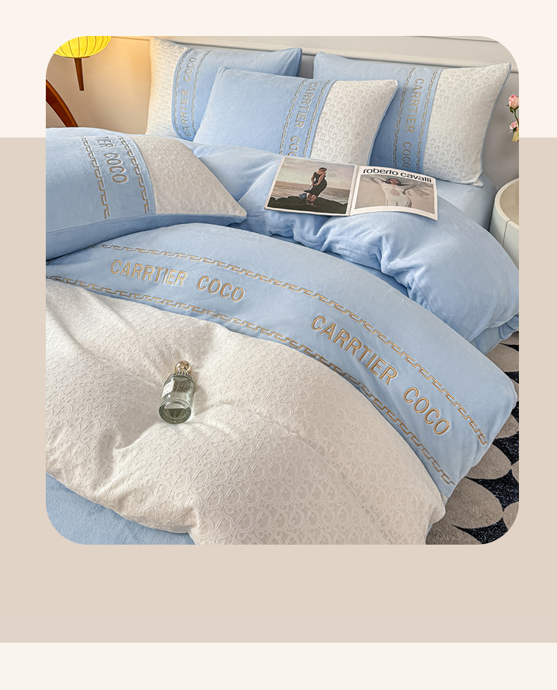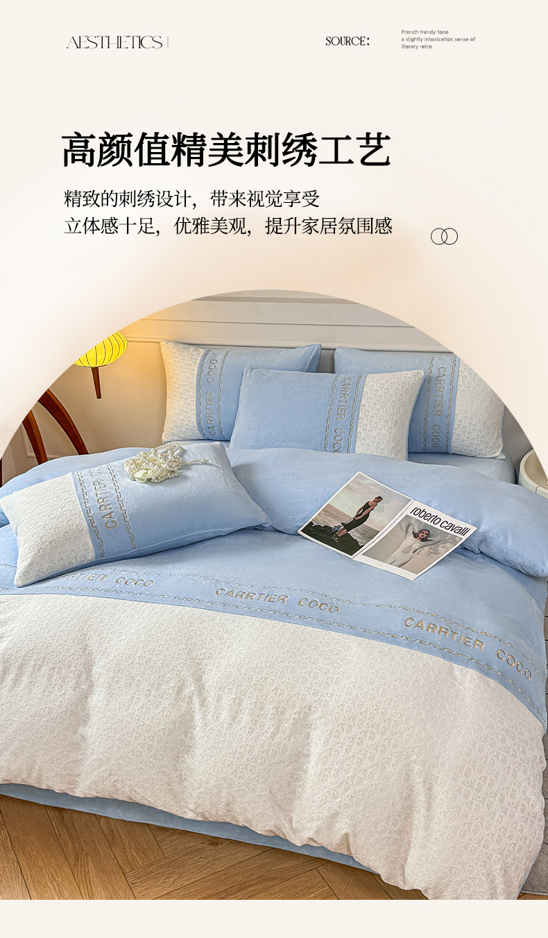 当前位置: 91家纺网 > 商品网购 > 床品套件 > 四件套 > 牛奶绒四件套 > 灰鲸 2025新款牛奶绒拼接刺绣雕花套件-露娜 露娜-繁星蓝
